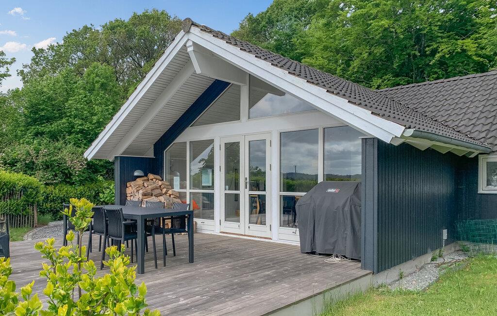 Ontspan in dit lichte, moderne vakantiehuis met groot terras en prachtig uitzicht in het groene Evetofte.
