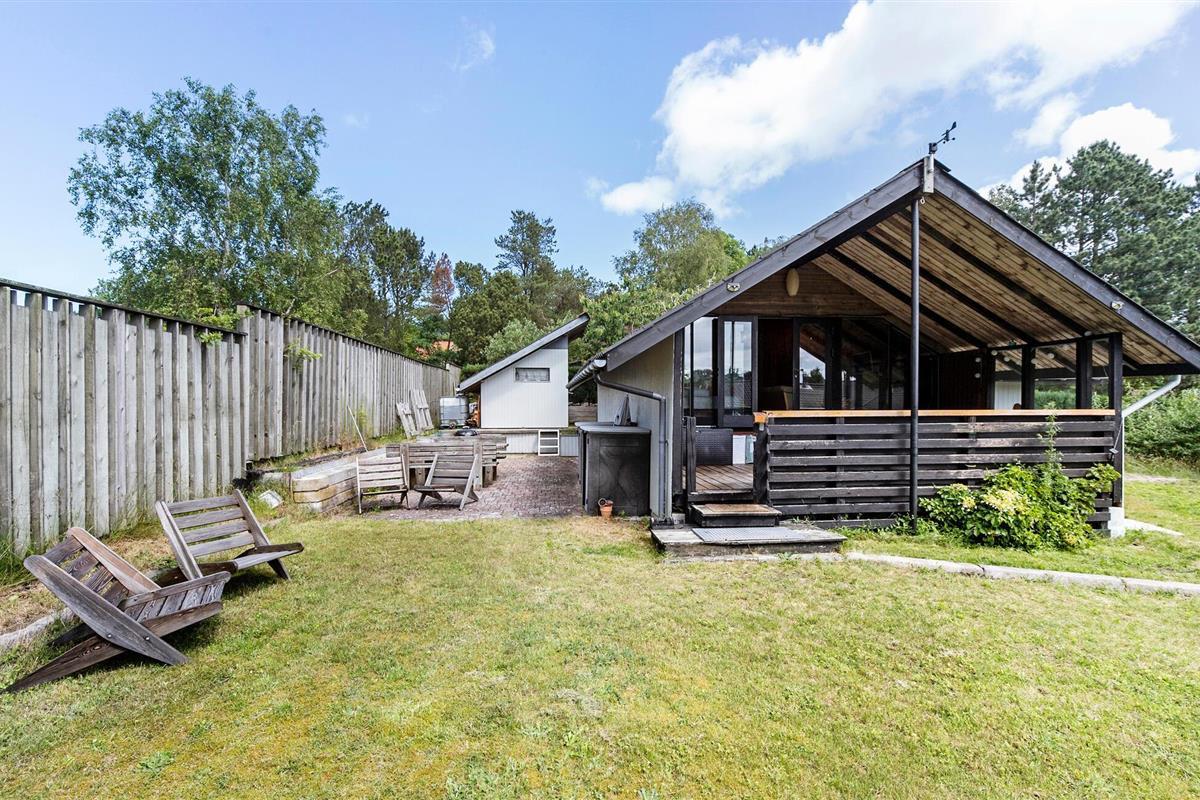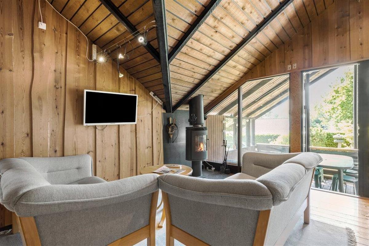 Ontdek dit charmante houten vakantiehuis nabij Liseleje Strand, perfect voor ontspanning en activiteiten in een ruime tuin.