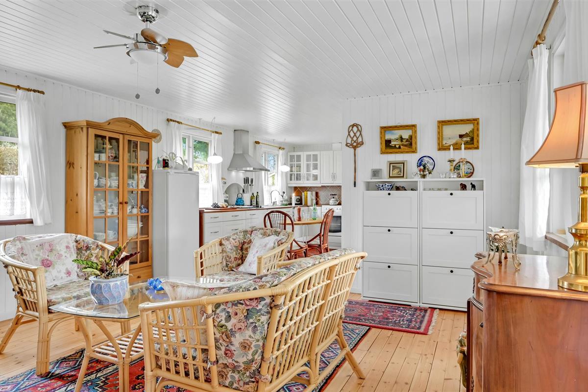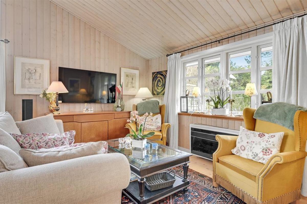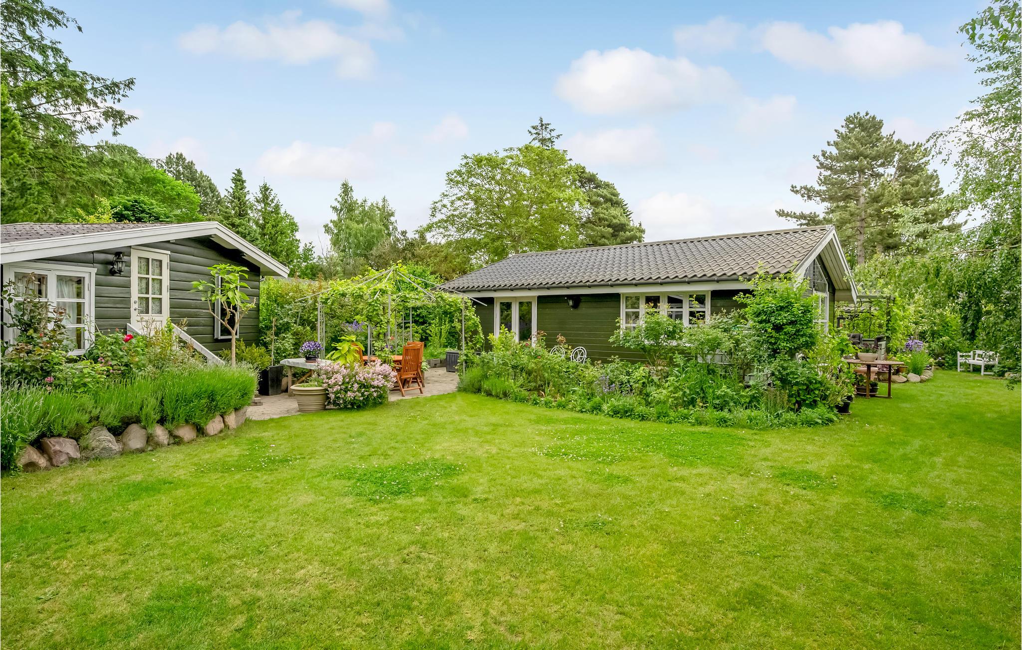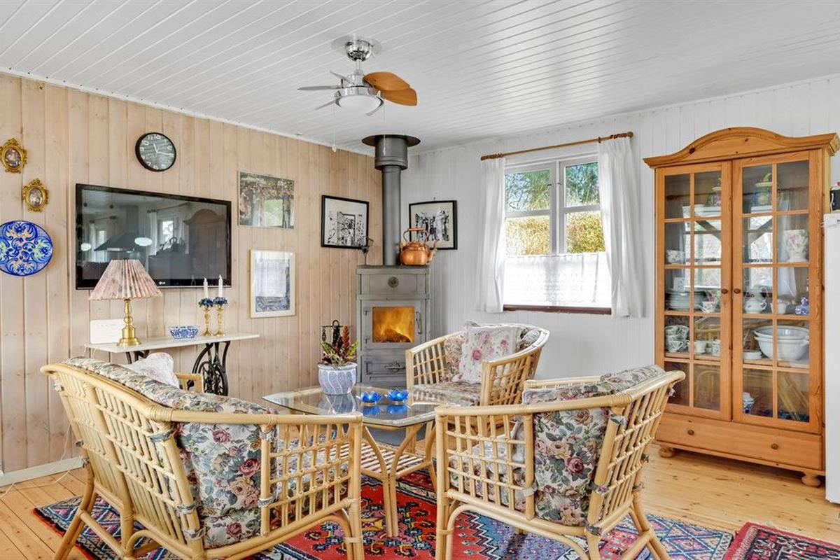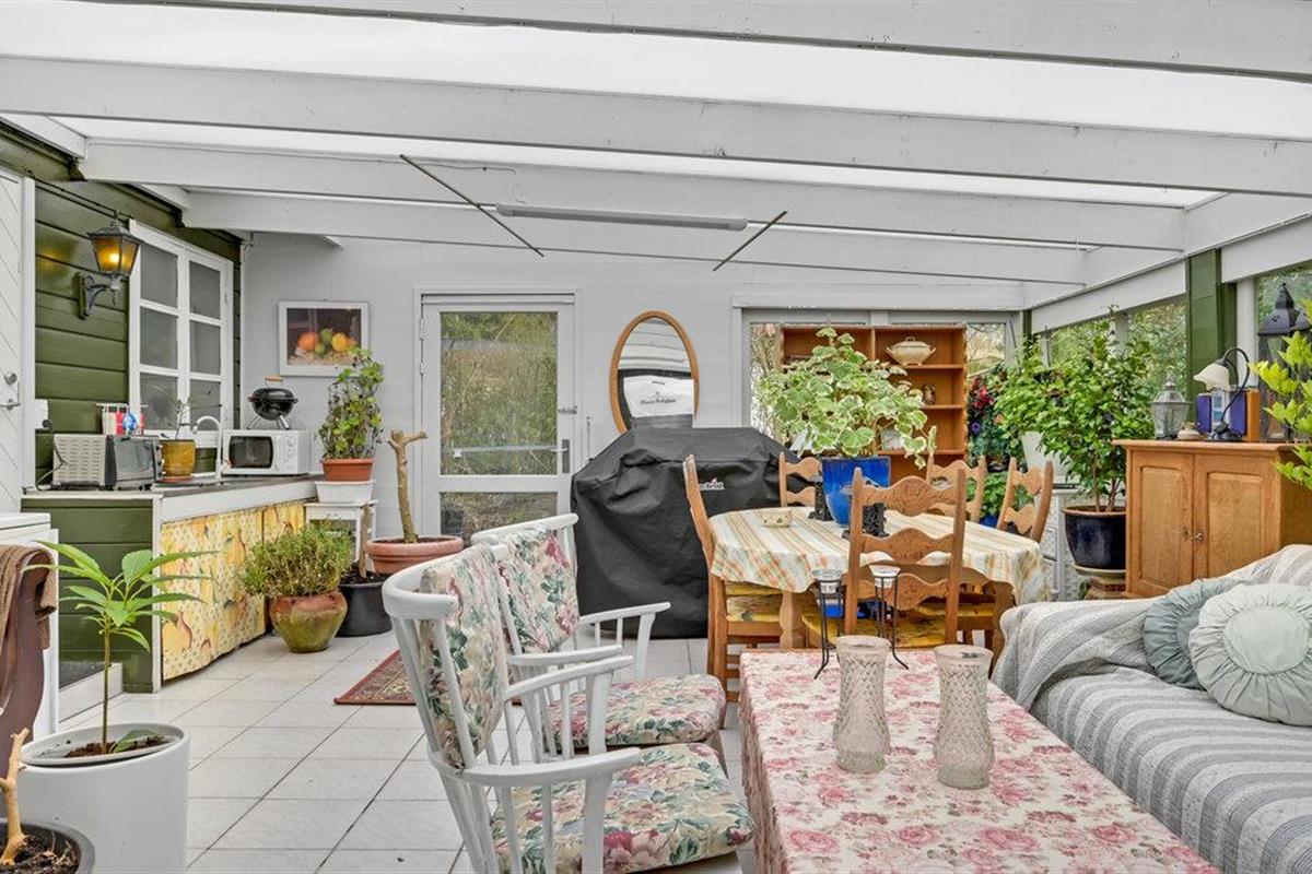 Romantisch vakantiehuis op Liseleje Strand met serre, tuin en moderne voorzieningen voor een ontspannen verblijf.