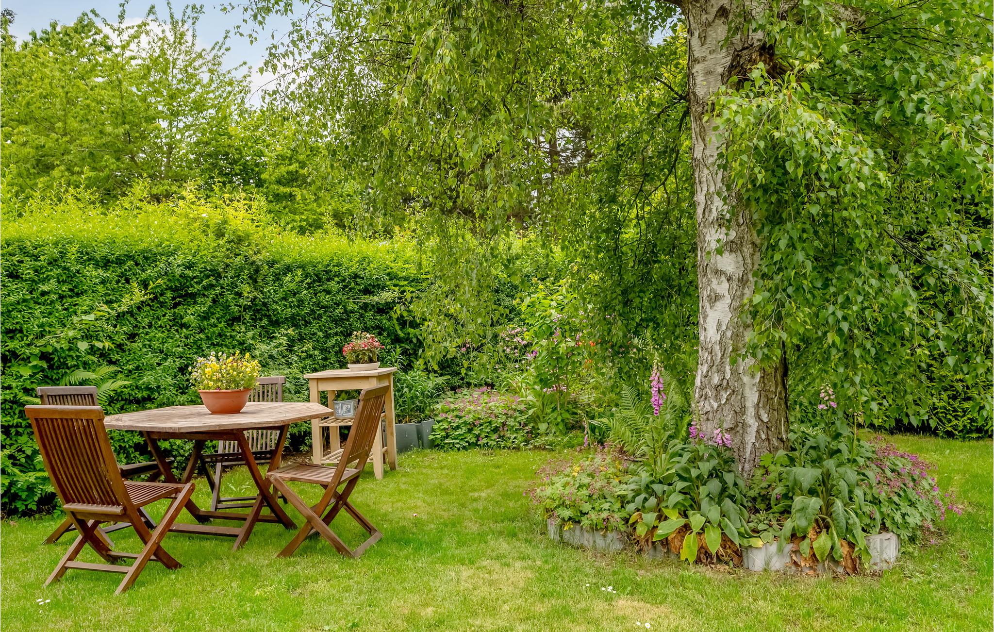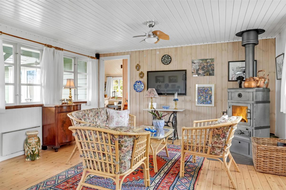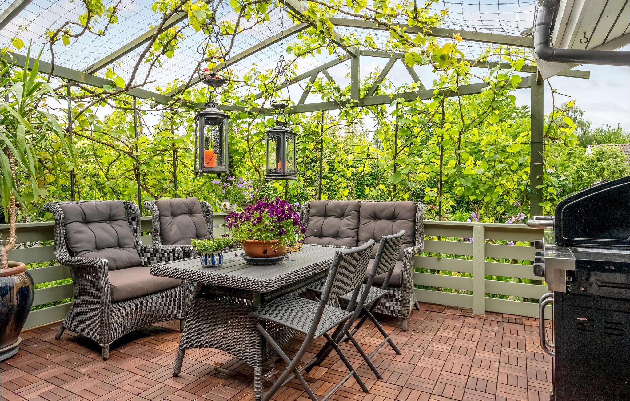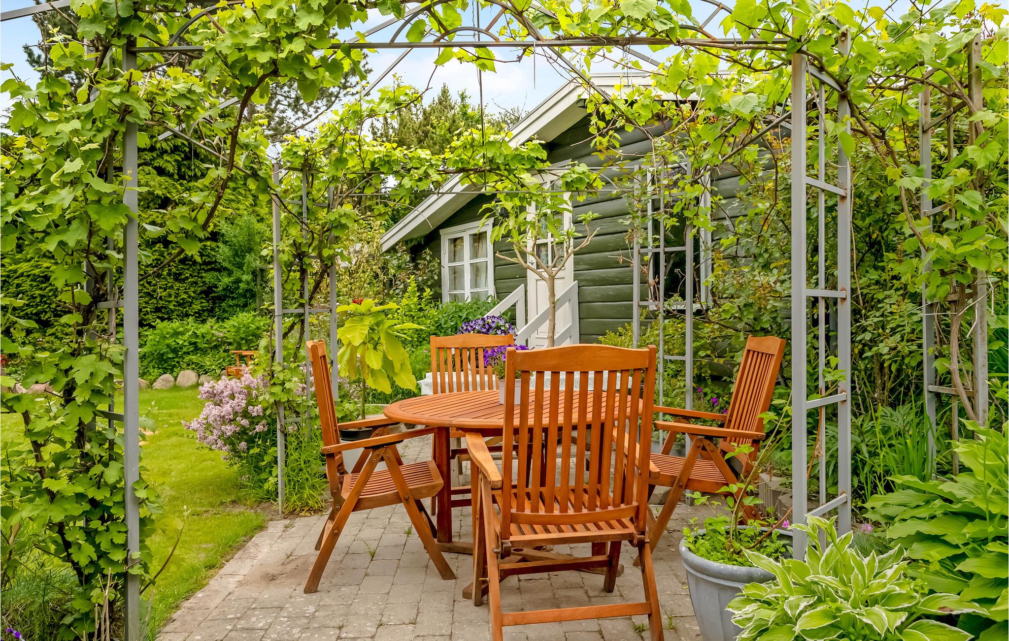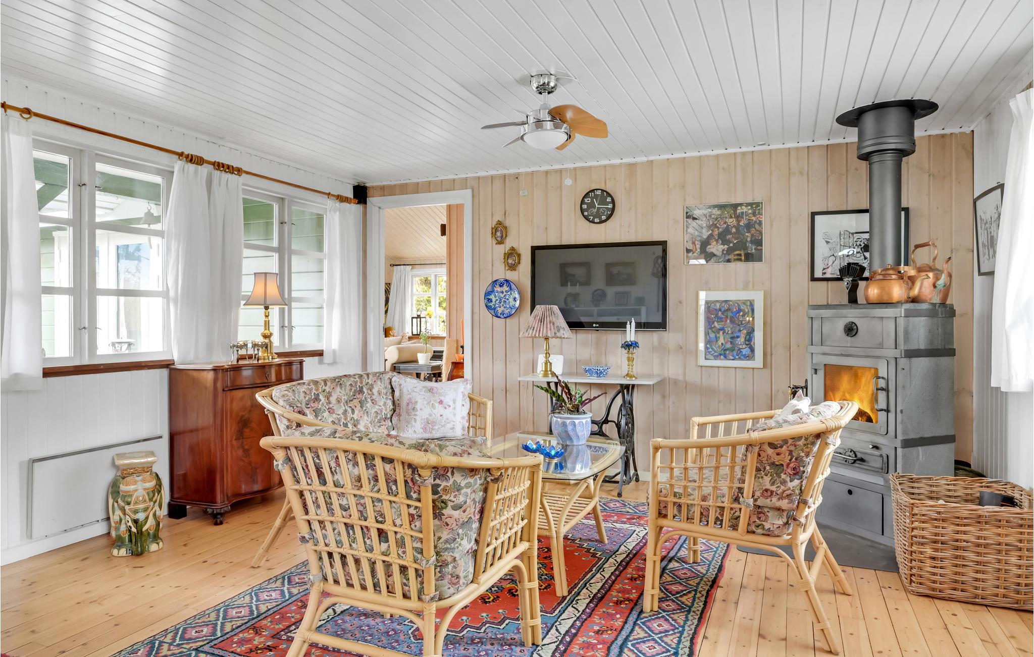 Romantisch vakantiehuis op Liseleje Strand met serre, tuin en moderne voorzieningen voor een ontspannen verblijf.