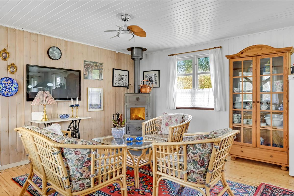 Charmant vakantiehuis in Liseleje Strand met serre, tuin en nabij breed zandstrand.