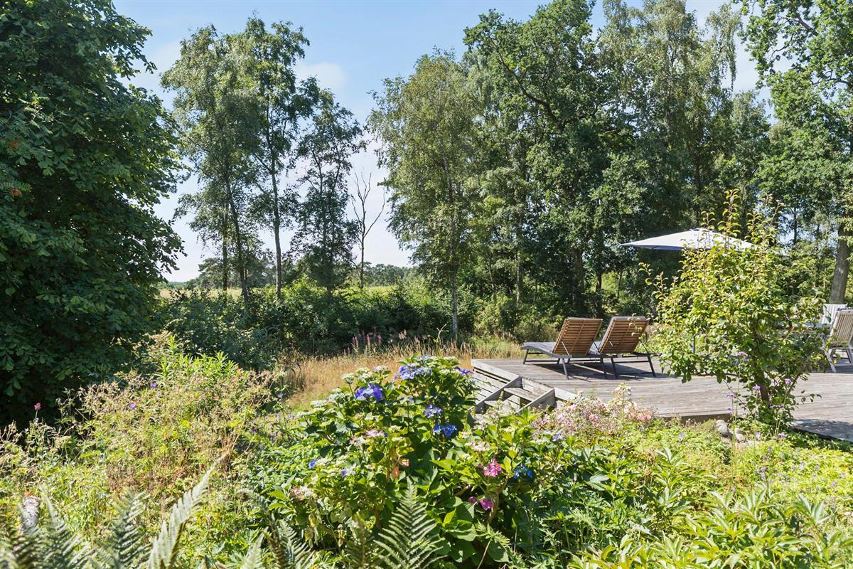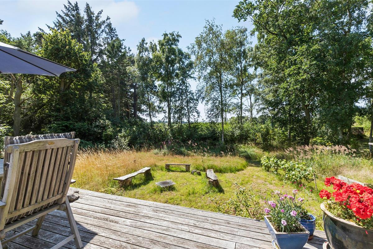 Op het terras met toegang tot de natuurlijke tuin kun je zonnebaden en genieten van de frisse lucht en het uitzicht op het platteland. Barbecue 's avonds of verzamel je rond de vuurplaats in de tuin en rooster marshmallows of steek brood boven het vuur.