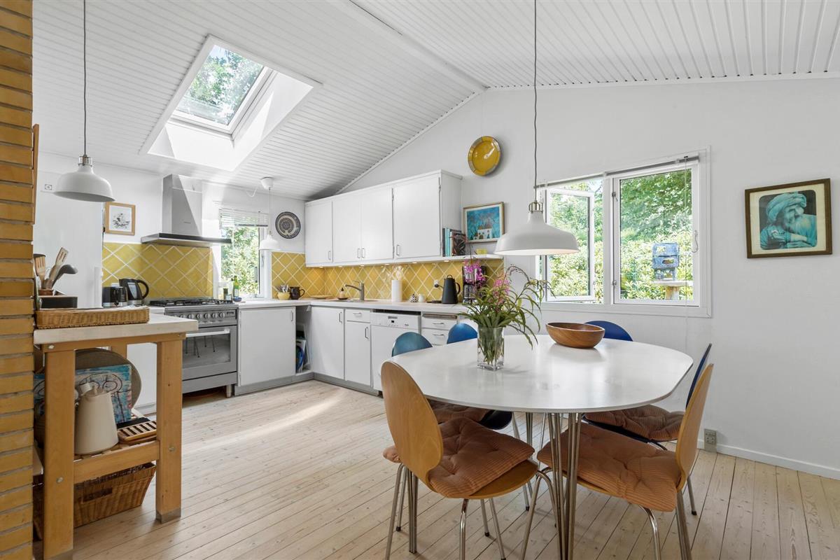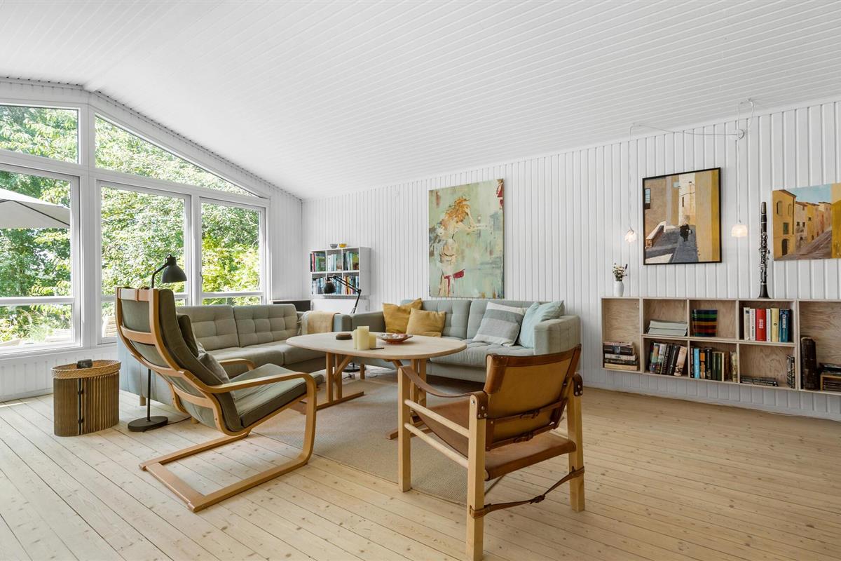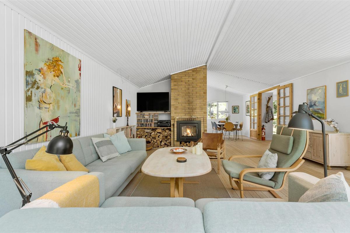 Een harmonieuze combinatie van modern design en een gezellige sfeer wacht op je in dit charmante vakantiehuis in Liseleje. De grote, lichtovergoten serre met uitzicht op de prachtige natuurlijke omgeving nodigt uit om te blijven hangen en creëert een unieke feel-good sfeer. Het lichte, vriendelijke interieur biedt je veel ruimte om te ontspannen en te genieten. Steek de open haard aan, ontmoet elkaar voor filmavonden op de bank of tover heerlijke maaltijden tevoorschijn in de keuken.