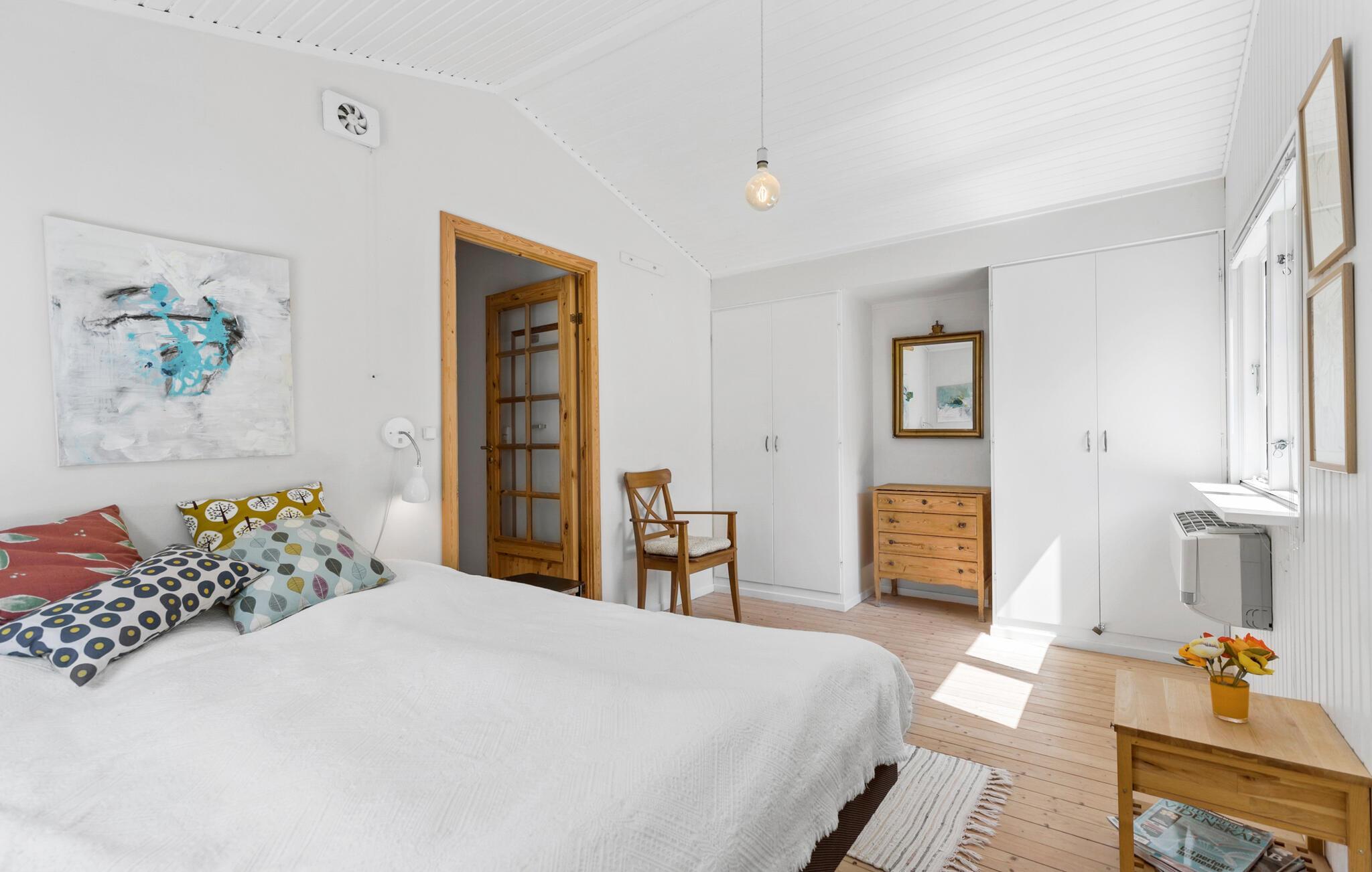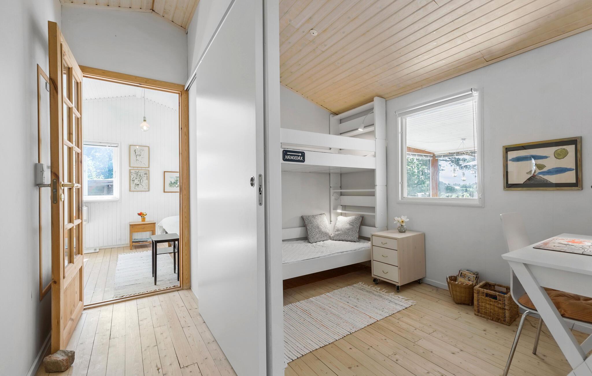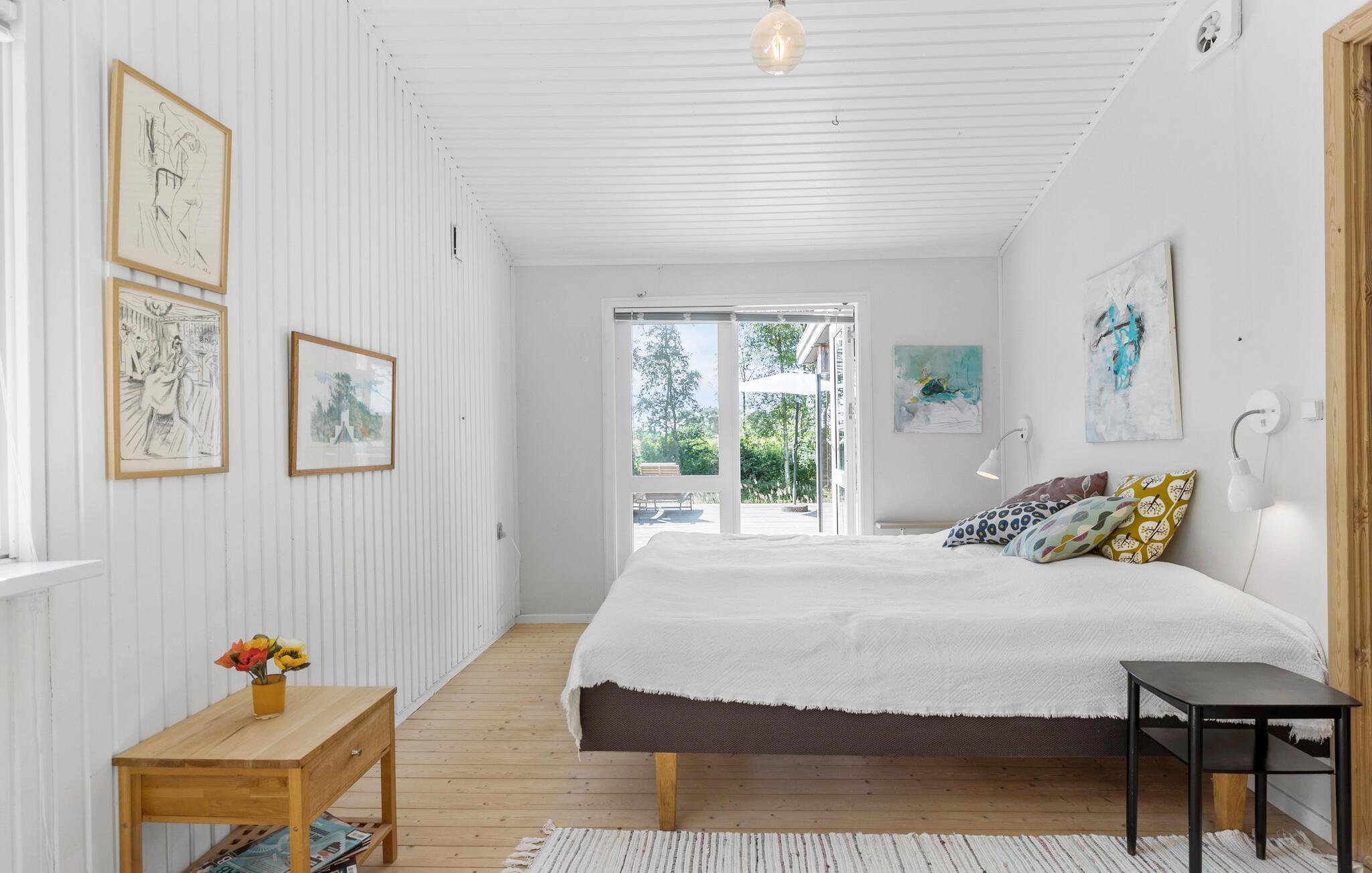 Een harmonieuze combinatie van modern design en een gezellige sfeer wacht op je in dit charmante vakantiehuis in Liseleje. De grote, lichtovergoten serre met uitzicht op de prachtige natuurlijke omgeving nodigt uit om te blijven hangen en creëert een unieke feel-good sfeer. Het lichte, vriendelijke interieur biedt je veel ruimte om te ontspannen en te genieten. Steek de open haard aan, ontmoet elkaar voor filmavonden op de bank of tover heerlijke maaltijden tevoorschijn in de keuken.
