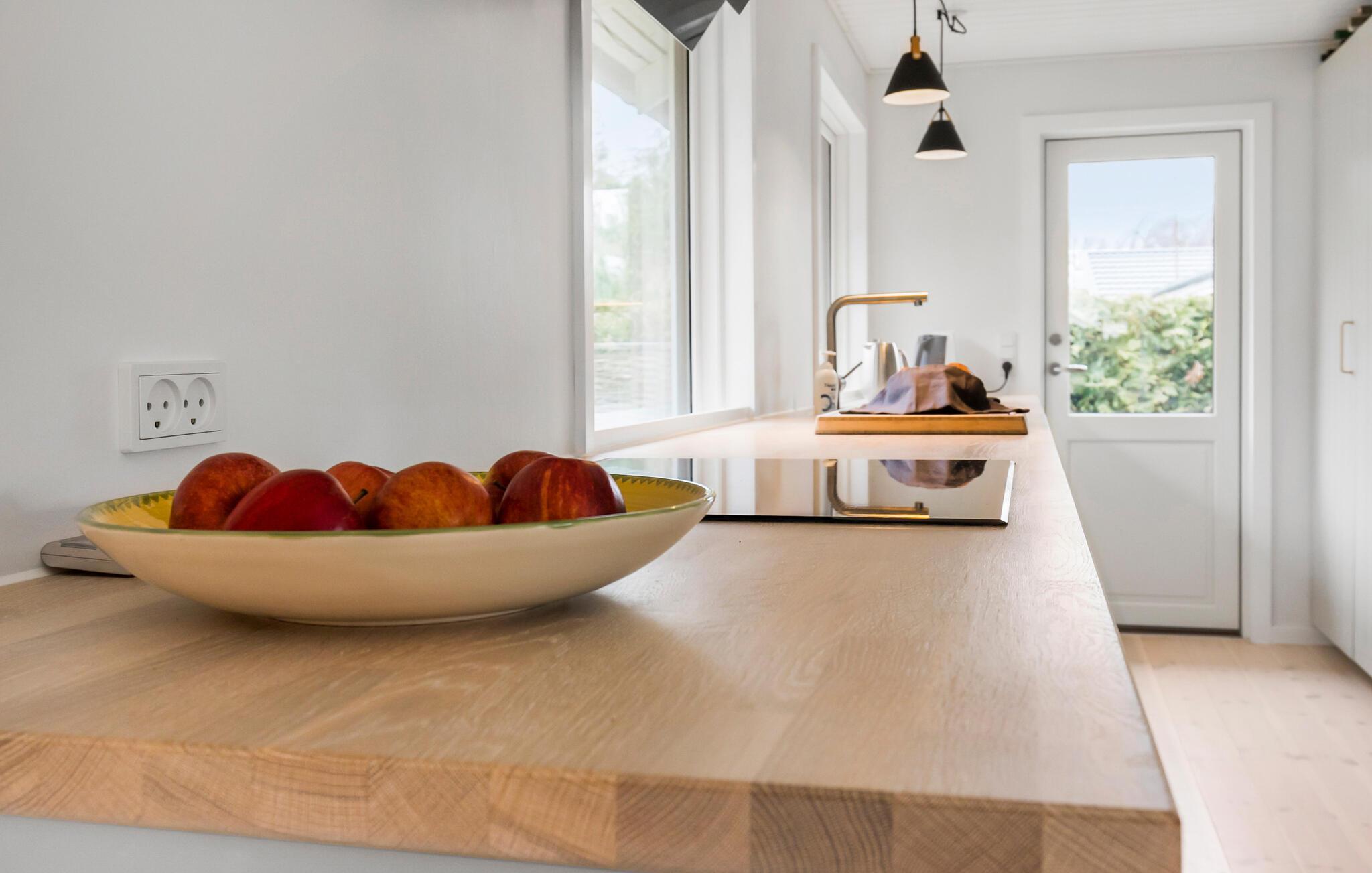Welkom in dit mooie en vriendelijke vakantiehuis, dat een geslaagd samenspel van hout, lichte kleuren en decoratieve materialen belooft. Het huis zal uw feel-good plek zijn en nodigt u uit om nieuwe recepten uit te proberen in de volledig uitgeruste keuken, ervan te genieten aan de eettafel of gewoon te ontspannen op de bank.