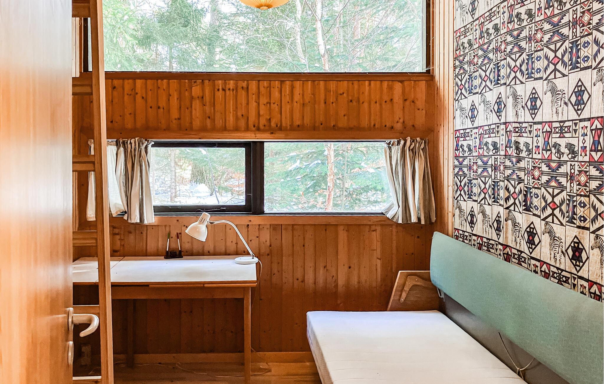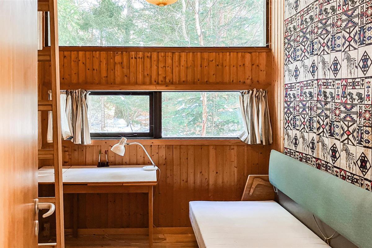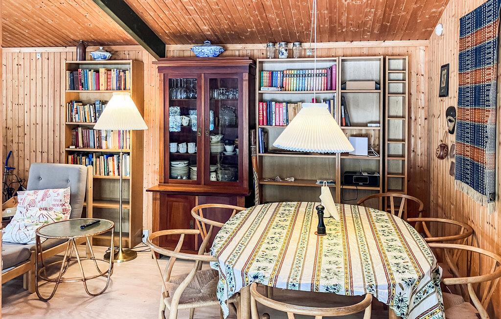 Met zijn warme lambrisering, grote ramen en open haard straalt dit gezellige houten huis een comfortabele en natuurlijke sfeer uit. Breng hier gezellige uurtjes door met kaarten of geniet samen van een filmavond op de bank. Kruip in een van de fauteuils met een goed boek en vergeet de tijd om je heen.