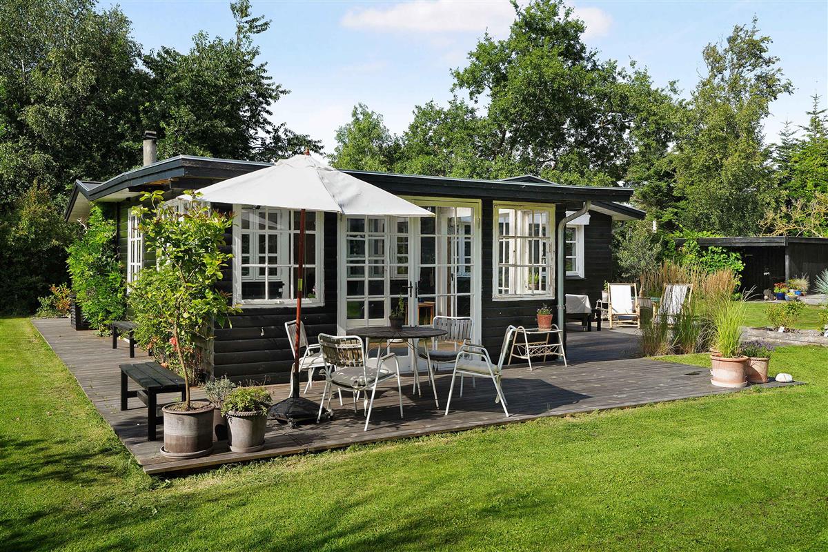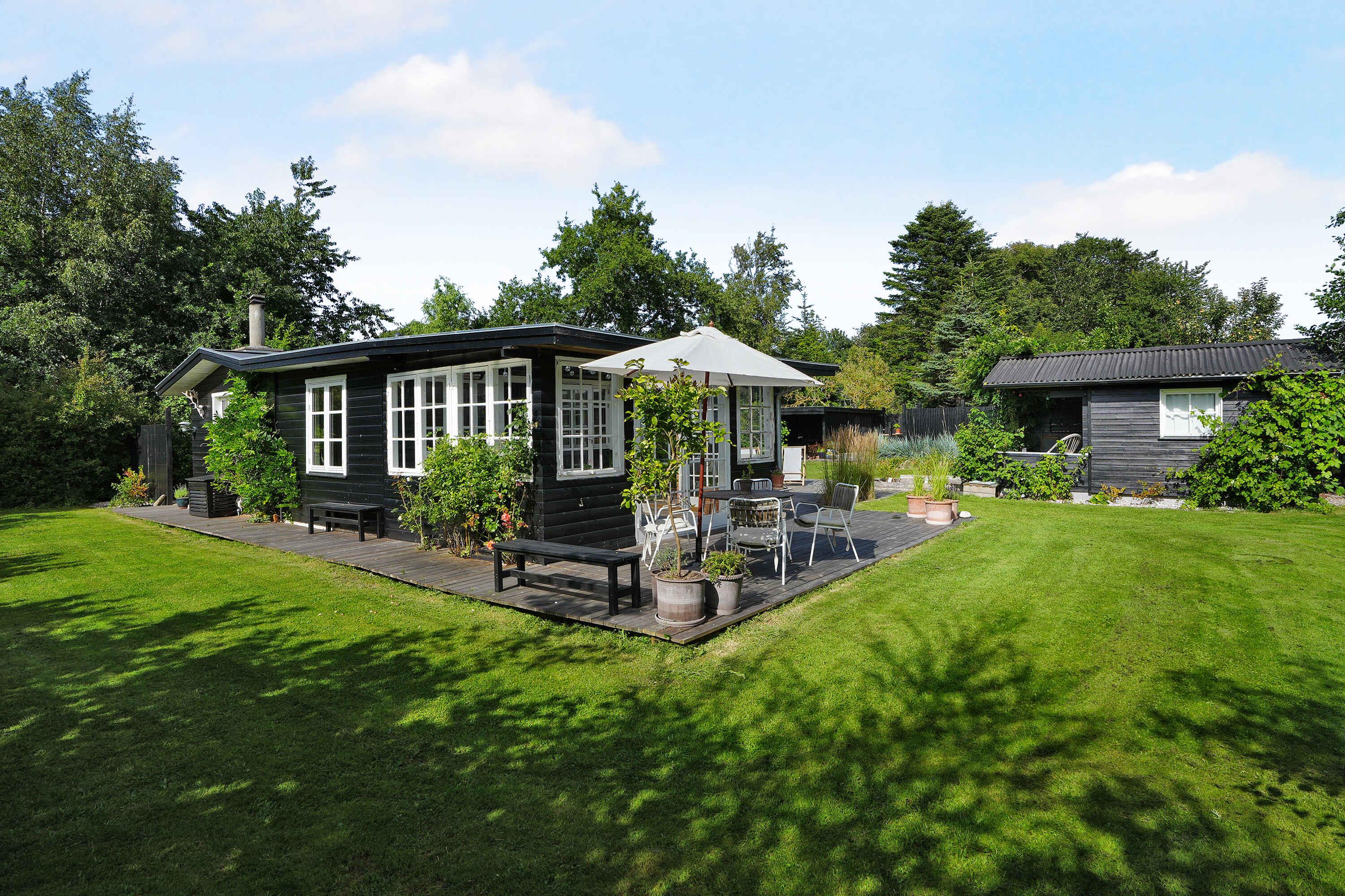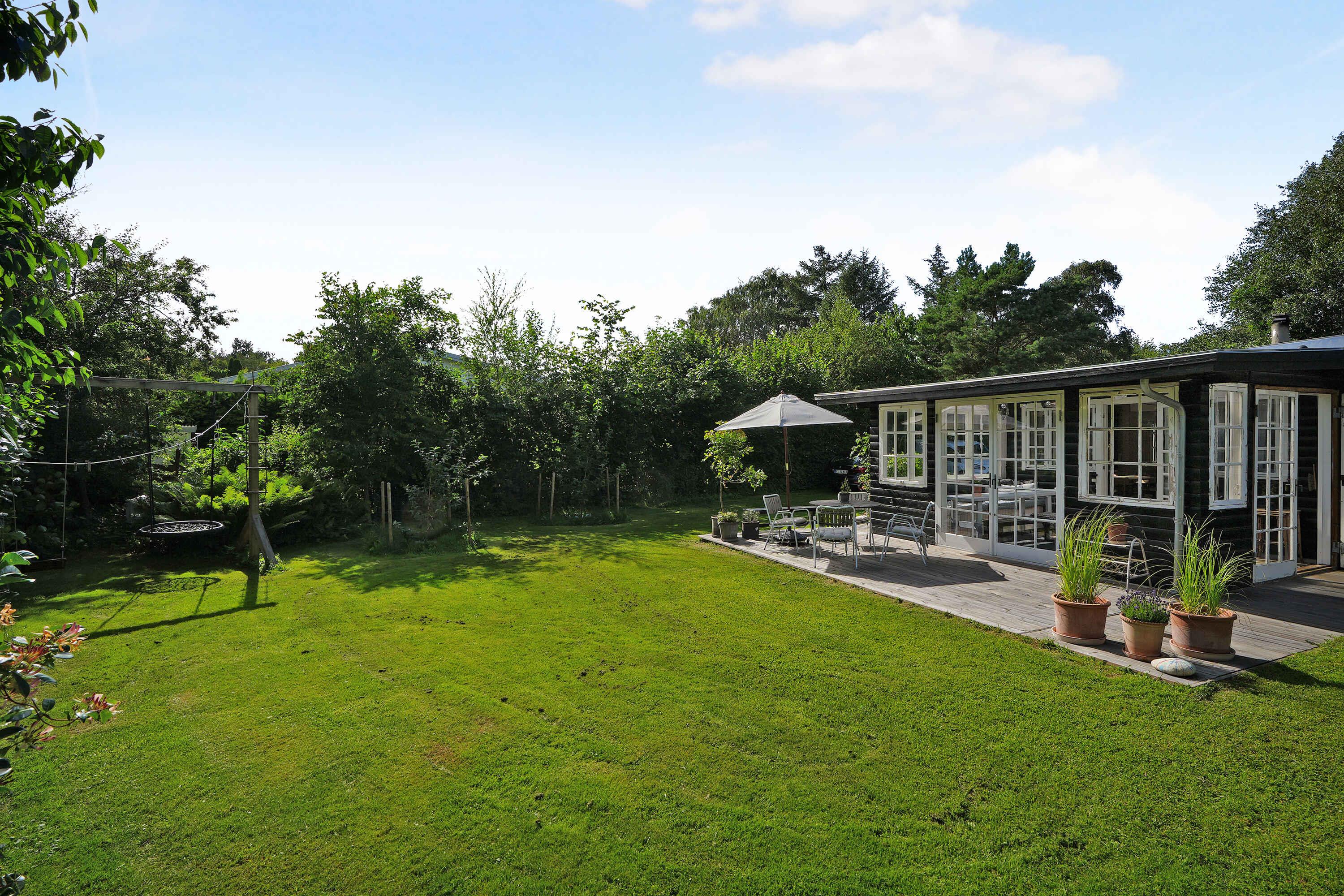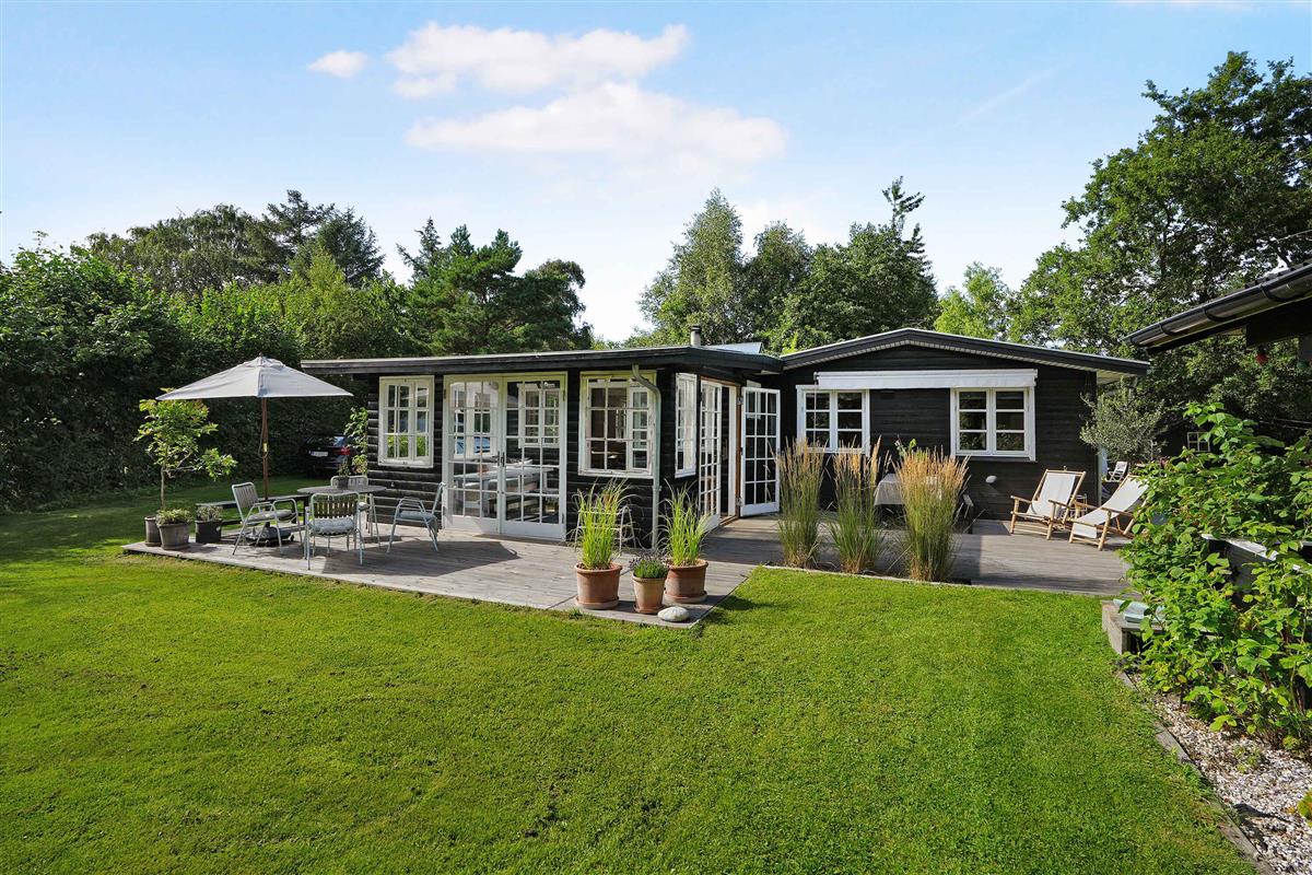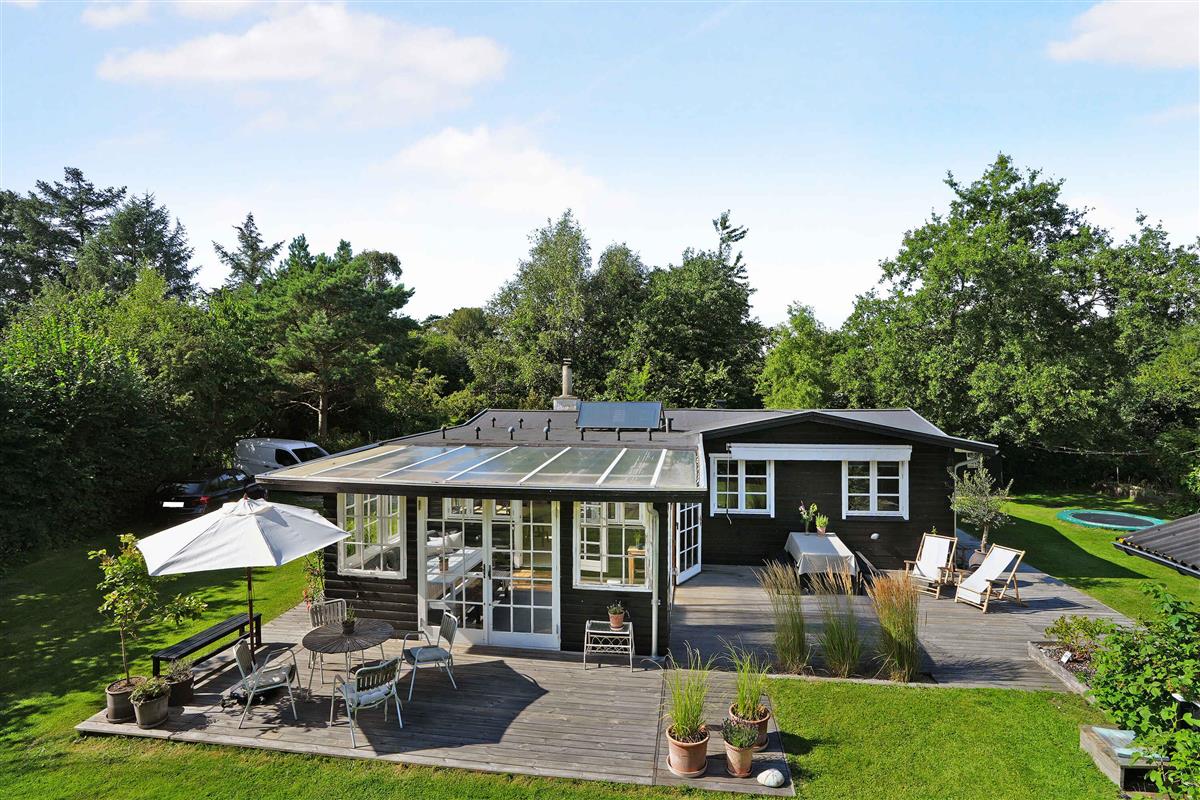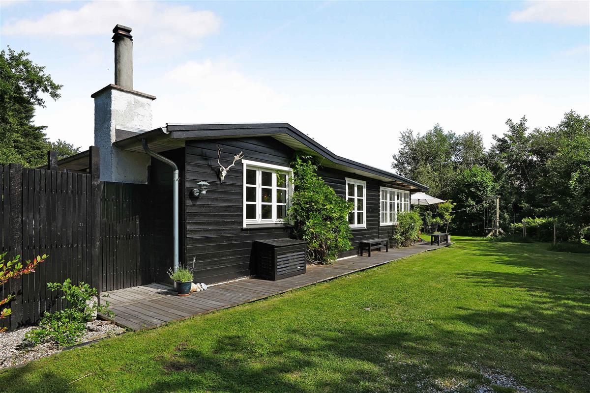 Klassiek Deens zomerhuis in zwart met wit geschilderde boerderijramen, dat de afgelopen jaren van binnen grondig is gerenoveerd met respect voor de identiteit van het huis. Het huis bevat een keuken/woonkamer en drie slaapkamers. In elk van de twee kamers zijn twee slaapplaatsen, terwijl in de derde een eenpersoonsbed staat dat over de gehele breedte van de kamer kan worden uitgetrokken tot een tweepersoonsbed. Het huis is gelegen in het oude Liseleje, waar alleen onverharde wegen en kleine paadjes zijn omringd door oude bomen. Het is slechts 250 meter naar een van de beste stranden van Denemarken en 7 minuten lopen naar het centrum van Liseleje. De tuin biedt veel privacy en er is geen autolawaai. U kunt vrij en ongestoord een warme douche nemen onder de buitendouche. Het zomerhuisleven is ook het terrasleven. Dat heb je hier in overvloed met een houten terras rondom het hele huis, zodat er altijd wel een plekje zon is, en als de zon te sterk is kan de luifel uitgerold worden. Daarnaast is er een mooie en rustieke oranjerie op het zuiden, waar 's avonds en koele dagen kunnen worden genoten met uitzicht op de natuur. De avondmaaltijd kan eventueel bereid worden in de buitenkeuken van het huis, waar een grote gasbarbecue aanwezig is en stromend koud/warm water bij de gootsteen. Voor de kinderen is er een schommel, speelhuisje en een ingegraven trampoline. Het gezellige centrum van Liseleje ligt op slechts 700 meter afstand, dus voor een wafelijsje van een van de vele ijssalons, shoppen, versgebakken brood of een kop koffie in een van de stadscafés is het niet ver. Let op: Niet te huur voor commercieel gebruik.