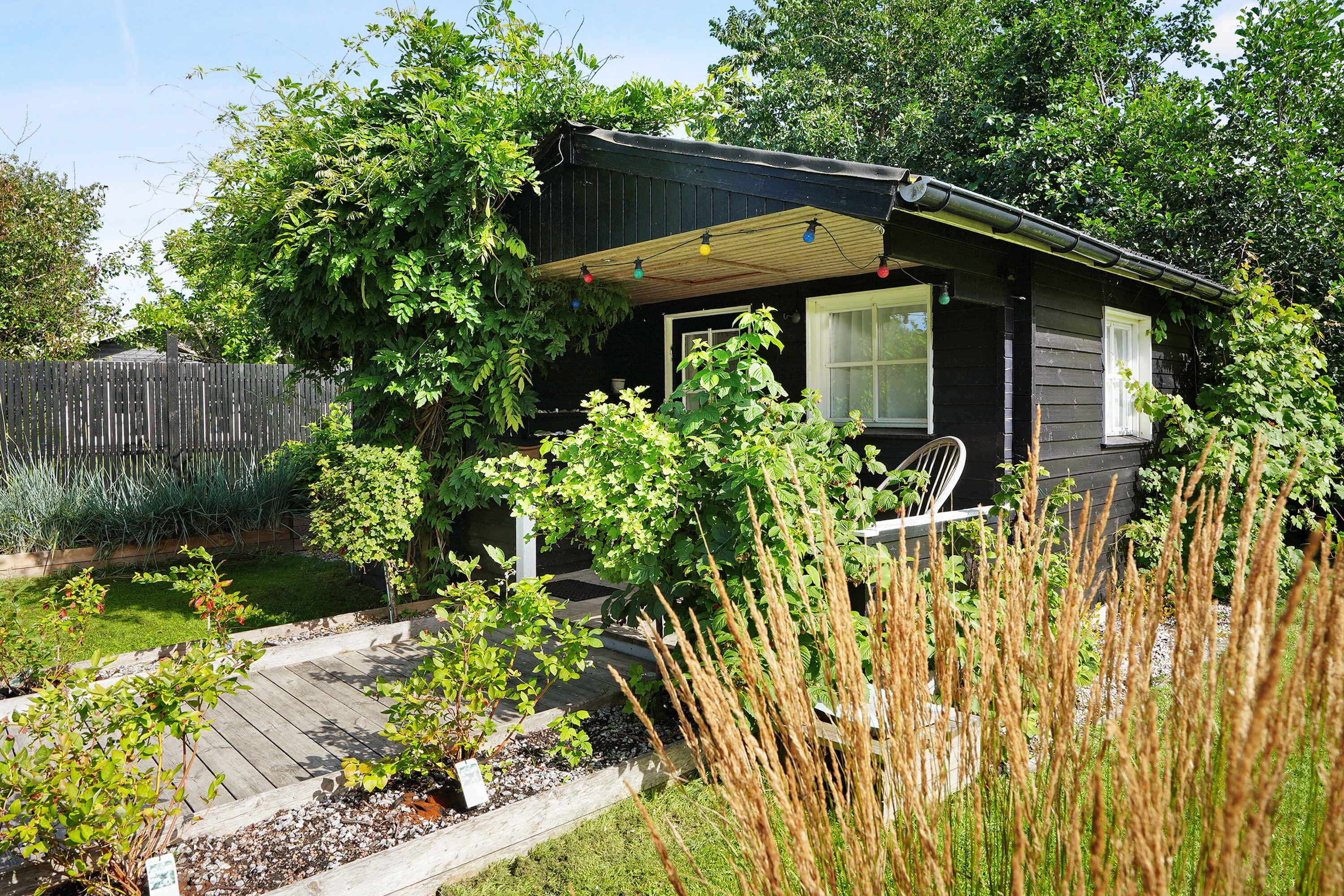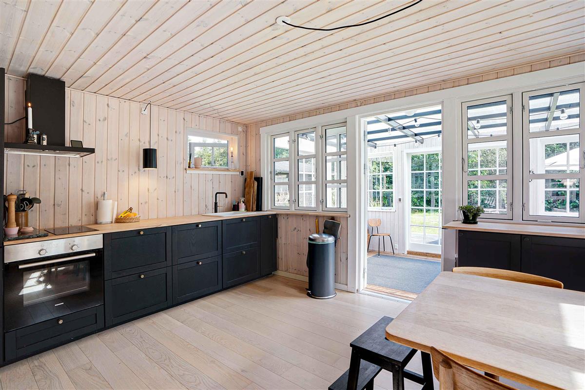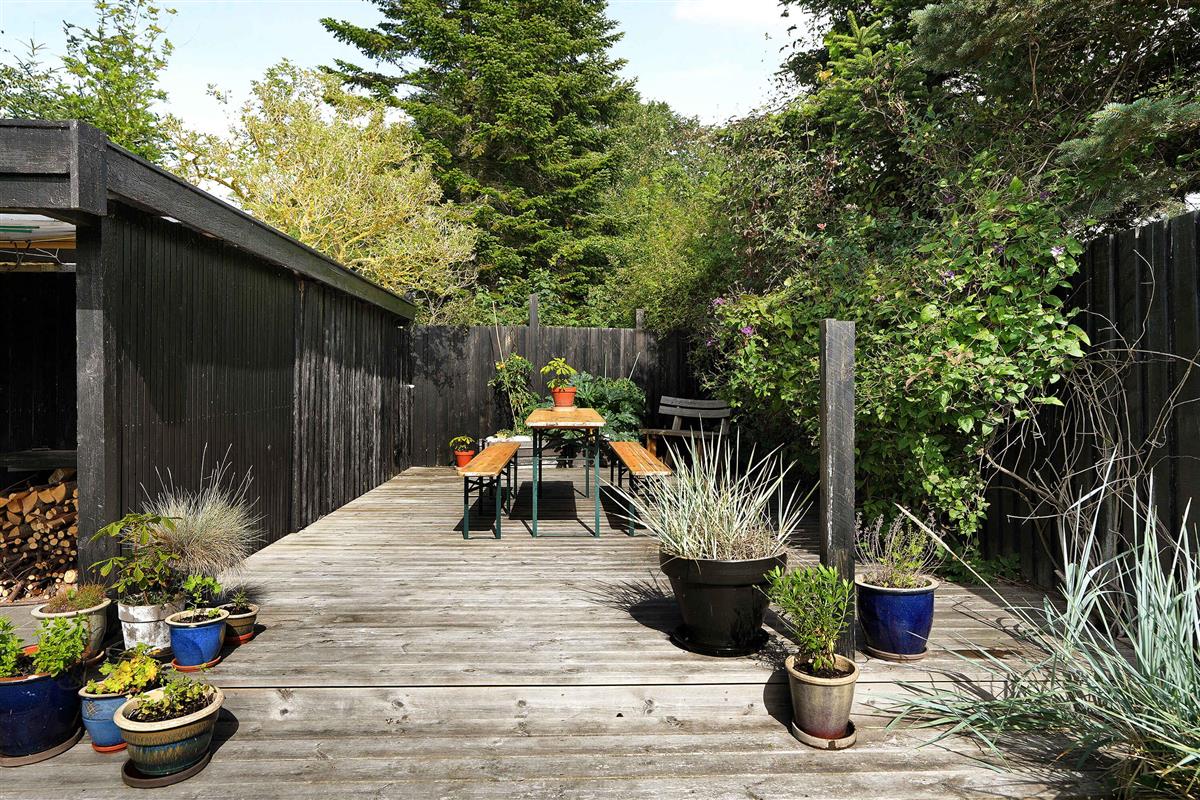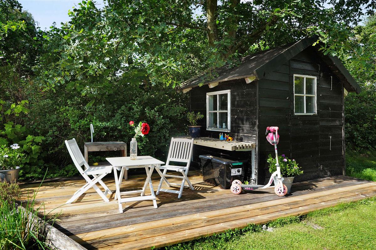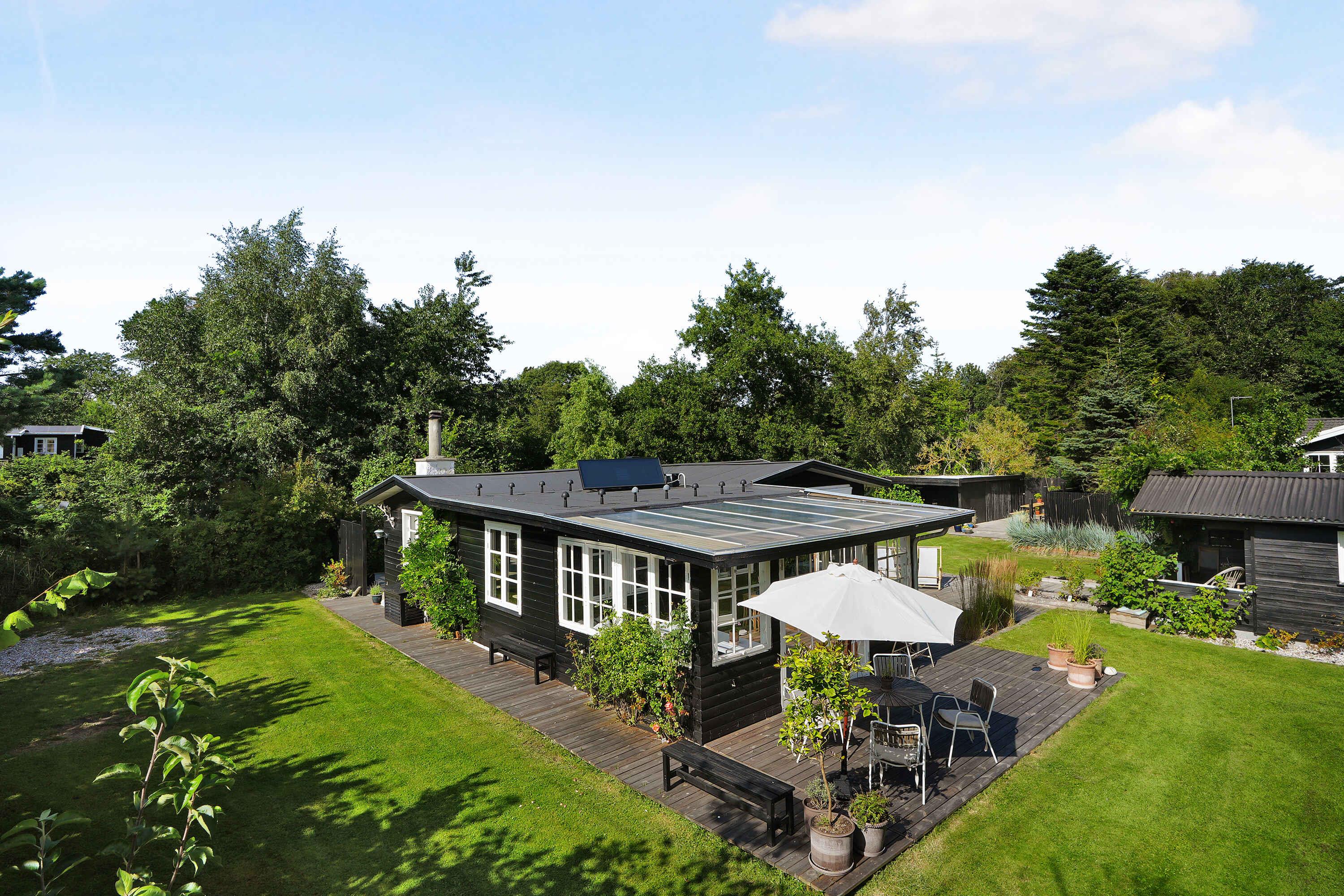 Klassiek Deens zomerhuis in zwart met wit geschilderde boerderijramen, dat de afgelopen jaren van binnen grondig is gerenoveerd met respect voor de identiteit van het huis. Het huis bevat een keuken/woonkamer en drie slaapkamers. In elk van de twee kamers zijn twee slaapplaatsen, terwijl in de derde een eenpersoonsbed staat dat over de gehele breedte van de kamer kan worden uitgetrokken tot een tweepersoonsbed. Het huis is gelegen in het oude Liseleje, waar alleen onverharde wegen en kleine paadjes zijn omringd door oude bomen. Het is slechts 250 meter naar een van de beste stranden van Denemarken en 7 minuten lopen naar het centrum van Liseleje. De tuin biedt veel privacy en er is geen autolawaai. U kunt vrij en ongestoord een warme douche nemen onder de buitendouche. Het zomerhuisleven is ook het terrasleven. Dat heb je hier in overvloed met een houten terras rondom het hele huis, zodat er altijd wel een plekje zon is, en als de zon te sterk is kan de luifel uitgerold worden. Daarnaast is er een mooie en rustieke oranjerie op het zuiden, waar 's avonds en koele dagen kunnen worden genoten met uitzicht op de natuur. De avondmaaltijd kan eventueel bereid worden in de buitenkeuken van het huis, waar een grote gasbarbecue aanwezig is en stromend koud/warm water bij de gootsteen. Voor de kinderen is er een schommel, speelhuisje en een ingegraven trampoline. Het gezellige centrum van Liseleje ligt op slechts 700 meter afstand, dus voor een wafelijsje van een van de vele ijssalons, shoppen, versgebakken brood of een kop koffie in een van de stadscafés is het niet ver. Let op: Niet te huur voor commercieel gebruik.