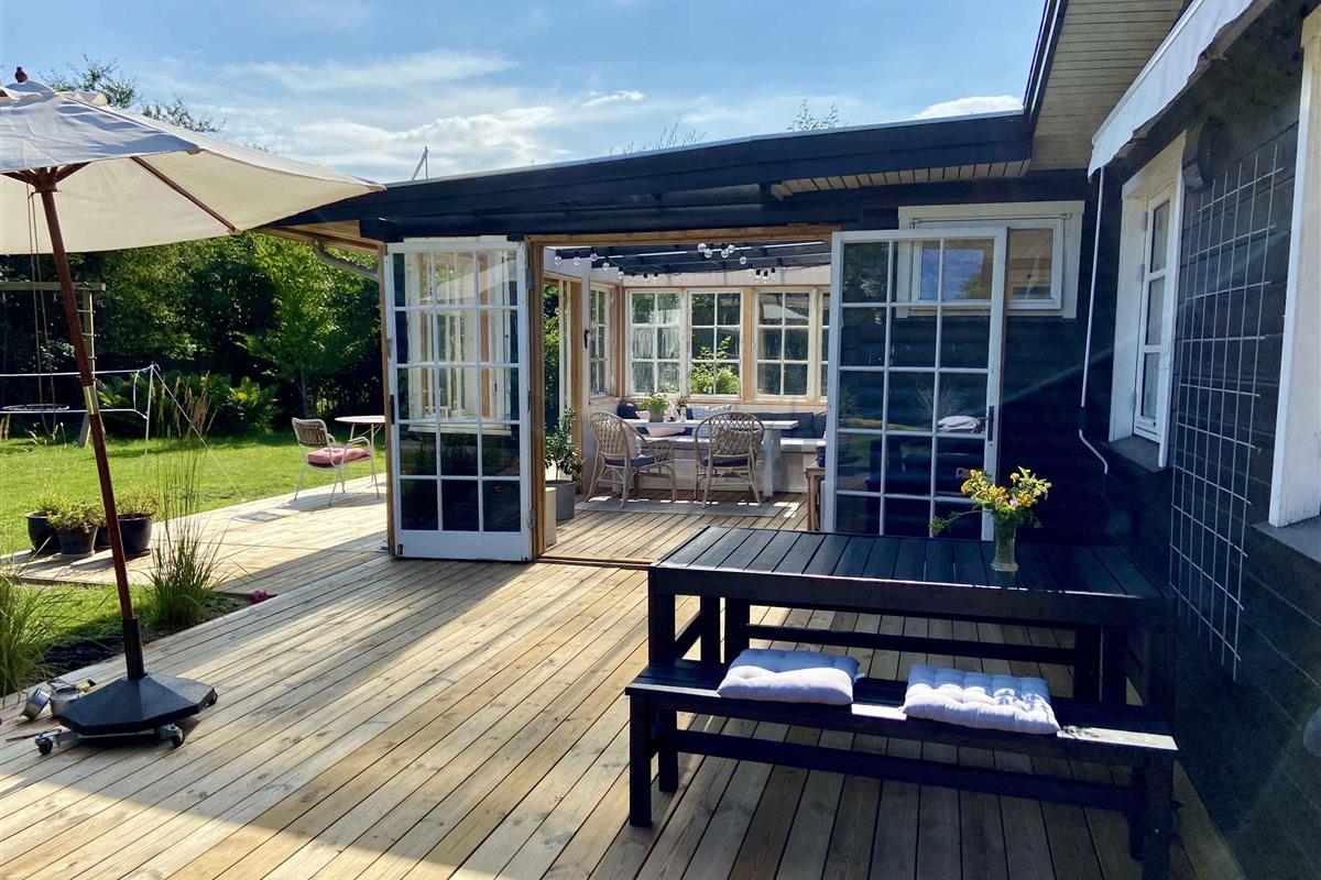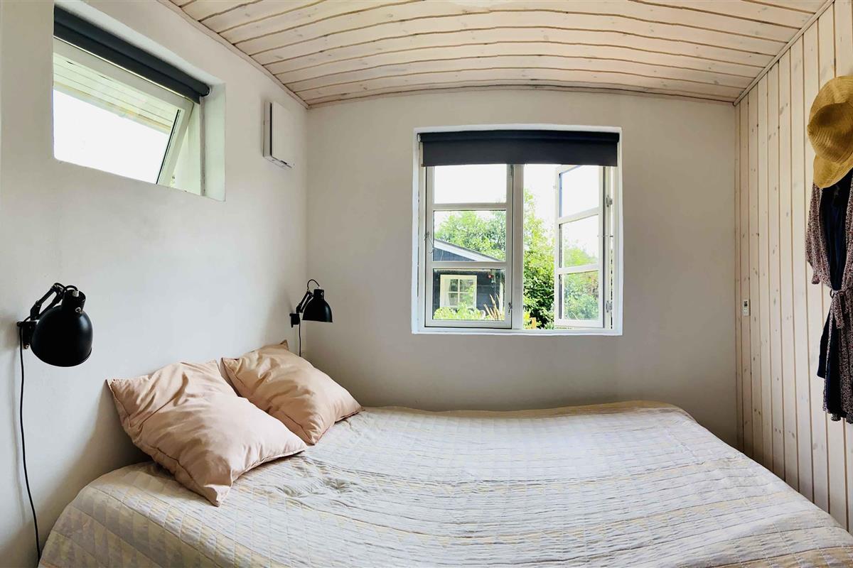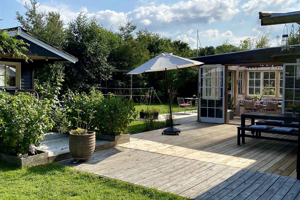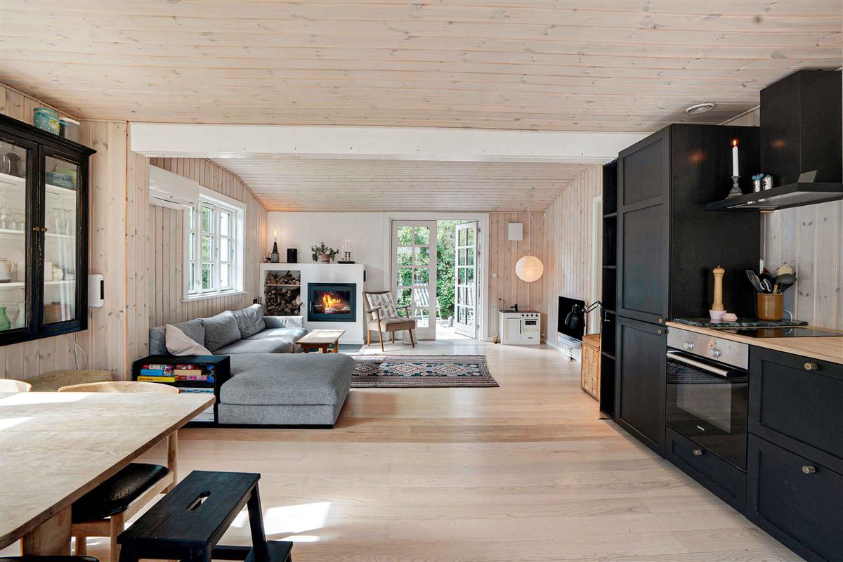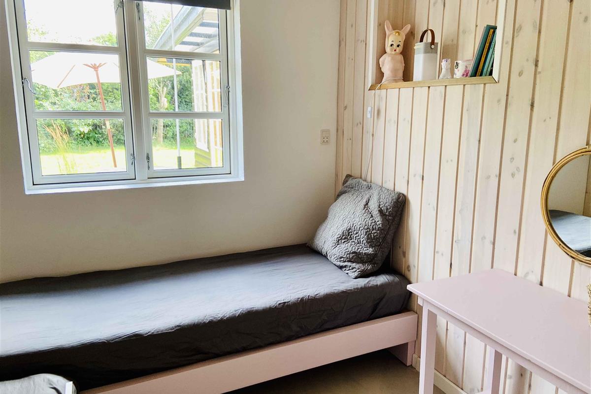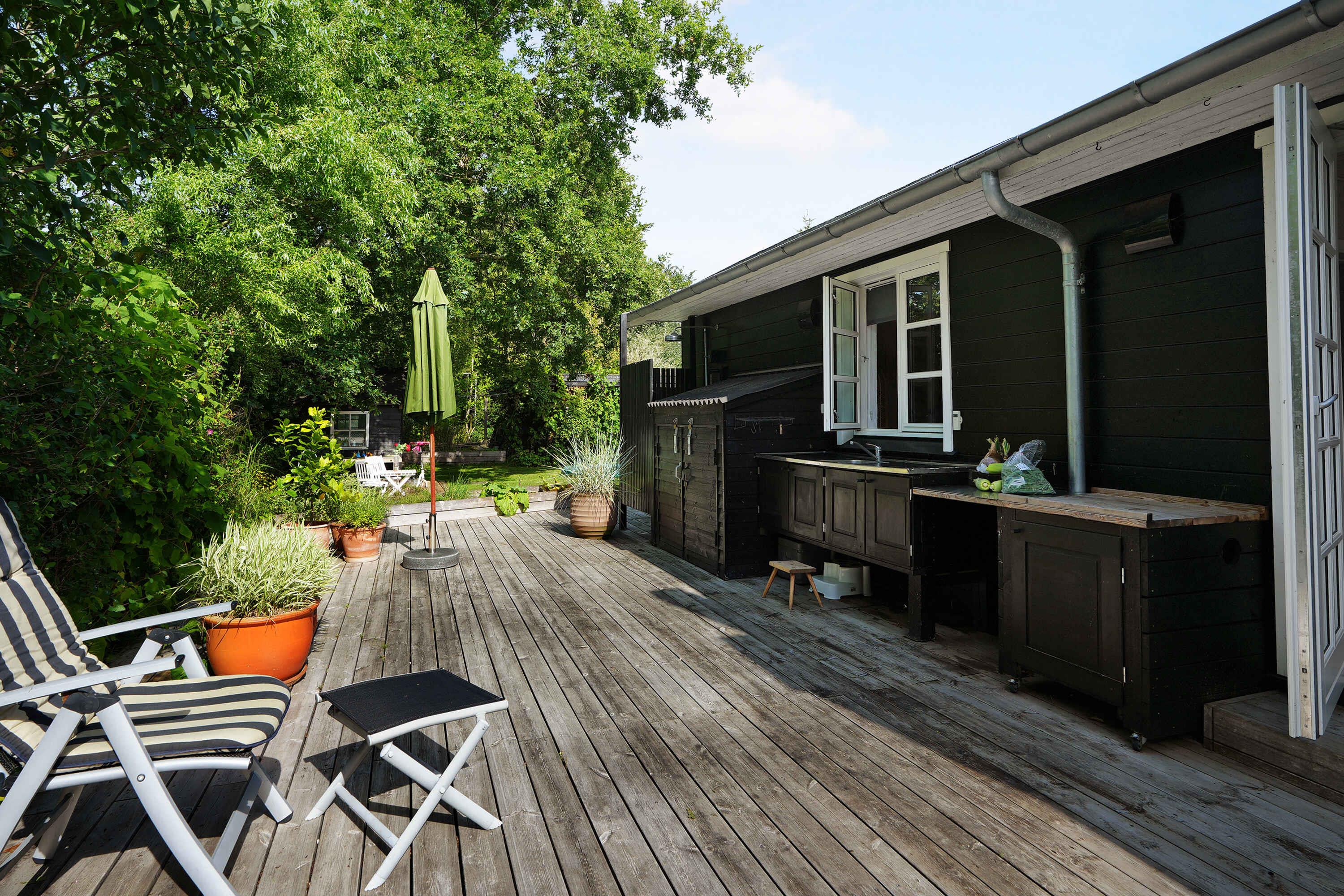 Klassiek Deens zomerhuis in zwart met wit geschilderde boerderijramen, dat de afgelopen jaren van binnen grondig is gerenoveerd met respect voor de identiteit van het huis. Het huis bevat een keuken/woonkamer en drie slaapkamers. In elk van de twee kamers zijn twee slaapplaatsen, terwijl in de derde een eenpersoonsbed staat dat over de gehele breedte van de kamer kan worden uitgetrokken tot een tweepersoonsbed. Het huis is gelegen in het oude Liseleje, waar alleen onverharde wegen en kleine paadjes zijn omringd door oude bomen. Het is slechts 250 meter naar een van de beste stranden van Denemarken en 7 minuten lopen naar het centrum van Liseleje. De tuin biedt veel privacy en er is geen autolawaai. U kunt vrij en ongestoord een warme douche nemen onder de buitendouche. Het zomerhuisleven is ook het terrasleven. Dat heb je hier in overvloed met een houten terras rondom het hele huis, zodat er altijd wel een plekje zon is, en als de zon te sterk is kan de luifel uitgerold worden. Daarnaast is er een mooie en rustieke oranjerie op het zuiden, waar 's avonds en koele dagen kunnen worden genoten met uitzicht op de natuur. De avondmaaltijd kan eventueel bereid worden in de buitenkeuken van het huis, waar een grote gasbarbecue aanwezig is en stromend koud/warm water bij de gootsteen. Voor de kinderen is er een schommel, speelhuisje en een ingegraven trampoline. Het gezellige centrum van Liseleje ligt op slechts 700 meter afstand, dus voor een wafelijsje van een van de vele ijssalons, shoppen, versgebakken brood of een kop koffie in een van de stadscafés is het niet ver. Let op: Niet te huur voor commercieel gebruik.