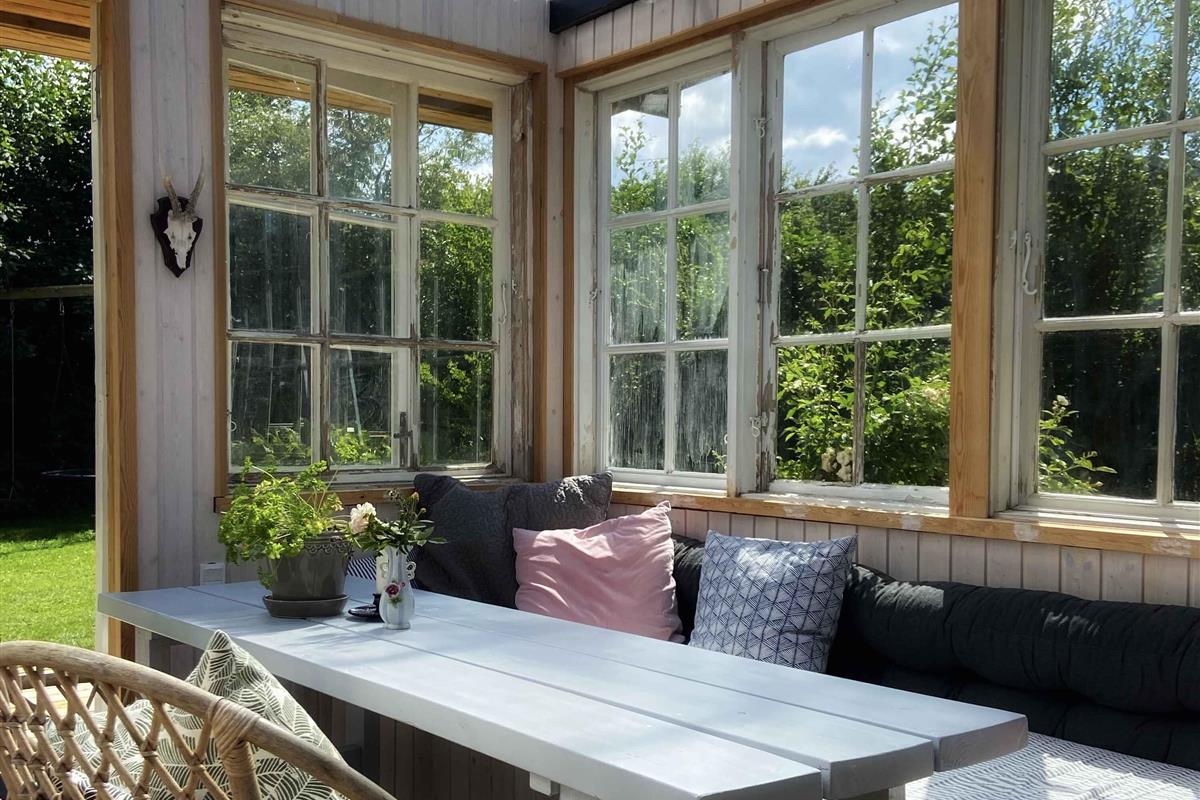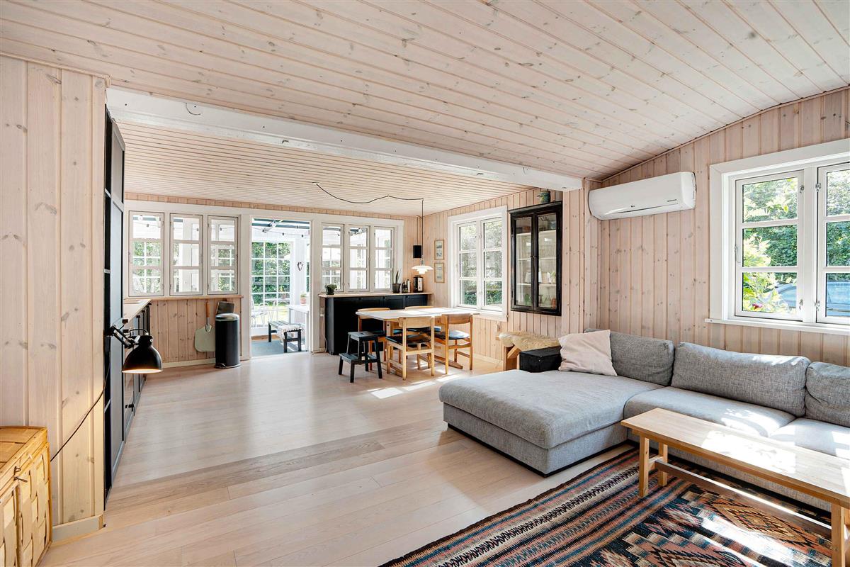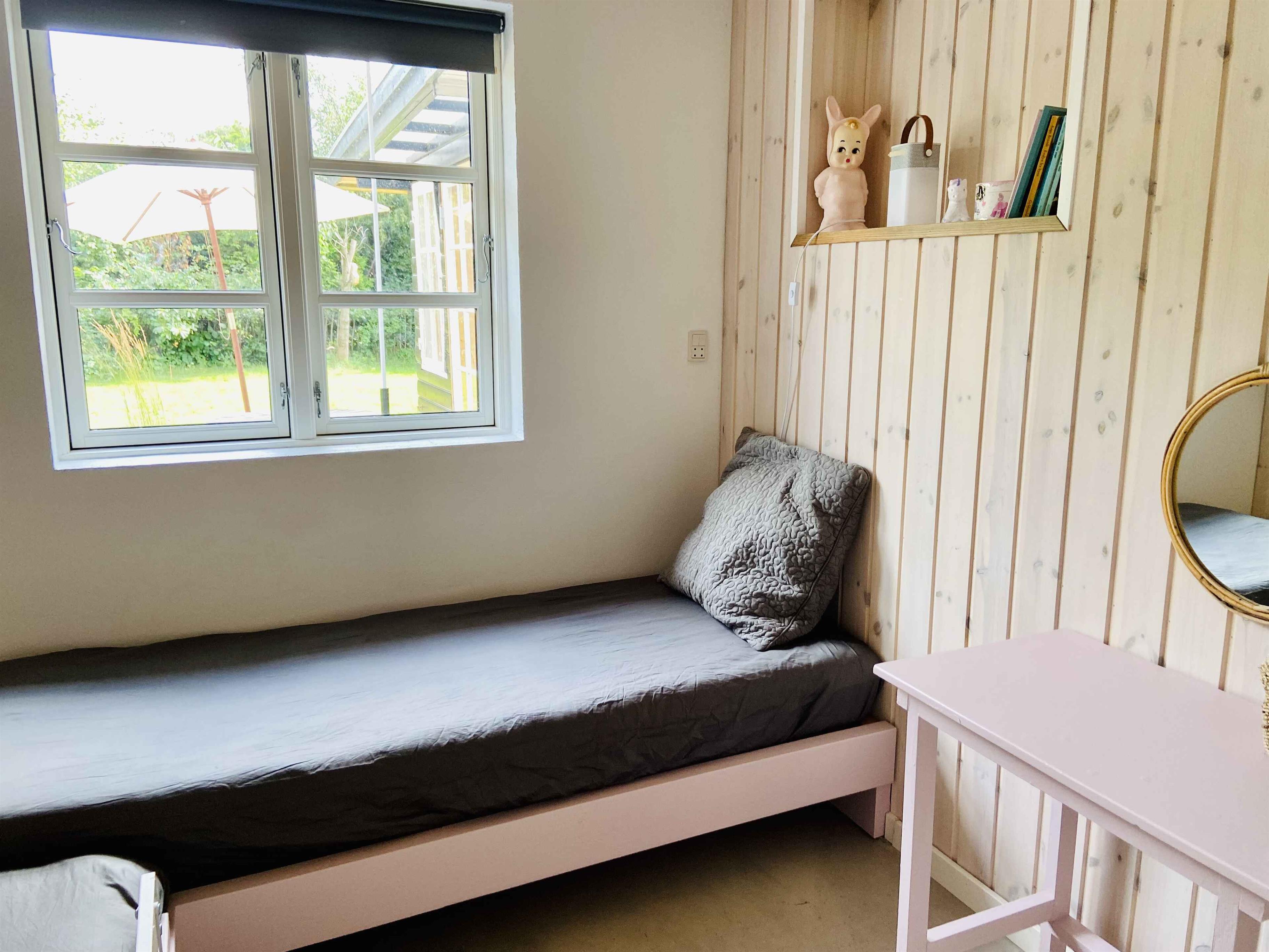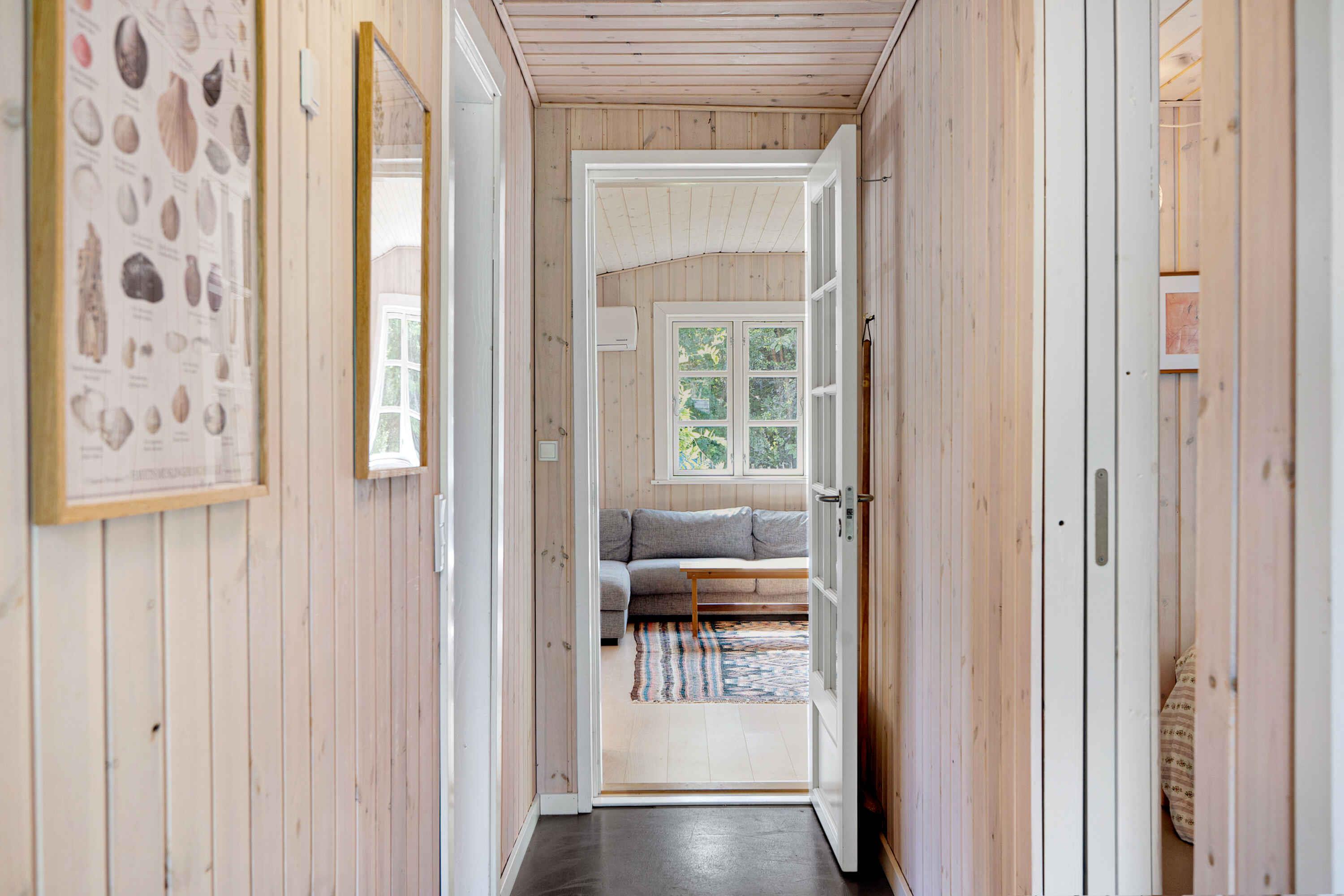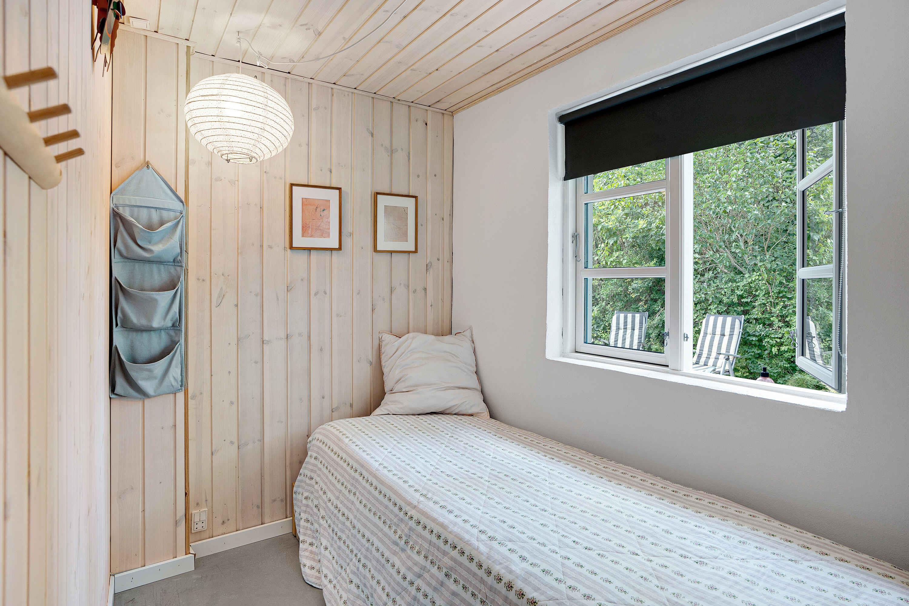Klassiek Deens zomerhuis in zwart met wit geschilderde boerderijramen, dat de afgelopen jaren van binnen grondig is gerenoveerd met respect voor de identiteit van het huis. Het huis bevat een keuken/woonkamer en drie slaapkamers. In elk van de twee kamers zijn twee slaapplaatsen, terwijl in de derde een eenpersoonsbed staat dat over de gehele breedte van de kamer kan worden uitgetrokken tot een tweepersoonsbed. Het huis is gelegen in het oude Liseleje, waar alleen onverharde wegen en kleine paadjes zijn omringd door oude bomen. Het is slechts 250 meter naar een van de beste stranden van Denemarken en 7 minuten lopen naar het centrum van Liseleje. De tuin biedt veel privacy en er is geen autolawaai. U kunt vrij en ongestoord een warme douche nemen onder de buitendouche. Het zomerhuisleven is ook het terrasleven. Dat heb je hier in overvloed met een houten terras rondom het hele huis, zodat er altijd wel een plekje zon is, en als de zon te sterk is kan de luifel uitgerold worden. Daarnaast is er een mooie en rustieke oranjerie op het zuiden, waar 's avonds en koele dagen kunnen worden genoten met uitzicht op de natuur. De avondmaaltijd kan eventueel bereid worden in de buitenkeuken van het huis, waar een grote gasbarbecue aanwezig is en stromend koud/warm water bij de gootsteen. Voor de kinderen is er een schommel, speelhuisje en een ingegraven trampoline. Het gezellige centrum van Liseleje ligt op slechts 700 meter afstand, dus voor een wafelijsje van een van de vele ijssalons, shoppen, versgebakken brood of een kop koffie in een van de stadscafés is het niet ver. Let op: Niet te huur voor commercieel gebruik.