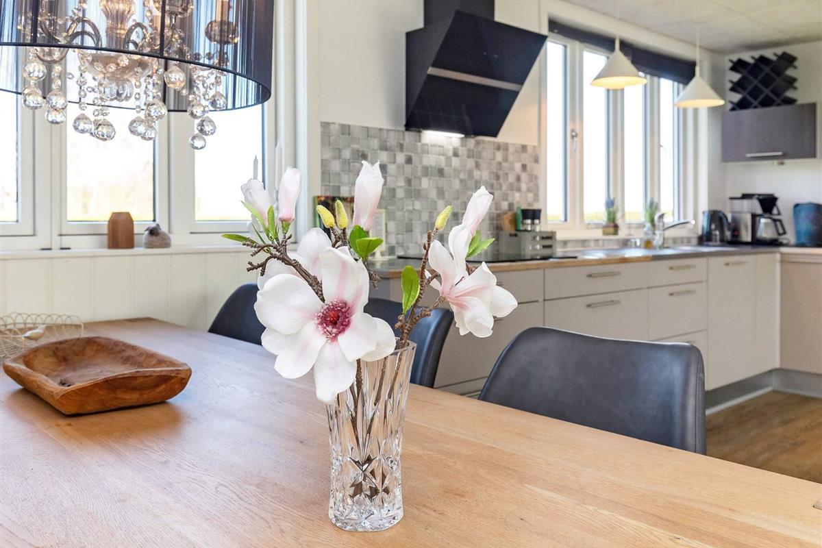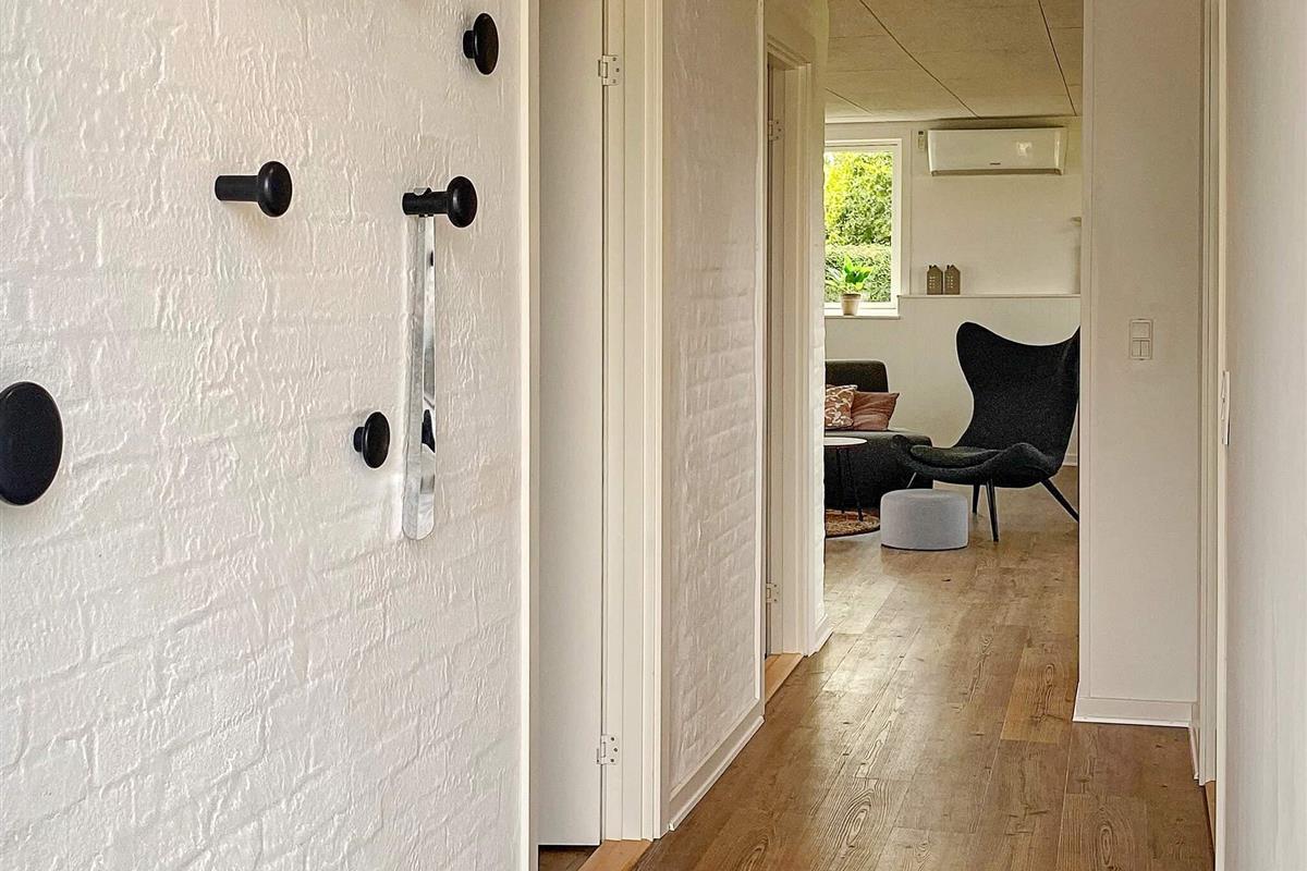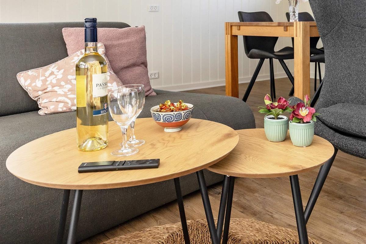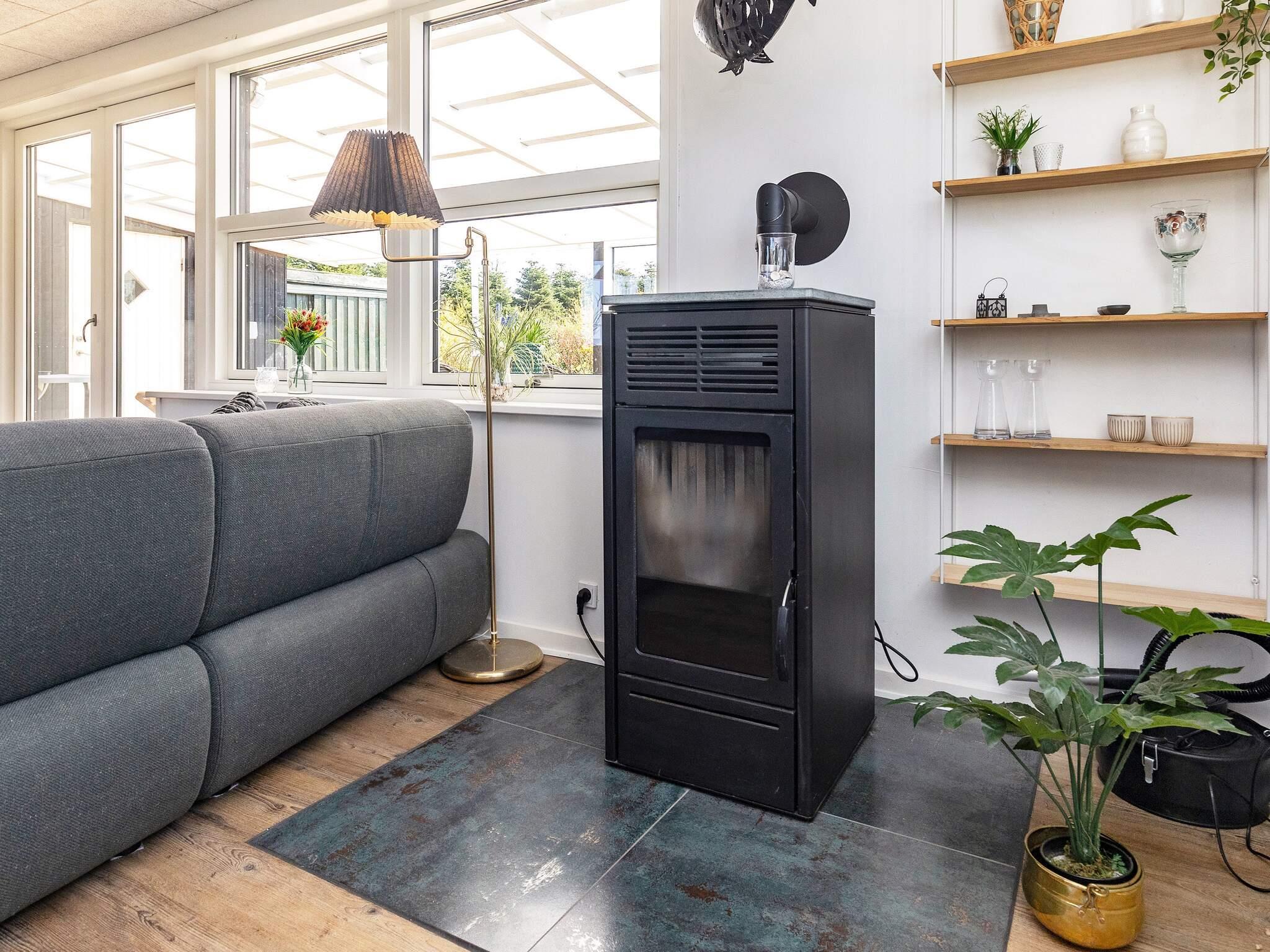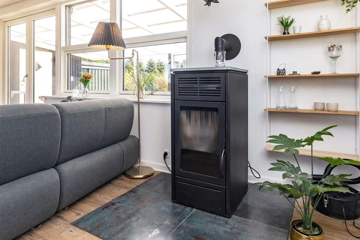 Das Ferienhaus ist praktisch eingerichtet und verfügt über ein kombiniertes Wohn-/Küchen-/Familienzimmer. Das Wohnzimmer ist modern möbliert, bietet Highspeed-Internet und einen Flachbildfernseher mit deutschen und dänischen Sendern, darunter TV-2. Für kühle Sommerabende oder regnerische und windige Herbstabende steht ein Pelletofen zur Verfügung.