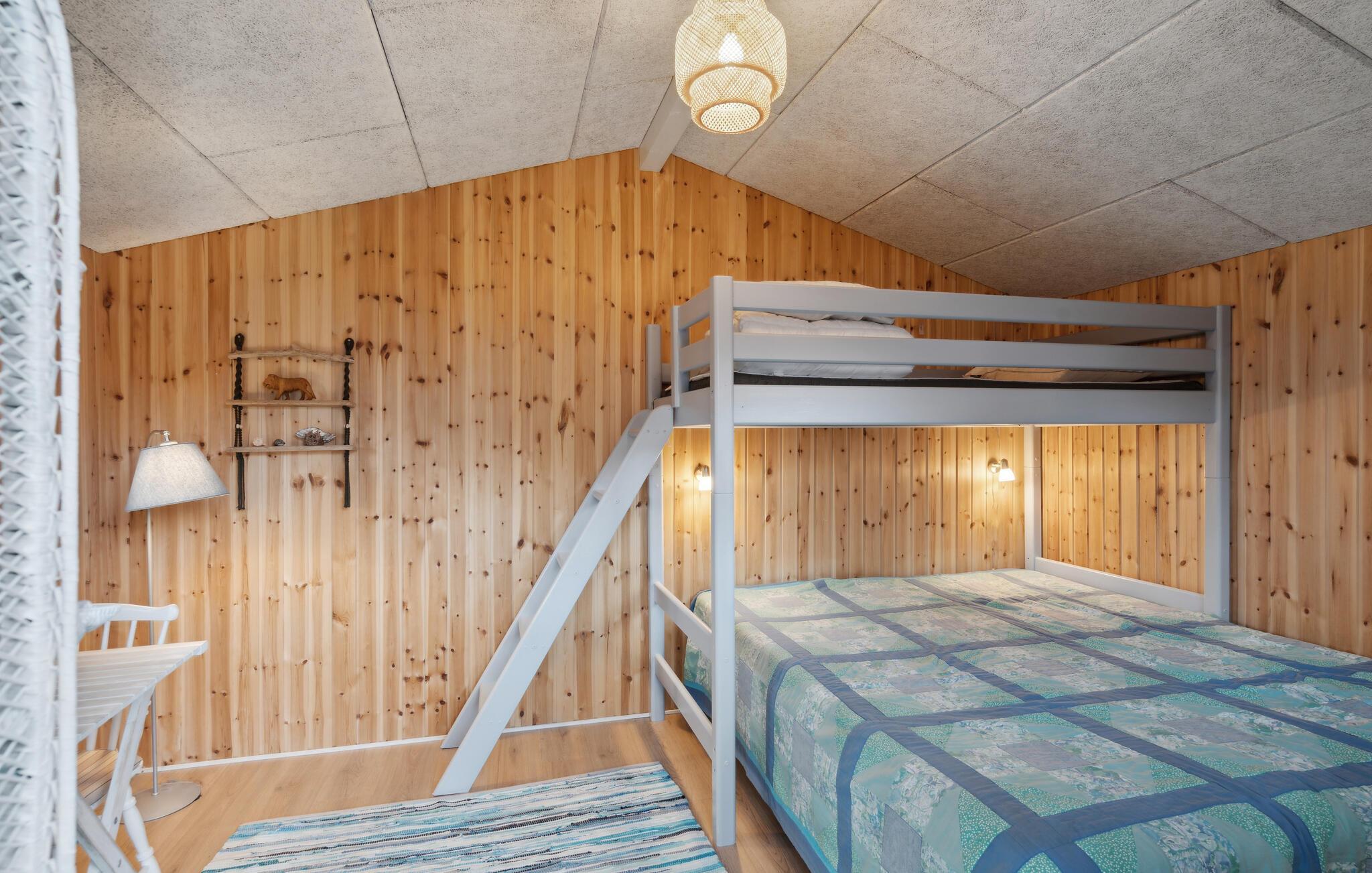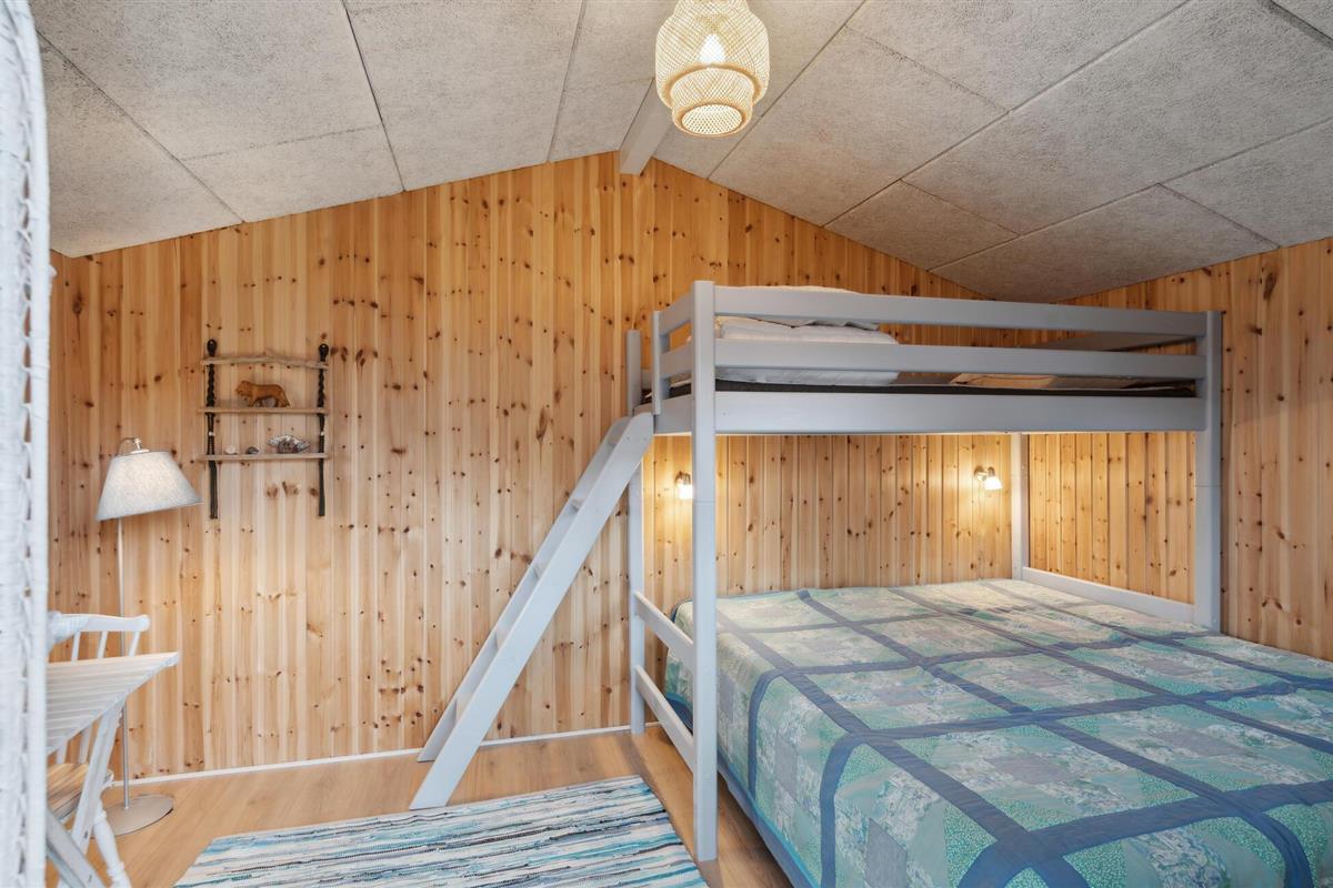 Slaapkamer 14m2 (nr. 1) - 2 Slaapplaatsen. (2-persoonsbed(den)). 1 Slaapplaatsen. (Stapelbed).