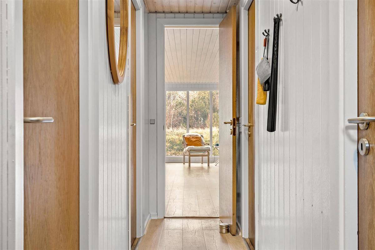 De rustige heide nodigt uit tot wandelen en fietsen, terwijl het strand van Søndervig op slechts een klein eindje rijden ligt en zwemplezier biedt voor het hele gezin. Verken het levendige vakantieoord Søndervig met restaurants, winkels en het beroemde zandsculpturenfestival. Ringkøbing Fjord met zijn watersportfaciliteiten ligt ook binnen handbereik. Natuur, ontspanning en activiteiten - hier is voor elk wat wils.