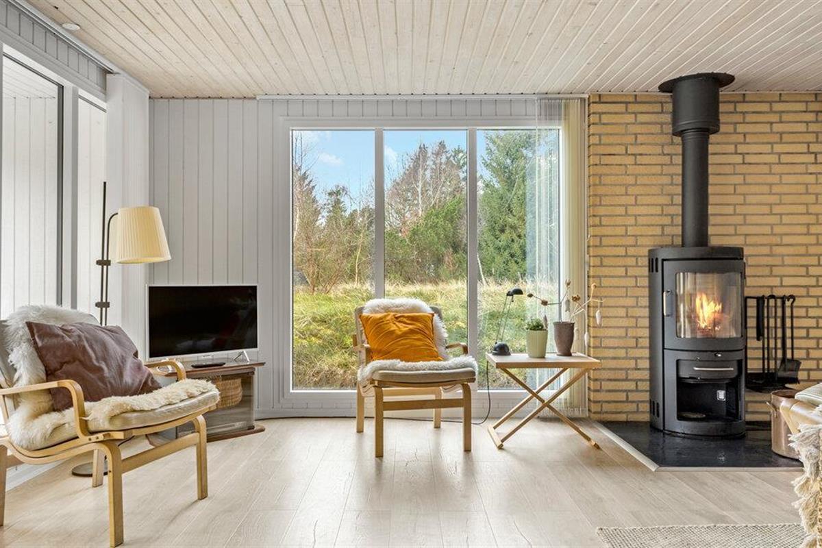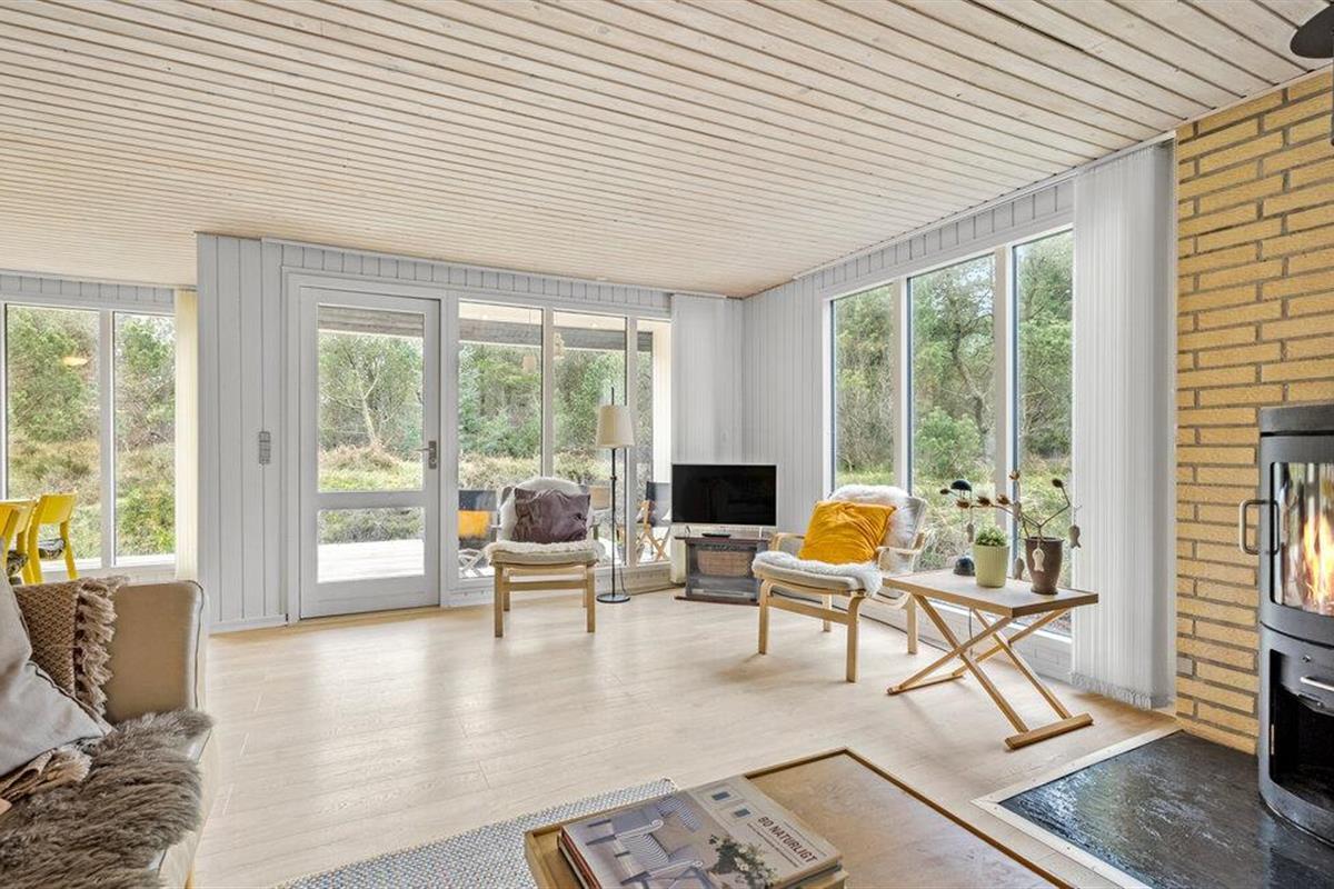 Ontspan in dit lichte vakantiehuis met houtkachel, twee terrassen en prachtig uitzicht op de natuur in Lodbjerg Hede.