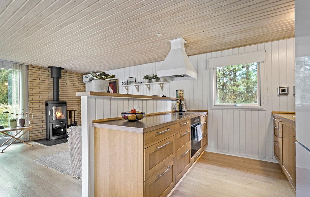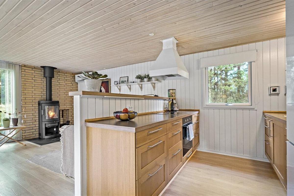 Dit lichte en uitnodigende huis in Lodbjerg Hede biedt je alles wat je nodig hebt voor een geslaagde vakantie. De lichte woonkamer met ramen van vloer tot plafond creëert een verbinding met de omliggende natuur en nodigt uit om te blijven hangen. De houtkachel houdt je knus op koelere dagen terwijl je geliefden voor je koken in de keuken. Geniet van je ochtendkoffie of een zonsondergang op een van de twee terrassen, die de perfecte buitenruimte bieden voor elk moment van de dag. Dit huis is ideaal voor gezinnen die op zoek zijn naar comfort en ontspanning.