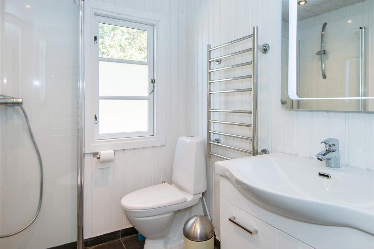 Zusätzlich zu den zwei Badezimmern, von denen eines auch über eine Sauna verfügt, gibt es vier Schlafzimmer im Haus: drei davon mit einem Doppelbett, das vierte mit einem Etagenbett.