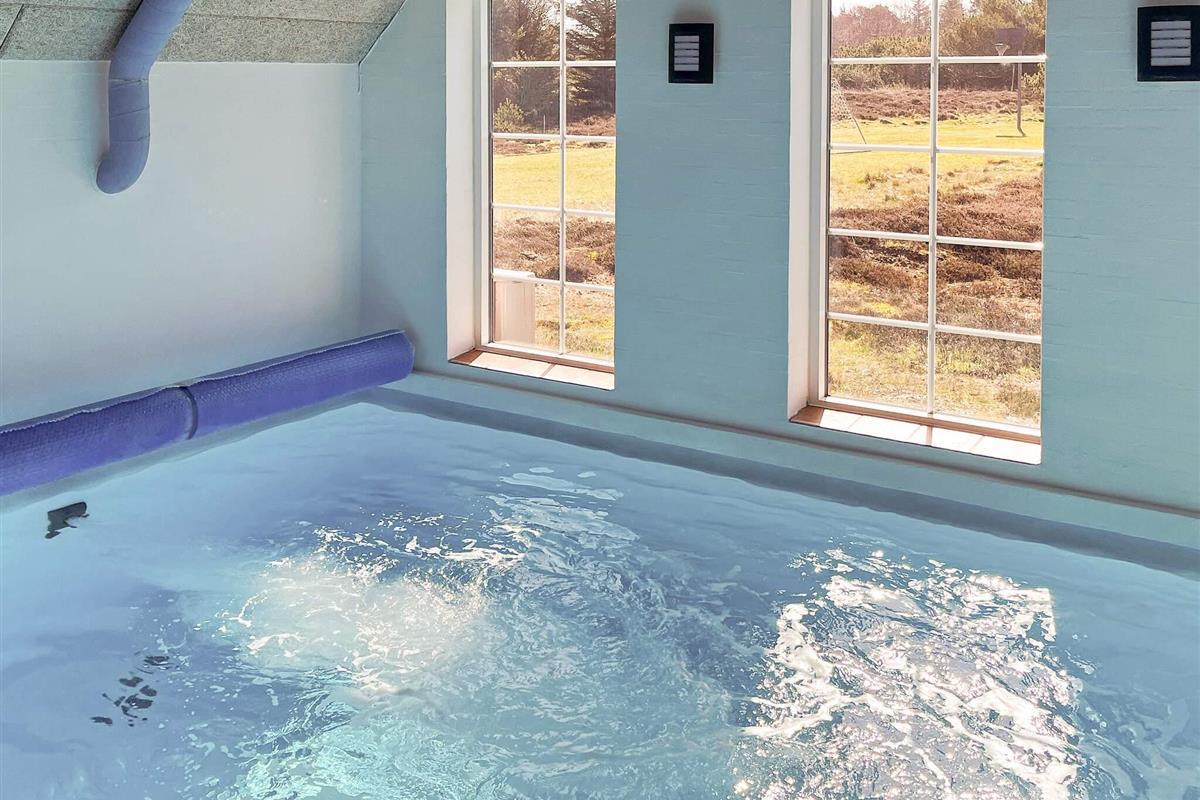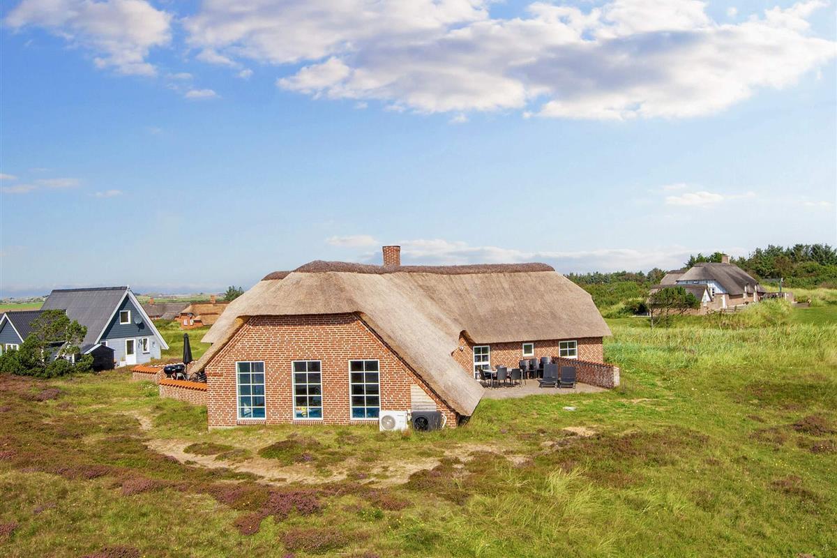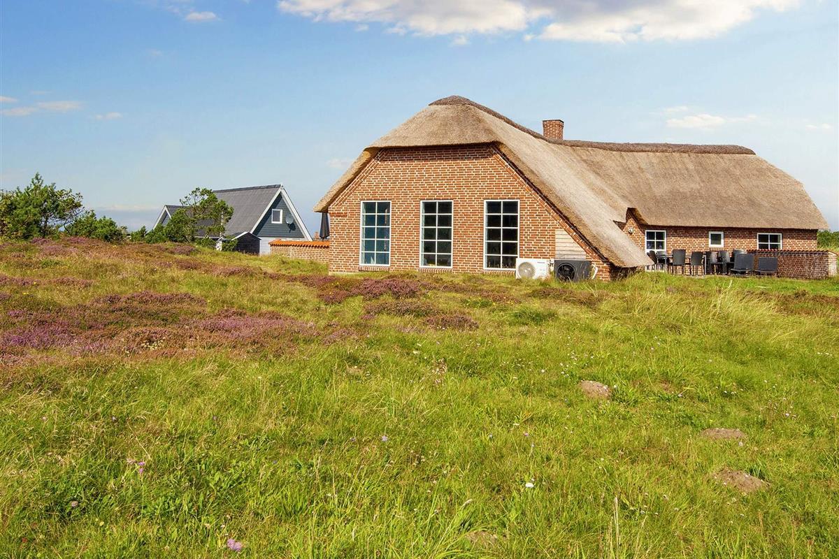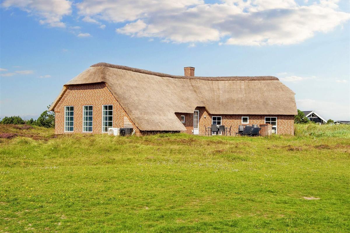 Inmitten der großartigen Heidelandschaft von Lodbjerg Hede liegt auf einem 2.700 m2 großen Naturgrundstück dieses gut ausgestattete, reetgedeckte Ferienhaus für bis zu 12 Personen. Im Haus stehen für den Badespaß mit der Familie ein Swimmingpool, ein Whirlpool sowie eine Sauna zur Verfügung.