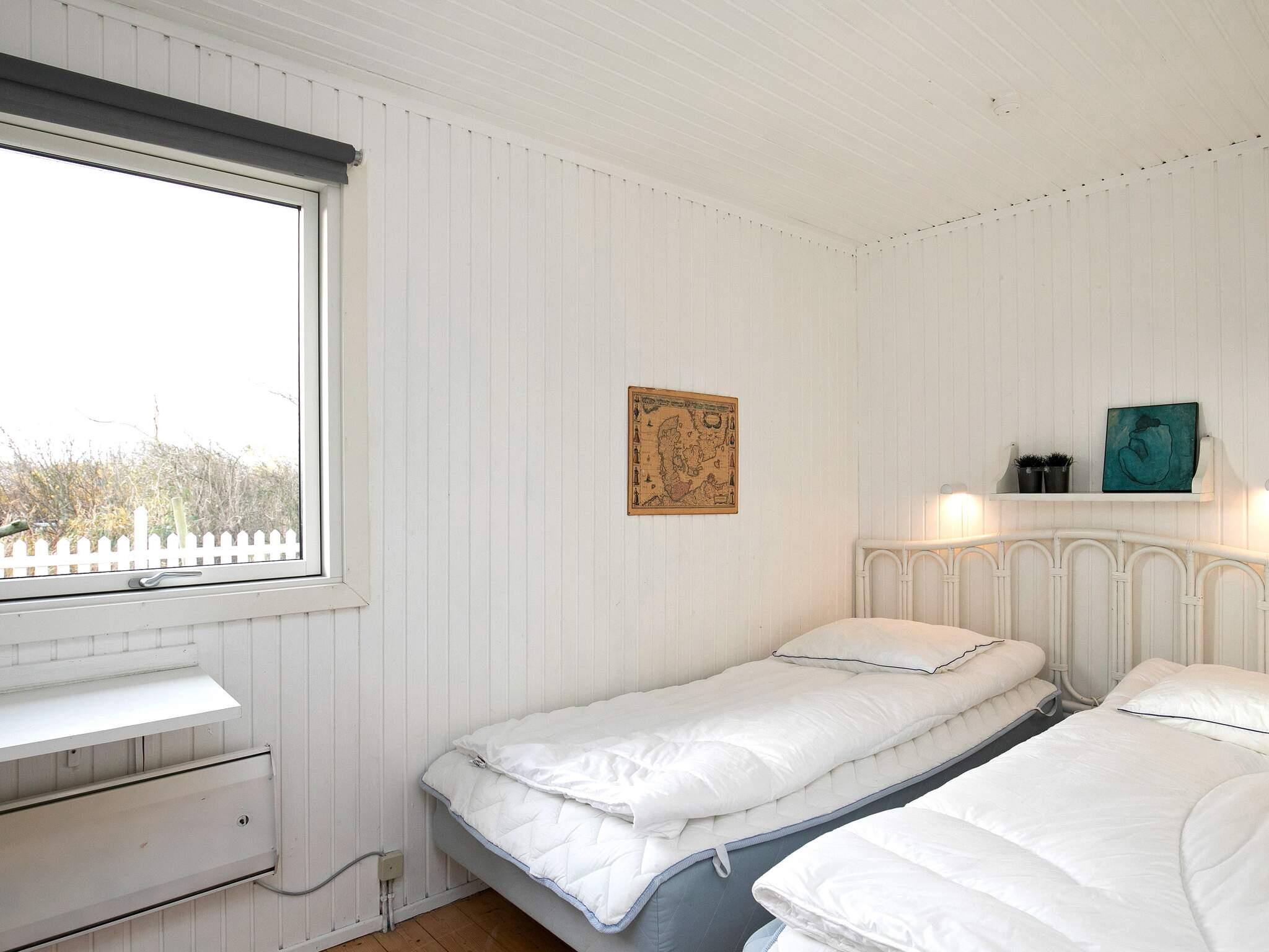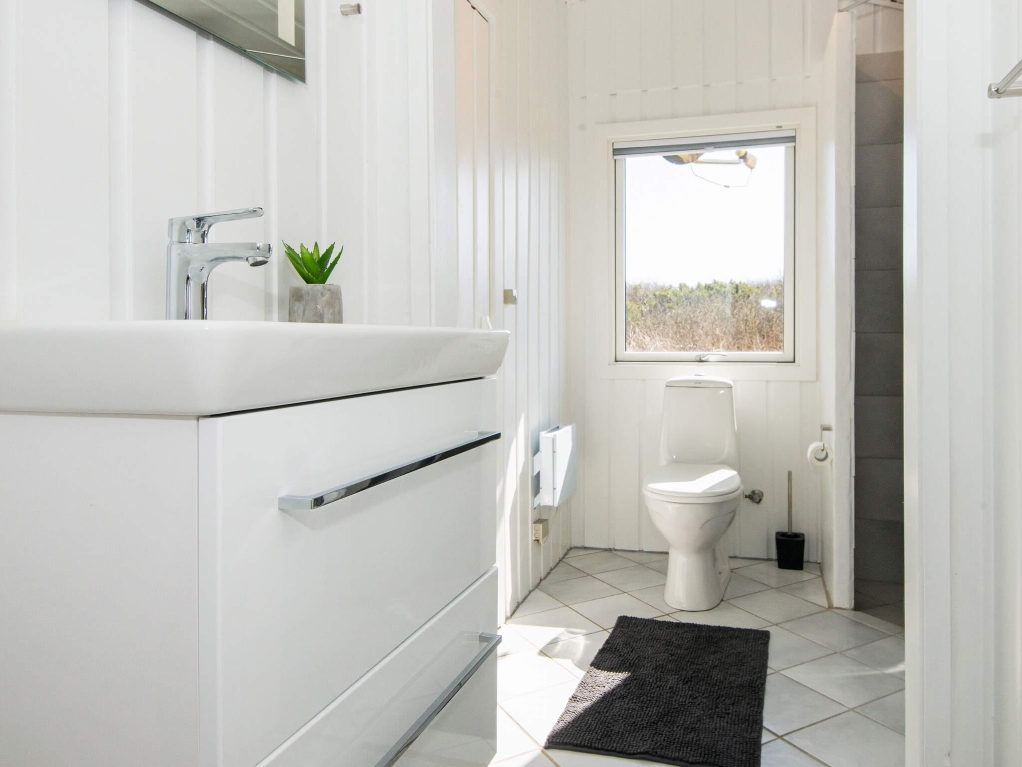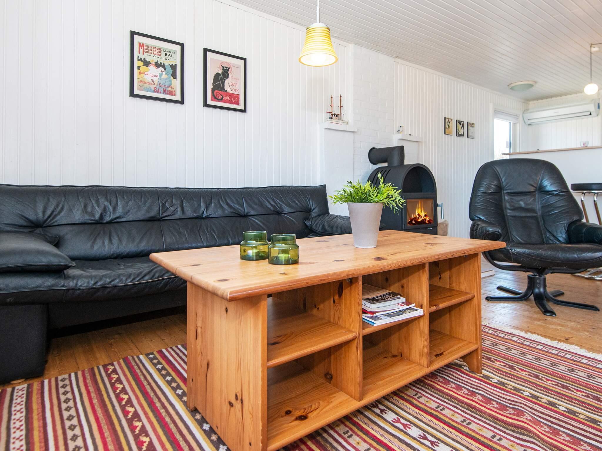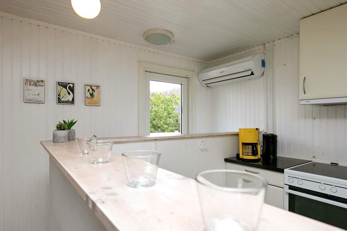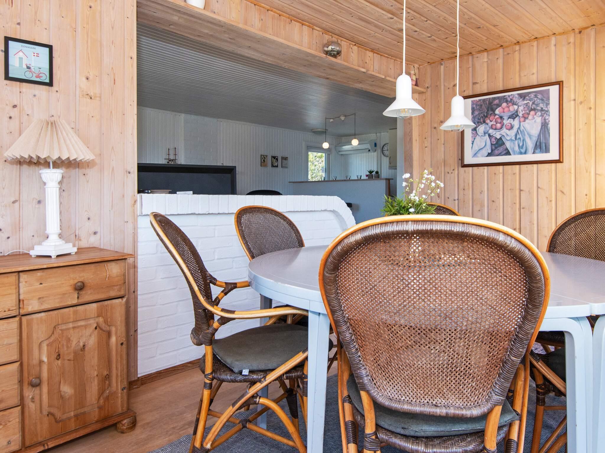 Ferienhaus in leicht erhöhter Lage und mit schönem Ausblick zur Dünenlandschaft ringsum. Liegt auf einem 2.000 m² großen Naturgrundstück in einem Ferienhausgebiet, in der Nähe vom Nordseestrand, Angelsee, Golfplatz und dem Ferienort Søndervig.