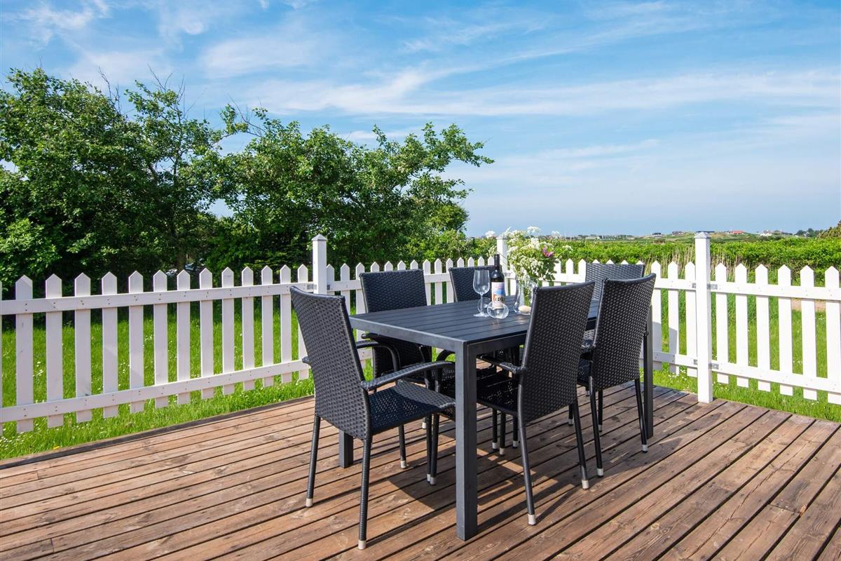 Das Ferienhaus präsentier sich hell und freundlich eingerichtet und stellt u.a. eine leicht abgesenkte, gemütliche Gartenstube mit Sitzplatz zur Verfügung. Im Außenbereich findet man eine große Holzterrasse vor, die zu jeder Tageszeit ein sonniges Plätzchen an der frischen Luft bietet.