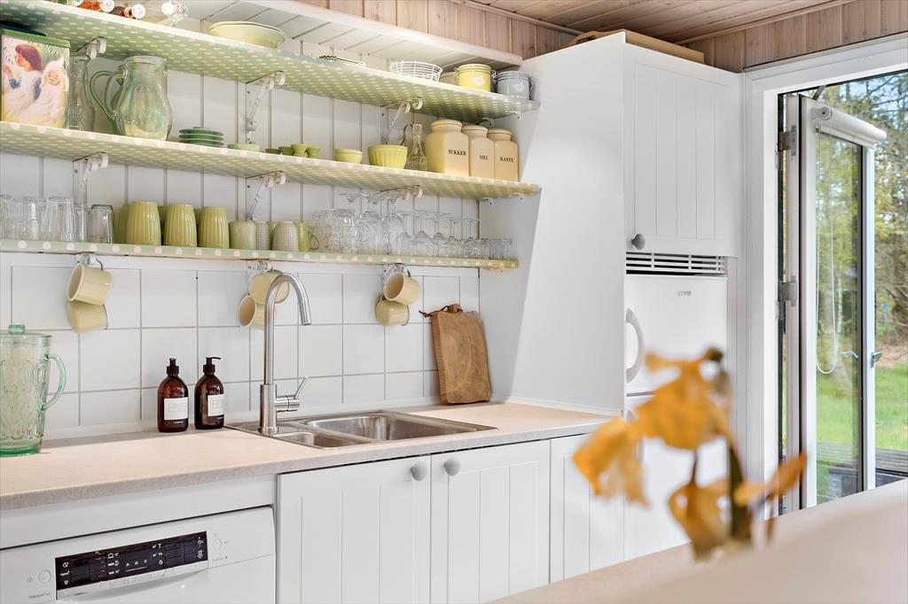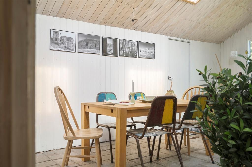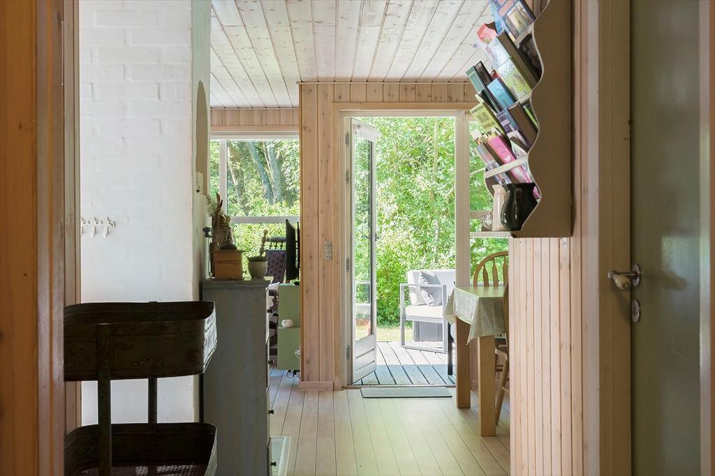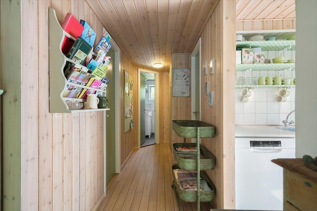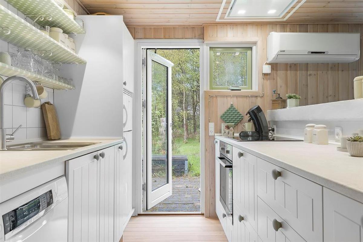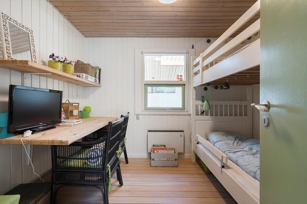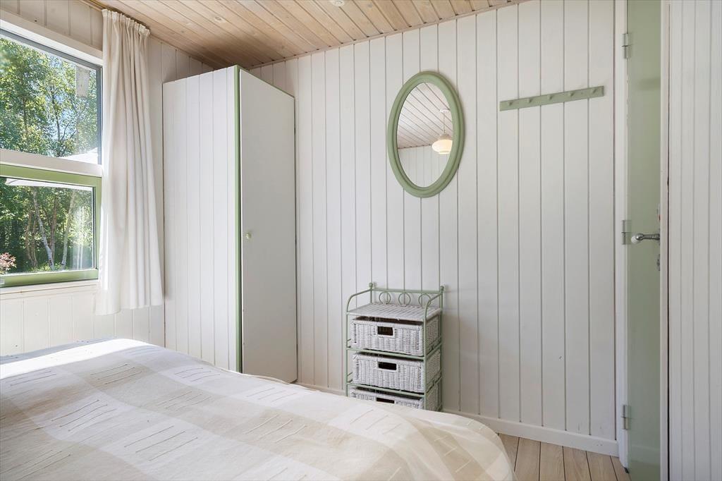 Das 100 m² große Holzferienhaus aus dem Jahr 1971 wurde zuletzt 2022 einer Renovierung unterzogen. Die Renovierung wurde mit viel Liebe durchgeführt. Beachten Sie in diesem Zusammenhang beispielsweise den schönen Grünton, der sich in allen Räumlichkeiten wiederfindet. Insgesamt besticht das Haus mit einer warmen und einladenden Atmosphäre. Neben dem Kaminofen im Wohnraum und der Sauna im Badezimmer sorgt auch die heimelige Einrichtung mit gemütlichen Möbelstücken für ein Maximum an Ferienhausstimmung. Der Wohnraum umfasst ein Sofa und ein Tagesbett, das sich gut für ein Nickerchen oder eine Lesestunde anbietet. Für Unterhaltung sorgt zudem ein Flachbild-TV. Ihre in der offenen Küche zubereiten Mahlzeiten genießen Sie rund um den Esstisch oder auch im Wintergarten, in dem im Anschluss auch gleich der Tischkicker lockt. Alternativ können Sie sich auch in einen der Schlafräume zurückziehen und dort die Wii-Konsole in Betrieb nehmen. Zwei der insgesamt drei Schlafräume beinhalten je ein Doppelbett. Im dritten Raum steht ein Etagenbett mit 90 x 200 Zentimeter großen Matratzen für Sie bereit.
