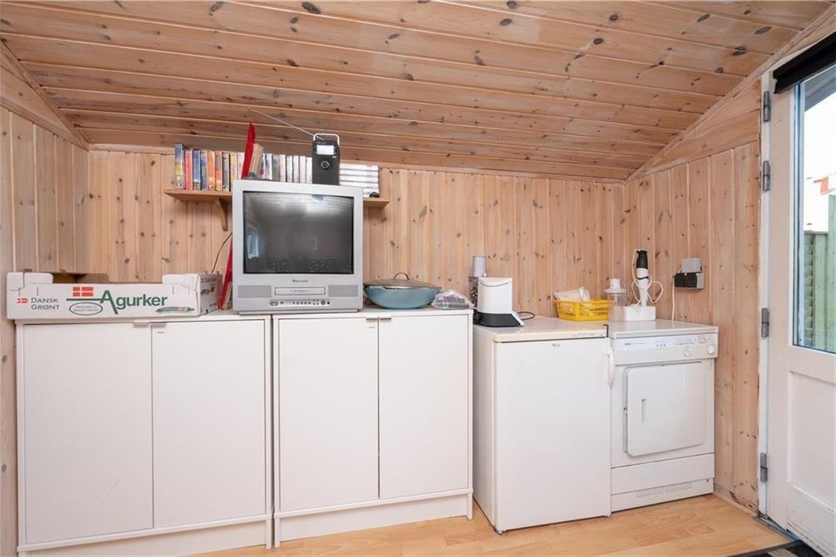 Das Urlaubsdomizil begrüßt Sie mit einer schönen Atmosphäre und einer gemütlichen Einrichtung. Unmittelbar nach dem ersten Betreten spüren Sie, wie sich bei Ihnen die entspannte Urlaubsstimmung einstellt. Zur Wohnfläche zählen zwei gute Schlafräume und ein ansprechendes Badezimmer mit einer Duschnische und einer Waschmaschine. Im Wohnraum werden Sie zahllose Stunden im Kreise Ihrer Lieben verbringen. Der schöne Aufenthaltsraum beinhaltet eine offene Küche, einen Esstisch, einen Kaminofen, eine komfortable Polstersitzgruppe und sogar eine gemütliche Schlafnische. Letztgenannte eignet sich hervorragend für eine ruhige Stunde mit einem spannenden Buch und für ein Nickerchen nach einer guten Mahlzeit. Die Schlafnische kann auch zum Übernachten genutzt werden. Weitere Schlafmöglichkeiten bietet das isolierte Nebengebäude, das mit einer Elektroheizung beheizbar ist. Im Nebengebäude steht zudem ein Wäschetrockner für Sie bereit.