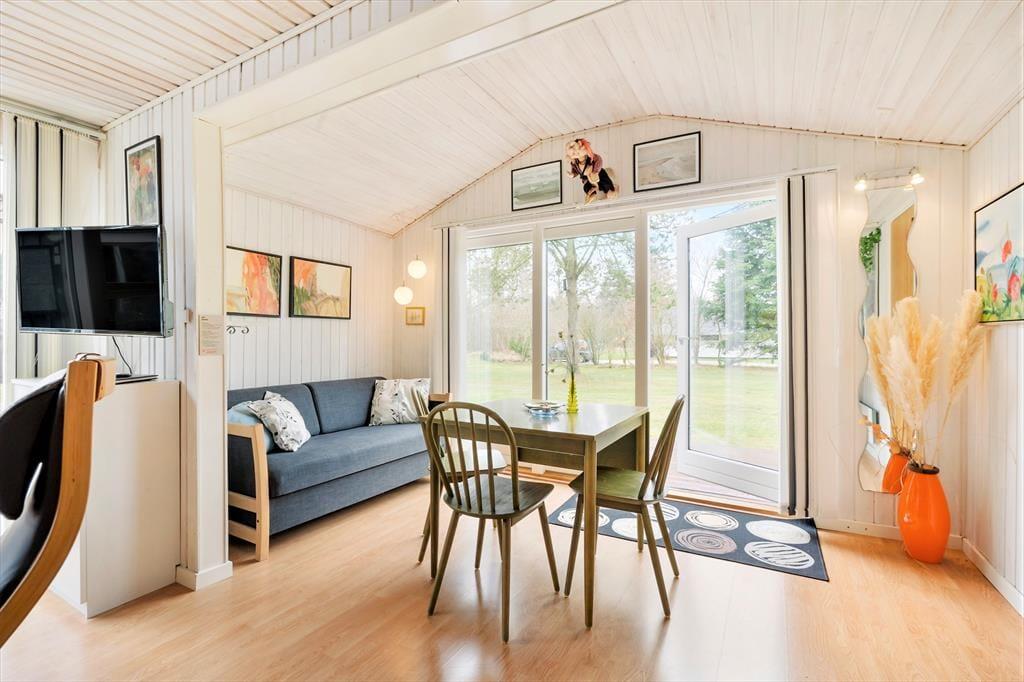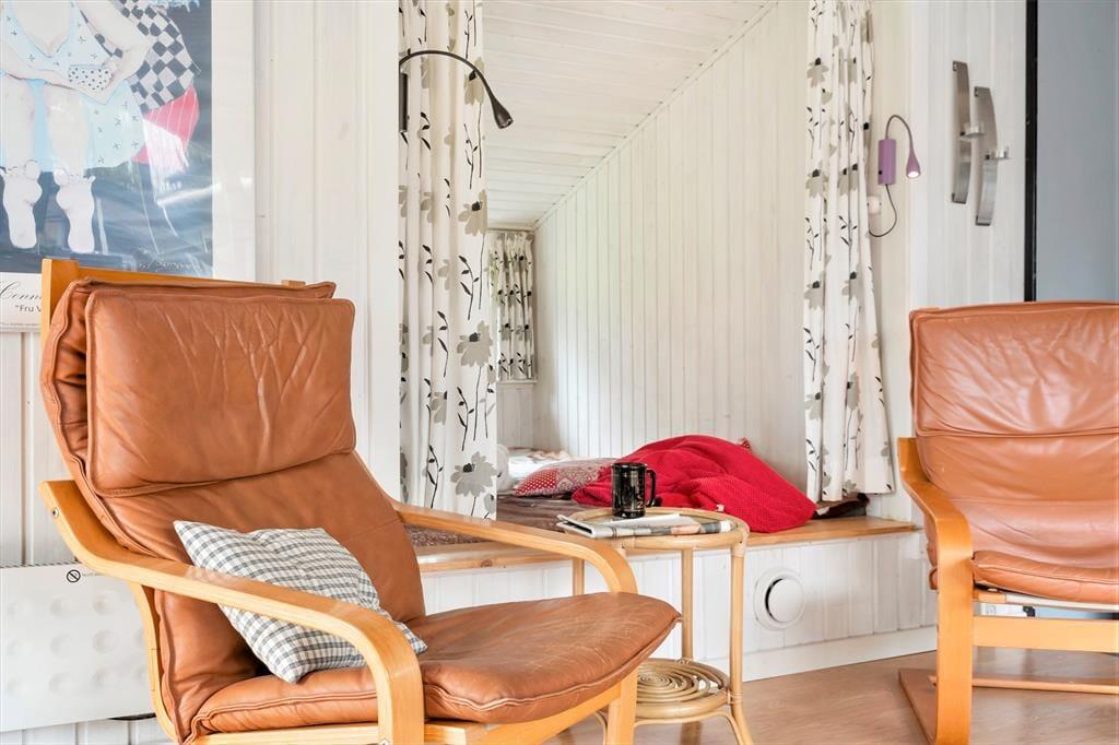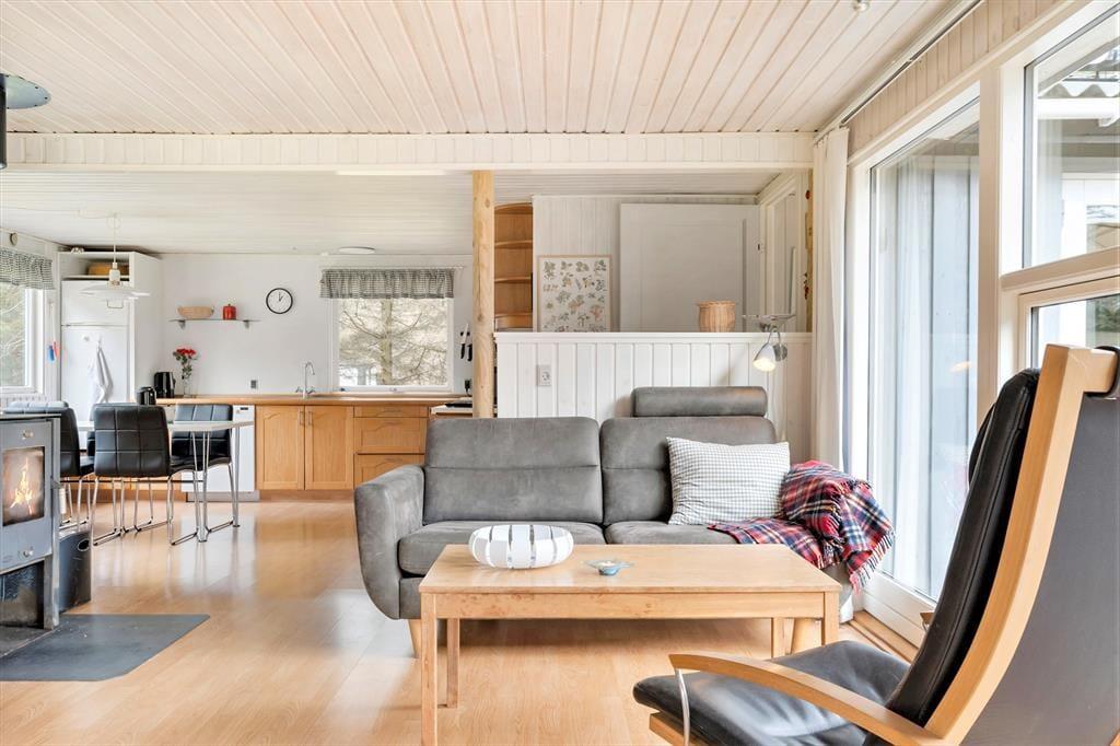 Das Ferienhaus ist 80 m² groß und bietet eine gelungene Raumaufteilung mit drei guten Schlafzimmern und einem praktischen Badezimmer mit Dusche, Waschmaschine und Wäschetrockner, sodass man problemlos sechs Personen unterbringen kann. Die meiste Zeit des Tages werden Sie wahrscheinlich im Aufenthaltsraum verbringen, der aus einer offenen Küche und einem Wohnzimmer besteht. Hier können Sie lange Stunden bei gutem Essen und Gesprächen am Esstisch verbringen oder sich mit spannenden Büchern, Strickzeug oder Ihren Lieblingssendungen auf dem Fernseher in die Sofaecke zurückziehen. In der Nische am Kaminofen ist Platz für ein Nachmittagsschläfchen, und eine weitere Sofaecke bietet der ganzen Familie viel Platz zum Entspannen.