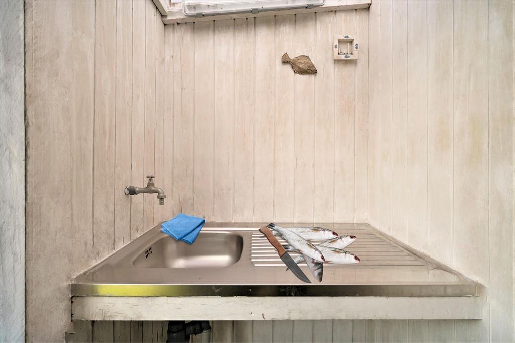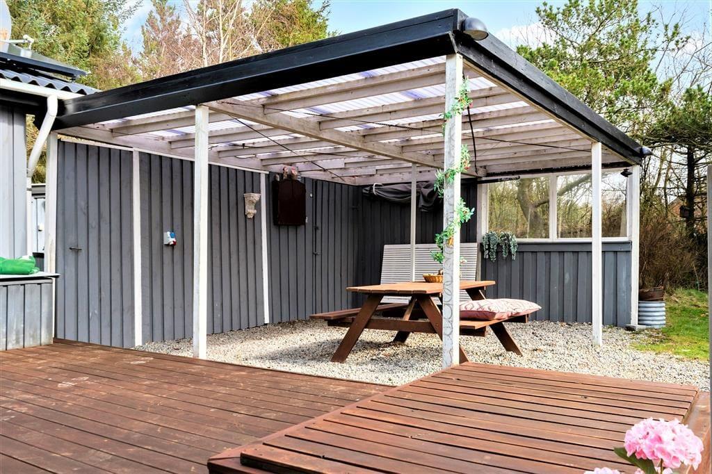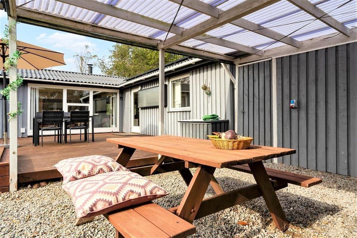 Der Außenbereich ist der ideale Ort, um sich in der Sonne zu entspannen oder es sich abends bei frisch Gegrilltem und einem kühlen Getränk gemütlich zu machen. Die Terrasse ist groß und sonnig und auf der großen Wiese kann man sich beim Fangen oder Fußballspielen so richtig austoben. Außerdem gibt es einen Sandkasten für die Kleinen, ein Carport für das Auto und für die Angler einen Fischwaschplatz im Freien und eine 100-Liter-Tiefkühltruhe im Haus. Der ganze Ferienspaß findet dank der grünen Bepflanzung in einem gemütlichen und abgeschirmten Rahmen statt.