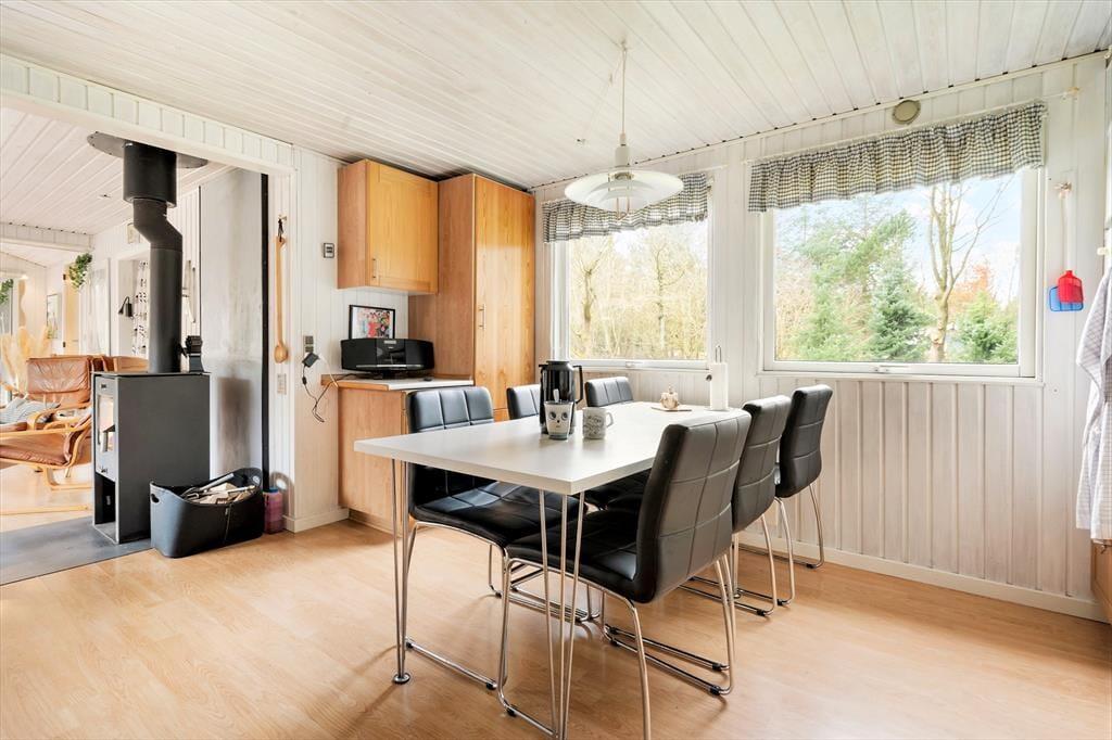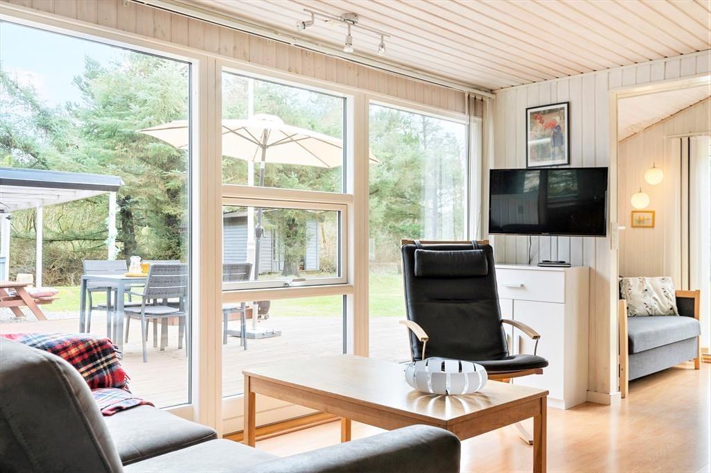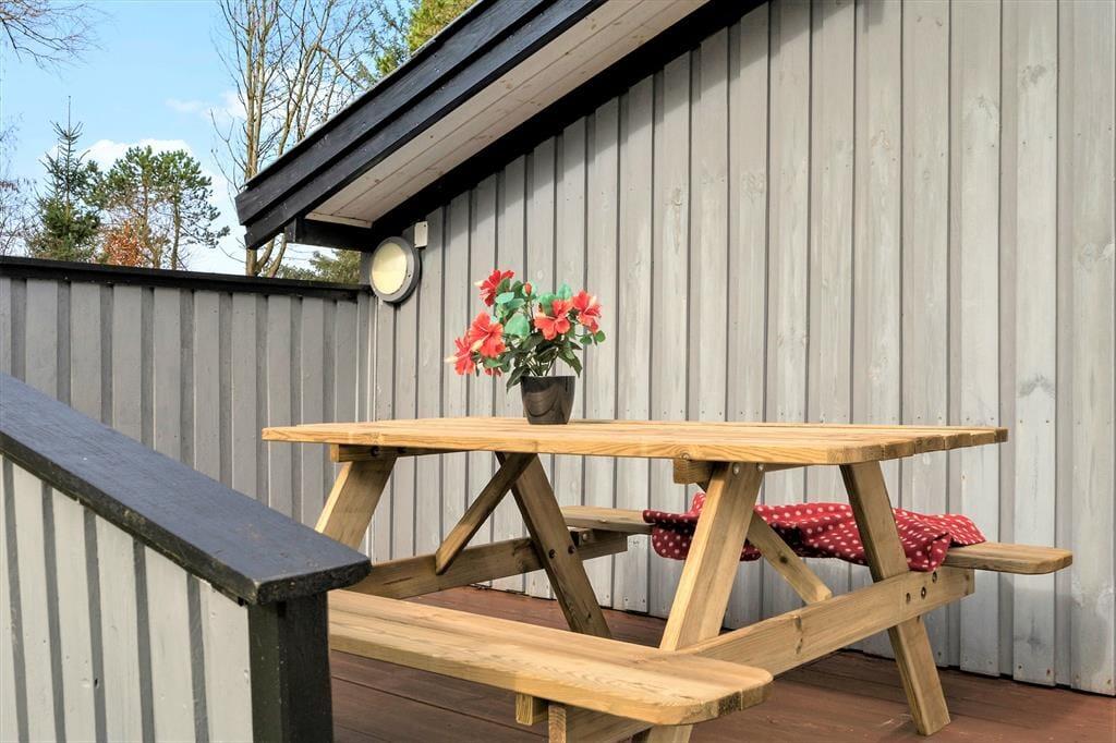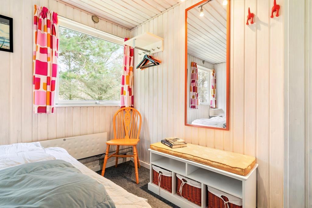 Risbjergvej 12 liegt mitten im ruhigen und familienfreundlichen Ferienhausgebiet Lodbjerg Hede. Bäume und andere Grünpflanzen säumen die kleinen Straßen, sodass Sie eine schöne Umgebung für Spaziergänge haben - vielleicht mit dem Hund, der auch im Ferienhaus willkommen ist. Kinder können auf dem nahe gelegenen Spielplatz spielen, und wenn Sie angeln oder Golf spielen möchten, sind der nächste Angelsee und der beliebte Golfplatz Holmsland Klit leicht zu erreichen. Die Nordsee und der nächstgelegene Strand sind nur wenige Kilometer entfernt, und der Ferienort Søndervig ist mit dem Auto oder dem Fahrrad schnell zu erreichen.