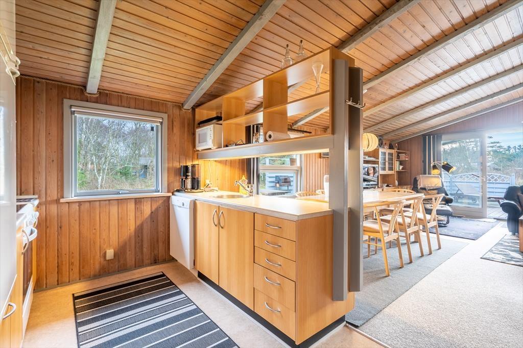 Tritt ein in ein helles und einladendes Holzhaus, in dem du sofort die echte, alte Ferienhausatmosphäre spürst. Hier ist alles auf Ruhe und Gemütlichkeit ausgerichtet – von den sichtbaren Holzbalken bis hin zum knisternden Kamin, der nach einem Tag in der frischen Nordseeluft für wohlige Wärme sorgt. Im Wohnzimmer könnt ihr euch in die Sofaecke kuscheln, ein Kartenspiel spielen oder bei einer Tasse Kakao einfach die Stille genießen, während die Flammen tanzen. Die offene Küche schließt sich harmonisch an den Wohnbereich an und macht das Kochen zu einer gemeinsamen Aktivität, bei der sich der Duft des Abendessens im ganzen Haus ausbreitet. Wenn der Abend hereinbricht, erwarten euch die gemütliche Schlafzimmer – und im kleinen Annex habt ihr zusätzlich Platz und Privatsphäre, perfekt für alle, die sich nach einem langen Ferientag etwas zurückziehen möchten.