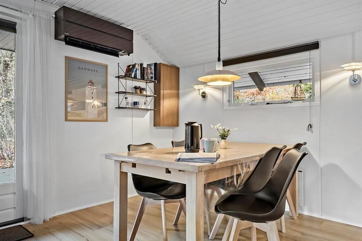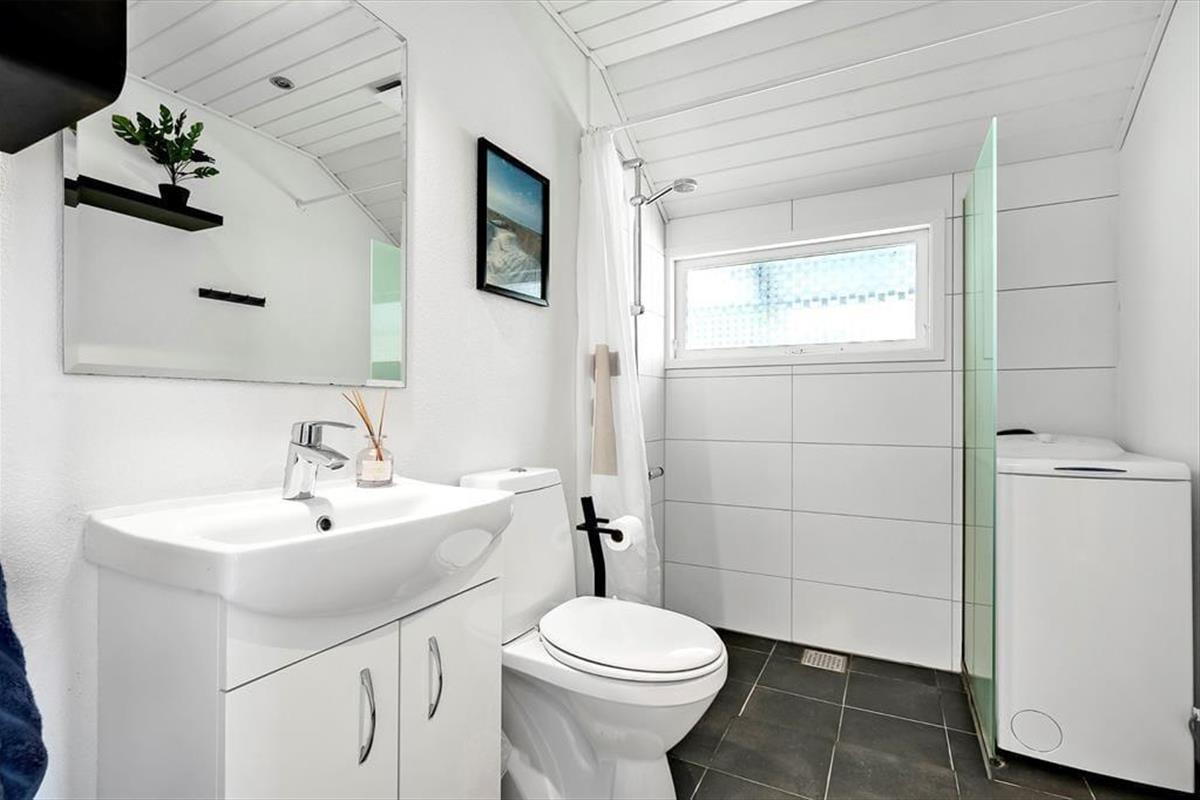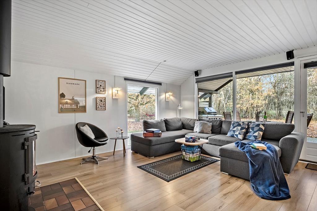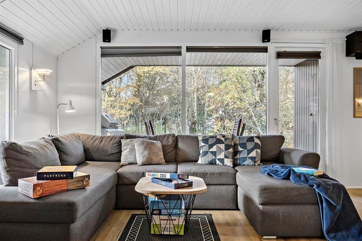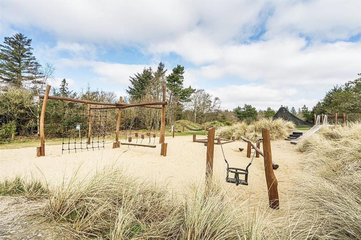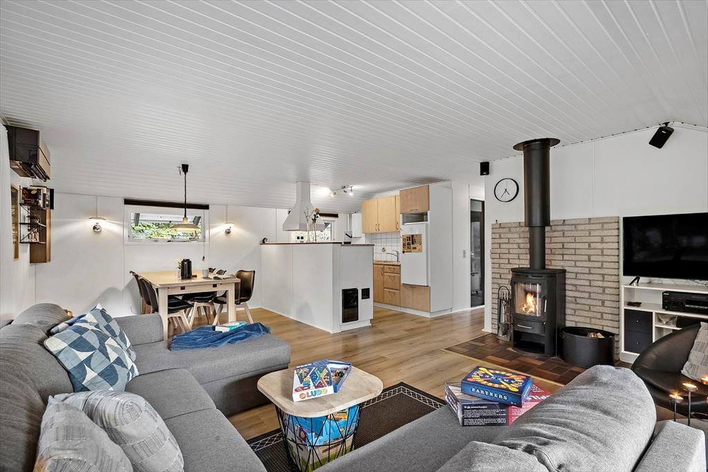 Het huis staat op een ruim perceel van 2200 m² met een schommel en een open terras met meubilair, perfect voor ontspanning buiten. Hoewel het strand op 2000 meter ligt, zijn de golfbaan en fjord dichtbij, wat diverse recreatiemogelijkheden biedt. Verder is gratis Wi-Fi beschikbaar en is er elektrische verwarming en een warmtepomp aanwezig.