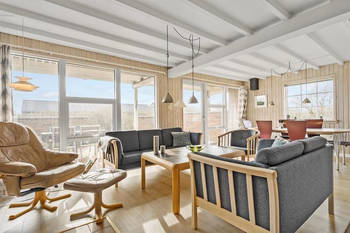 Das Ferienhaus befindet sich in der Sackgasse Rørsanger. Westlich des Hauses erstreckt sich weite, offene Landschaft. Die Atmosphäre ist angenehm ruhig und friedvoll. Mit Ihren Kindern können Sie zum nächstgelegenen Spielplatz spazieren und wenn Sie Ihre Golfform beibehalten möchten, ist der Golfclub Holmsland Klit ebenfalss zu fuss erreichbar. Im Badeort Søndervig treffen Sie auf eine gute Auswahl an Lokalitäten und Geschäften. Das riesige Tropenbadeland bietet das gesamte Jahr hindurch bestes Badevergnügen für die gesamte Familie. Sie wohnen so nah an der Westküste, dass Sie zu jeder Zeit zu einem schönen Strandspaziergang oder einem erfrischenden Bad in den Nordseewellen aufbrechen können. Beste Angelmöglichkeiten und Surfbedingungen bietet der ebenfalls nahegelegene Ringkøbing Fjord. Ans Herz legen möchten wir Ihnen einen Ausflug in die zügig per Pkw erreichbare alte Handelsstadt Ringkøbing. Spannend und interessant für Groß und Klein präsentiert sich das bei Ringkøbing gelegene, moderne Erlebniscenter Naturkraft.