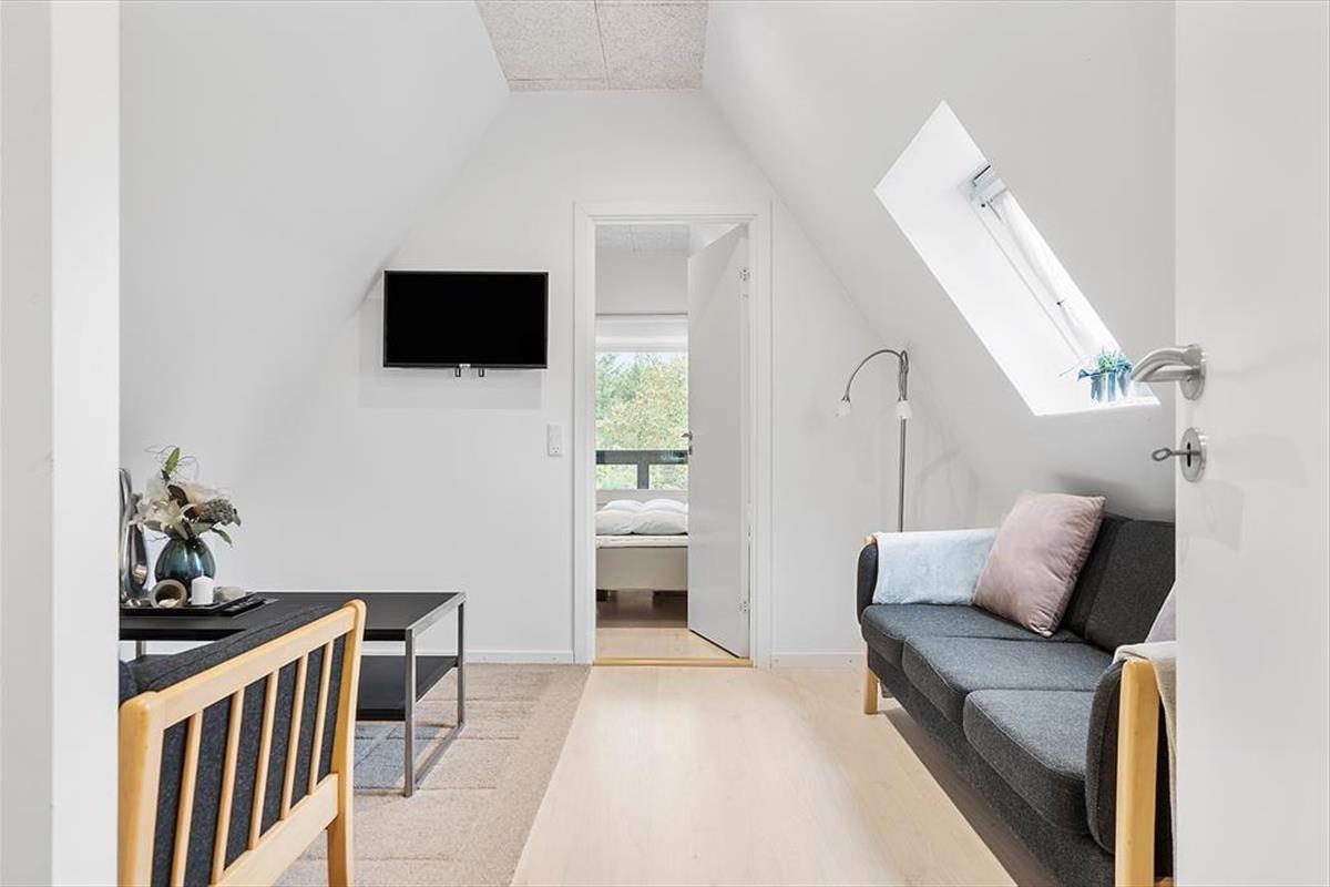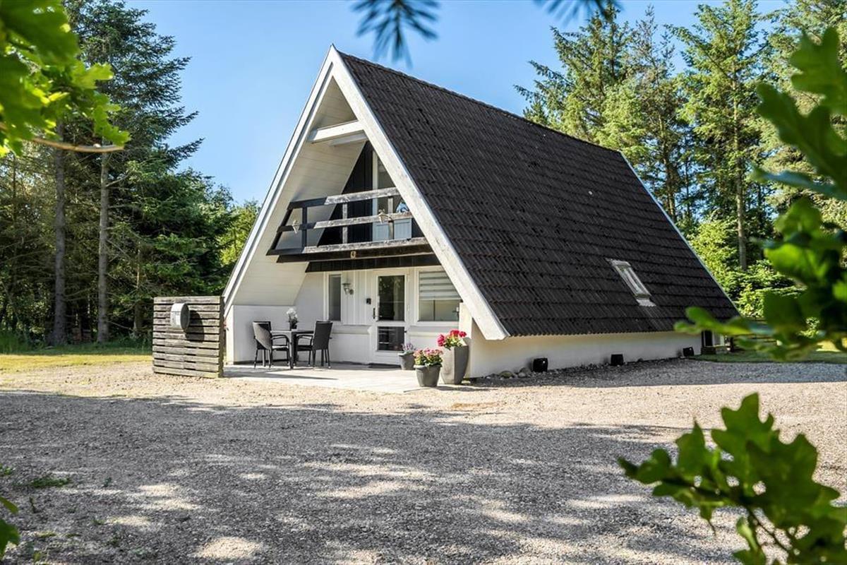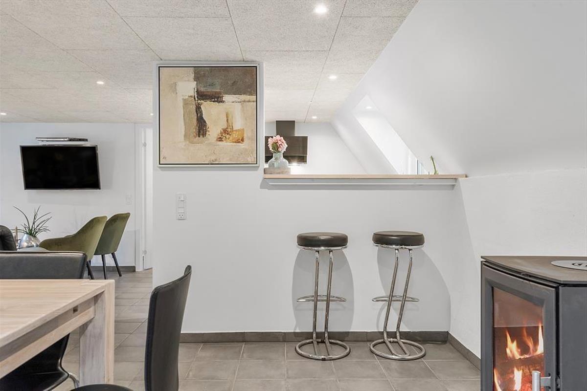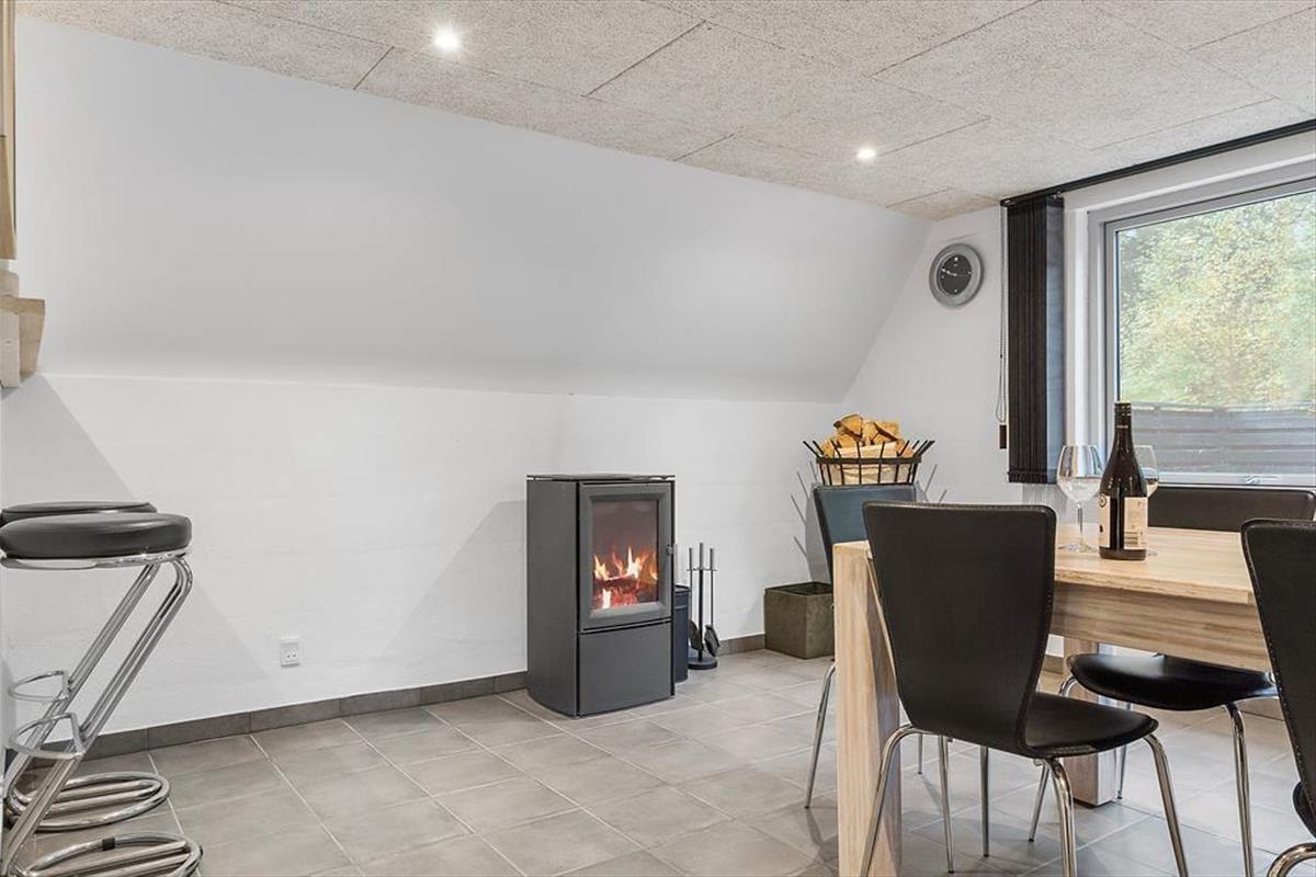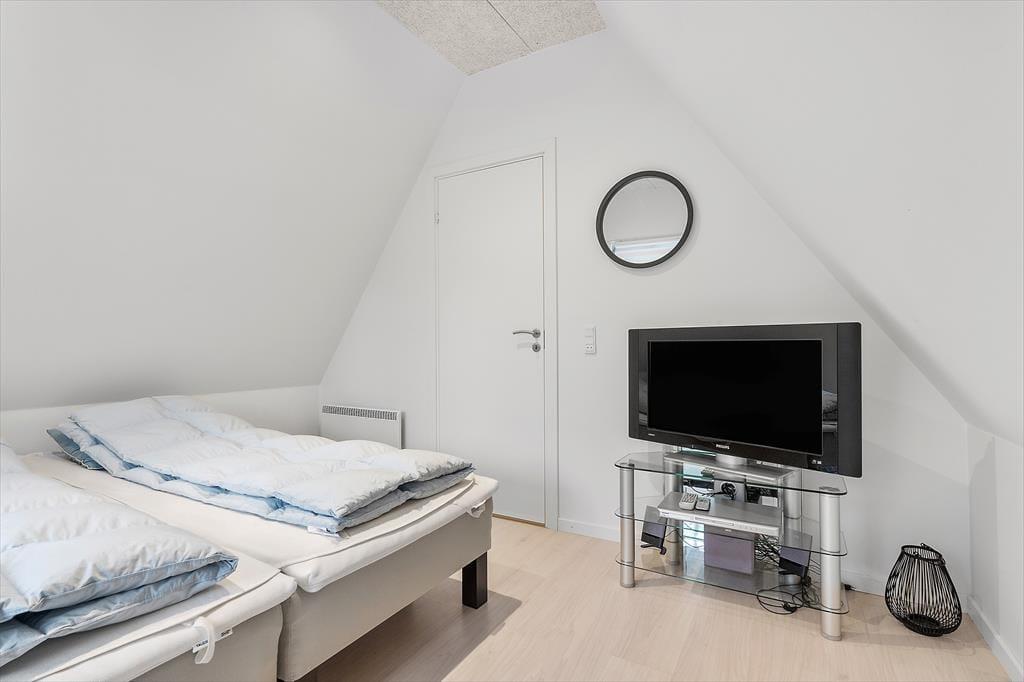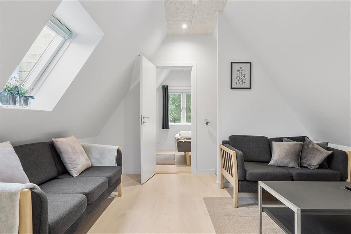 Wie bei einem typischen A-Haus reicht das Dach fast bis zum Boden und im Haus finden Sie zwei Ebenen, sodass Ihnen insgesamt 100 m2 zur Verfügung stehen. Die schrägen Wände sind ein charmantes Detail, und auch der Holzofen im Wohnzimmer ist eines der schönen Details, die für eine gemütliche Atmosphäre sorgen. Das Haus wurde 2021 renoviert, sodass die Räume hell und einladend wirken – nicht zuletzt das schöne Wohnzimmer, in dem Wohnzimmer und Küche vereint sind. Wenn Sie in der modernen Küche im Zweifel sind, was das Essen angeht, haben Sie guten Kontakt zum Sofabereich, wenn Sie sich mit dem Rest der Gesellschaft unterhalten möchten. Der Esstisch hat eine schöne Position in der Nähe des großen, nach Süden, ausgerichteten Fensters. Im Erdgeschoss befinden sich ein Duschbad und ein Schlafzimmer. Wenn Sie die Treppe hinaufgehen, finden Sie ein schönes Wohnzimmer und zwei weitere Schlafzimmer.