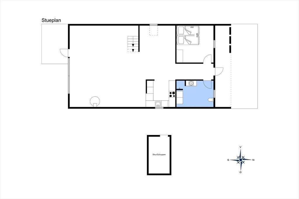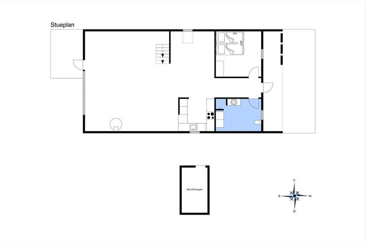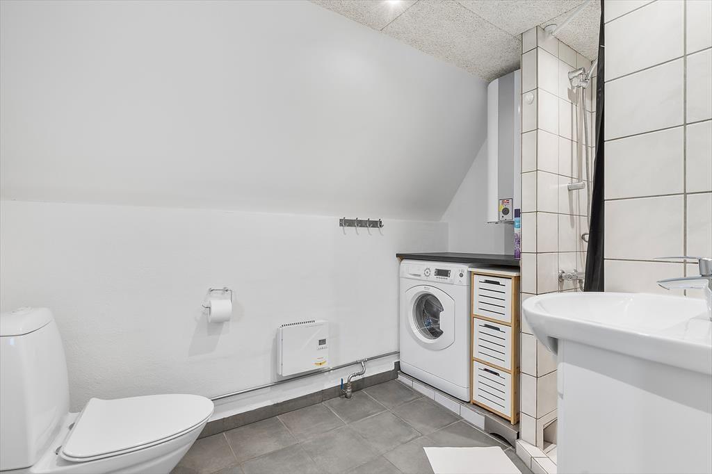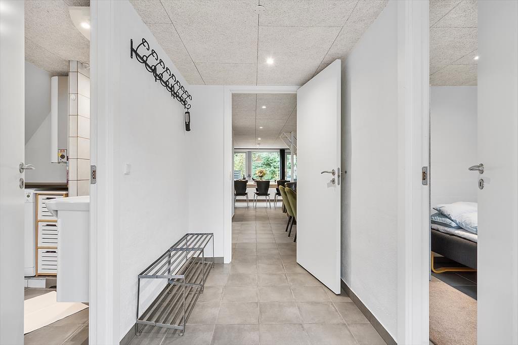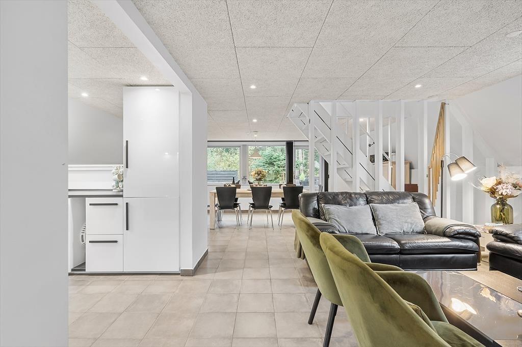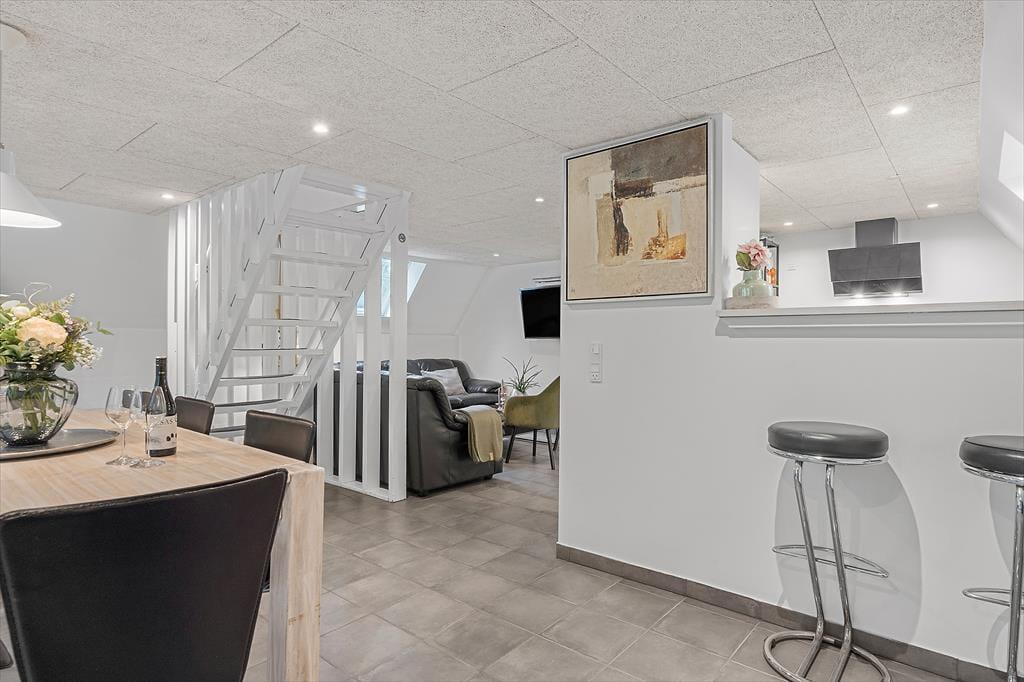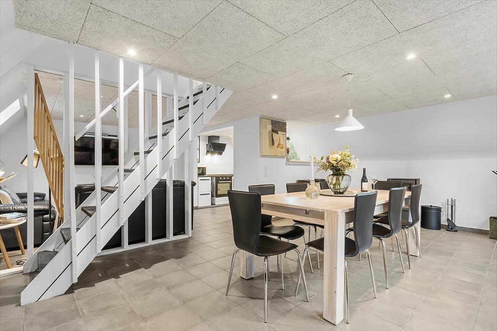 Wie bei einem typischen A-Haus reicht das Dach fast bis zum Boden und im Haus finden Sie zwei Ebenen, sodass Ihnen insgesamt 100 m2 zur Verfügung stehen. Die schrägen Wände sind ein charmantes Detail, und auch der Holzofen im Wohnzimmer ist eines der schönen Details, die für eine gemütliche Atmosphäre sorgen. Das Haus wurde 2021 renoviert, sodass die Räume hell und einladend wirken – nicht zuletzt das schöne Wohnzimmer, in dem Wohnzimmer und Küche vereint sind. Wenn Sie in der modernen Küche im Zweifel sind, was das Essen angeht, haben Sie guten Kontakt zum Sofabereich, wenn Sie sich mit dem Rest der Gesellschaft unterhalten möchten. Der Esstisch hat eine schöne Position in der Nähe des großen, nach Süden, ausgerichteten Fensters. Im Erdgeschoss befinden sich ein Duschbad und ein Schlafzimmer. Wenn Sie die Treppe hinaufgehen, finden Sie ein schönes Wohnzimmer und zwei weitere Schlafzimmer.