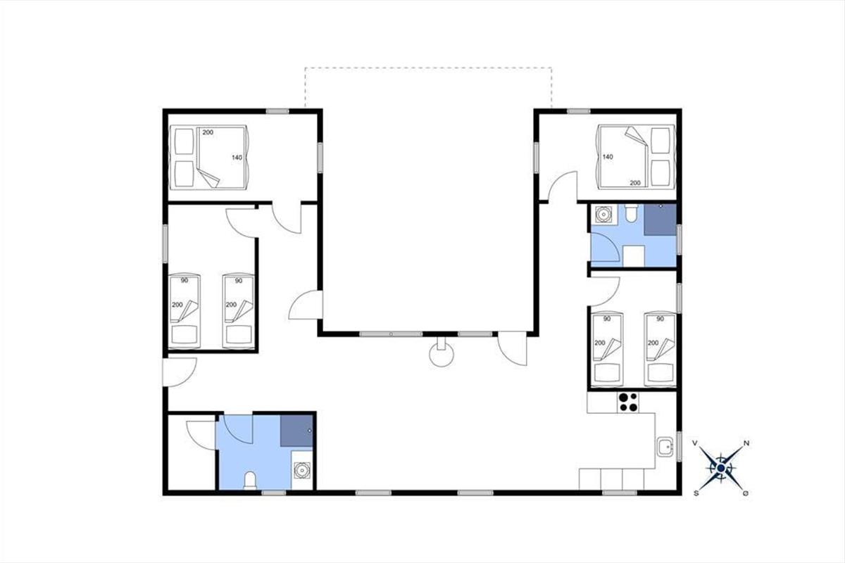 Auf einem großen, grünen Grundstück im gemütlichen Ferienhausgebiet von Lodbjerg Hede heißt Sie dieses schöne Ferienhaus willkommen. Der Grundriss bietet unter anderem vier Schlafzimmer und zwei Badezimmer, sodass Sie drinnen zu acht Personen sein können – wenn Sie nicht gerade das Leben auf der Terrasse oder einen Ausflug nach Søndervig und an die Nordsee genießen.