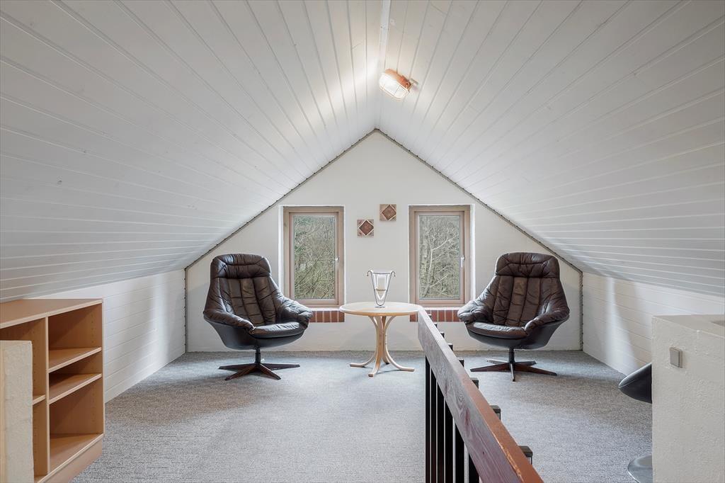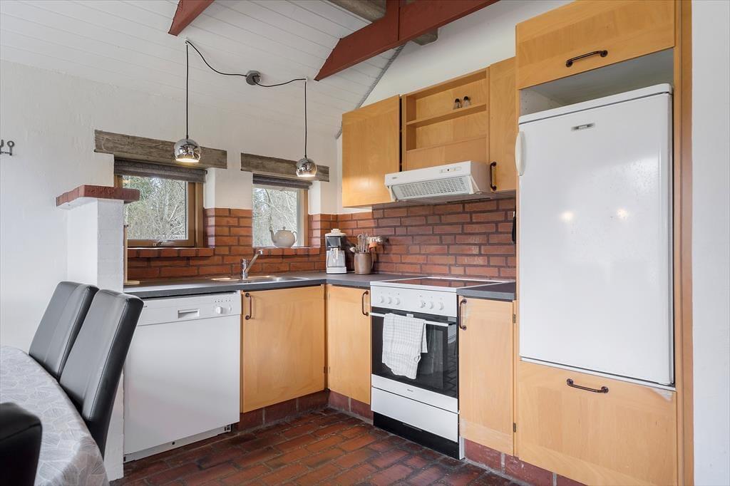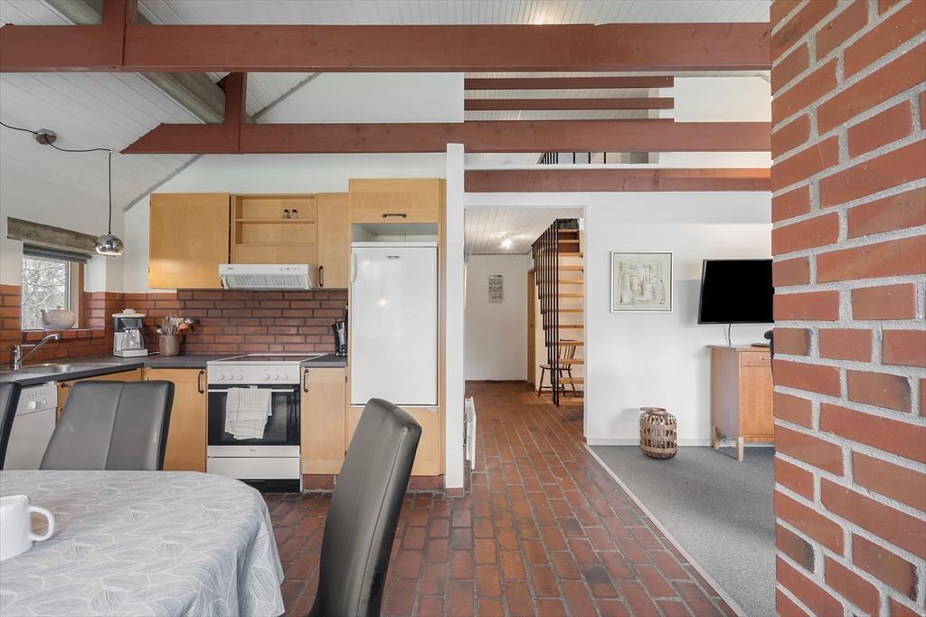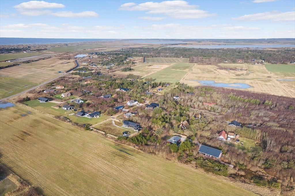 Das Ferienhaus liegt in der Ahornalle 16 in Lodberg Hede. Zum Strand sind es nur zwei Kilometer und Sie gelangen in dreieinhalb Kilometern nach Søndervig. In Søndervig gibt es viele Geschäfte und Freizeitaktivitäten, unter anderem ein großes Freizeitcenter mit Bowling, Fitnessstudio und vielem mehr. Sie können auch Forellen im 750 Meter, vom Haus entfernten Angelsee fangen oder auf dem 1200 Meter entfernten, abwechslungsreichen Golfplatz von Holmsland Klit mit 18 Löchern ein paar Bälle schlagen. Die Gegend Lodberg Hede liegt ruhig und friedlich etwas weiter von der Küste entfernt. Dort gibt es viele Wanderwege und Sie können entweder zu Fuß oder mit dem Fahrrad nach Søndervig gelangen. In der Nähe liegt der kleine und beschauliche Hafen von Røjklit am Stadil Fjord. Im nahe gelegenen Dorf Kloster gibt es einen Kaufmann. In neun Kilometer Entfernung liegt die alte Stadt Ringkøbing, welche für ihr historisches Stadtzentrum mit seinen alten Gebäuden und den Kopfsteinpflasterstraßen bekannt ist. Von Kloster nach Ringkøbing führt unter anderem ein Fahrradweg oder besuchen Sie die aktive Hafenstadt Hvide Sande. Machen Sie einen Spaziergang durch den Hafen oder kaufen Sie frisch gefangenen Fisch für Ihr Abendessen.