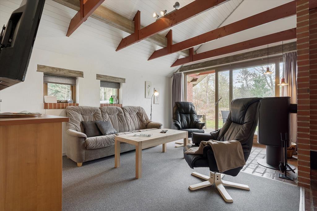 Mit der Natur direkt vor der Tür und Aktivitäten und Einkaufsmöglichkeiten in der Nähe ist dies ein Ferienhaus für Familien, die Wert auf Ruhe und Frieden legen. Nur einen Steinwurf vom Haus entfernt befinden sich ein großer Naturspielplatz und mehrere Angelseen, wodurch sich das Haus besonders für Familien mit Kindern und Angler eignet.