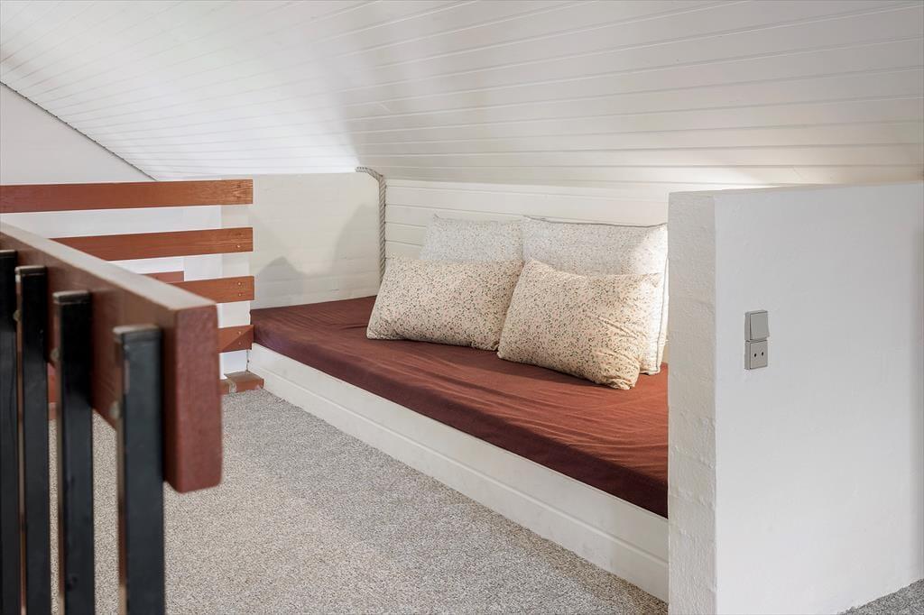 Das Haus verfügt über eine hyggelige und gut ausgestattete Küche mit Geschirrspülmaschine. Der Wohnbereich mit seiner hohen Decke ist offen mit der Küche verbunden. Die großen Fensterfronten bieten einen weiten Blick auf den Garten und Sie haben das Gefühl, direkt im Wald zu sein. Im Wohnzimmer gibt es zwei Sofas, auf denen es sich nach einem Tag voller Erlebnisse oder einem Bad in der Nordsee vor dem Fernseher oder dem Kaminfeuer wunderbar entspannen lässt. Es gibt zwei große Schlafzimmer mit Doppelbetten und viel Stauraum und darüber hinaus noch ein weiteres Schlafzimmer mit zwei Einzelbetten. Unter dem Dach befindet sich noch ein gemütlicher Schlafboden, auf den Sie sich zurückziehen und ein gutes Buch lesen oder den Blick über die Umgebung schweifen lassen können, während die Familie im Erdgeschoss fernsieht. Auf dem Schlafboden neben der Treppe gibt es überdies noch einen kleinen offenen Raum, in dem die Kinder in aller Ruhe spielen können. Im Badezimmer mit Fußbodenheizung gibt es außer einer Toilette und einer Dusche auch eine Waschmaschine und einen Trockner. Von dort aus gelangen Sie auch in die kleine Sauna für zwei Personen. Sie dürfen das Internet kostenlos nutzen und auch Ihren Hund oder Ihre Katze mitbringen. Buchen Sie einen Mini-Urlaub in diesem Haus und die ganze Familie kann sich auf spannende Erlebnisse freuen.