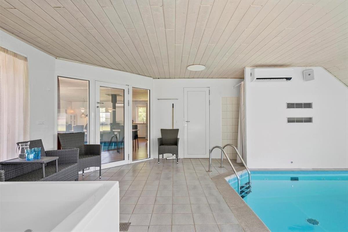 Wenn Sie in diesem großen und schönen, hochwertigem Sommerhaus Urlaub machen, wohnen Sie in der nähe vom Strand in Søndervig , Ringkøbing Fjord und dem Golfclub Holmsland Klit – dies ist nur eine kleine Auswahl der wunderbaren Dinge, die Sie in der Umgebung erwarten. Obwohl es in der Umgebung viel zu sehen und zu erleben gibt, ist es verlockend, im Ferienhaus zu Hause zu bleiben, denn es bietet unter anderem einen schönen Poolbereich, sechs gute Schlafzimmer und eine sonnige Terrassenumgebung im grünen Garten.