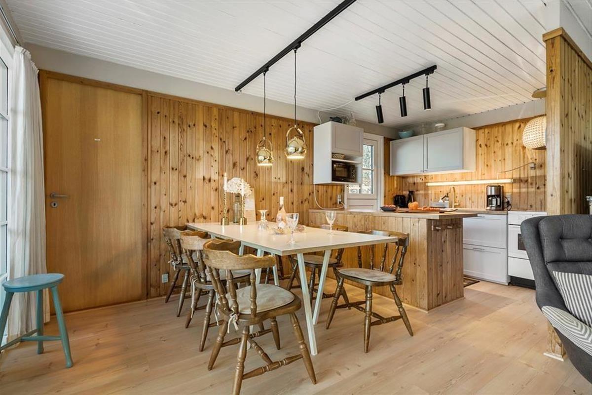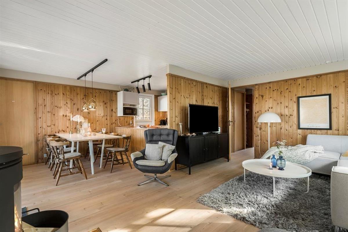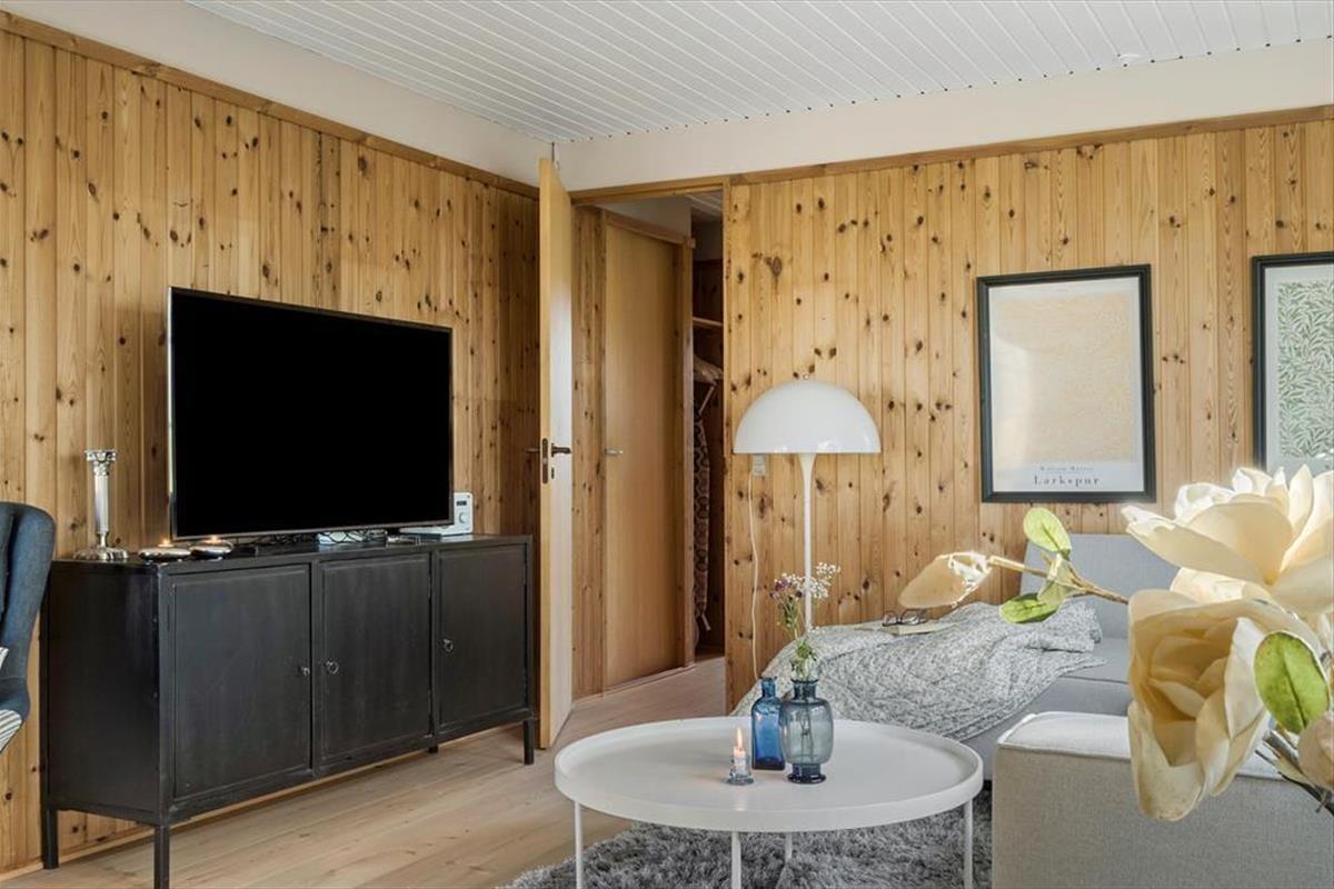 Beschaulich geht es an der Adresse Lærkeallee 11 zu, wo Sie das Ferienhaus auf einem großen, von Eichenbüschen und Nadelbäumen umgebenen Naturgrundstück empfängt. Die 77 m² große Wohnfläche umfasst unter anderem 3 Schlafzimmer mit insgesamt sechs Schlafplätzen. Das Badezimmer ist mit einer Dusche und einer Waschmaschine ausgestattet. Der Aufenthaltsbereich setzt sich offen aus der Küche und dem Wohnraum zusammen. In diesem Raum herrscht eine gemütliche Wohnatmosphäre. Dank der Sofaecke und des Kaminofens werden Sie in diesem Raum viele entspannte gemeinsame Stunden verleben. Für Unterhaltung sorgt derweil ein großer Smart-TV mit dänischen, norwegischen, schwedischen und zahlreichen deutschen Sendern.