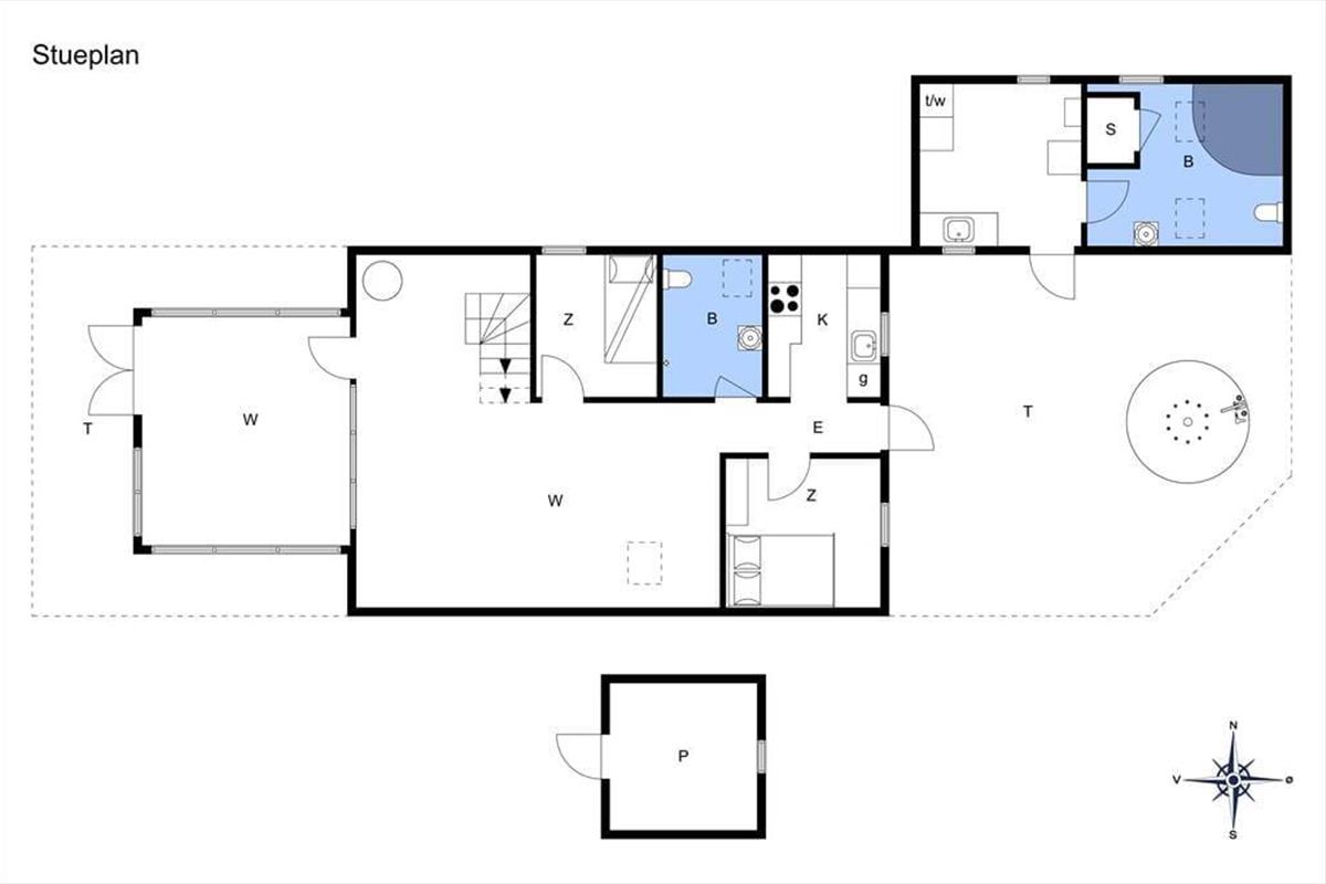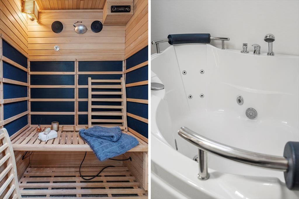 Das Sommerhaus verfügt über zwei Badezimmer. Das eine befindet sich im Haus und das andere ist im Anbau, den du von der Terrasse aus erreichst. Ebenfalls im Anbau befindet sich die Waschmaschine, ein Trockner und ein zusätzlicher Kühl-/Gefrierschrank. Von hier aus gelangst du direkt das geräumige Badezimmer mit sowohl Whirlpool als auch Infrarotsauna – ein schönes Refugium zum Entspannen nach einem langen Tag in der Natur oder am Strand.