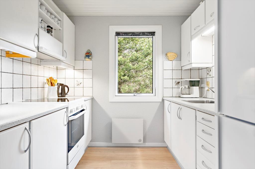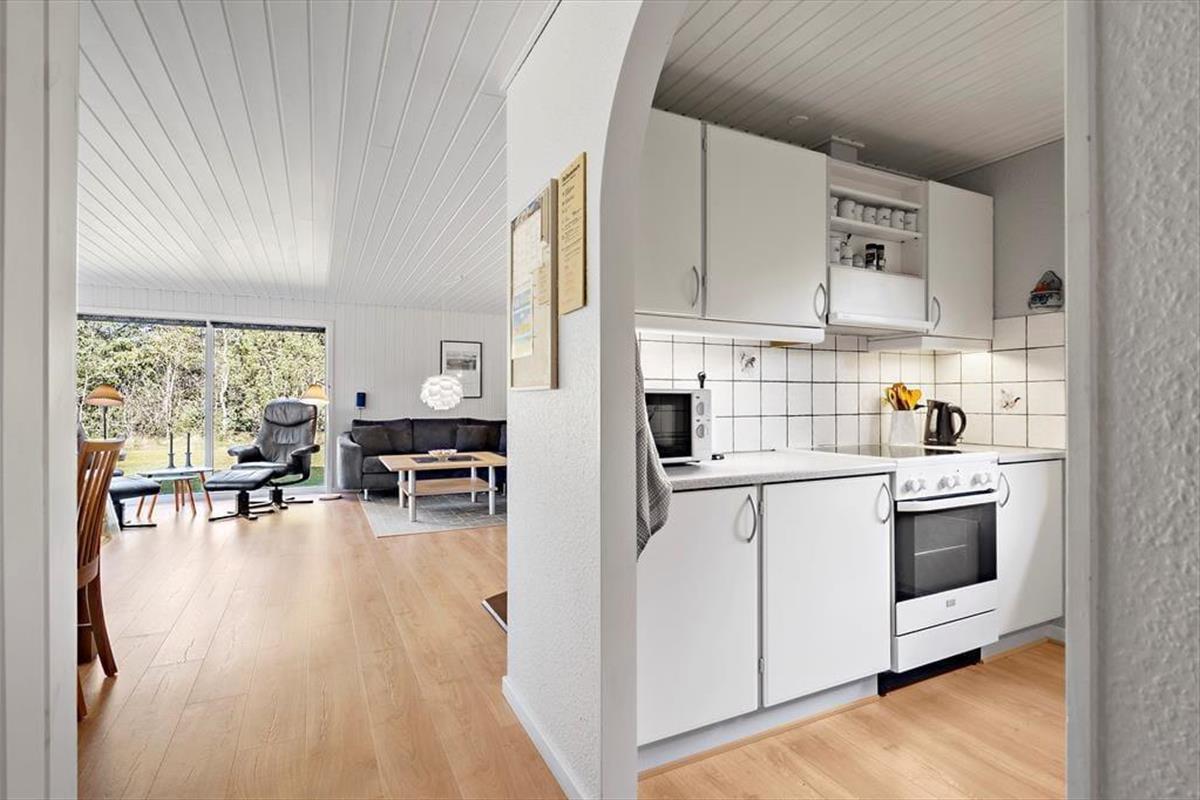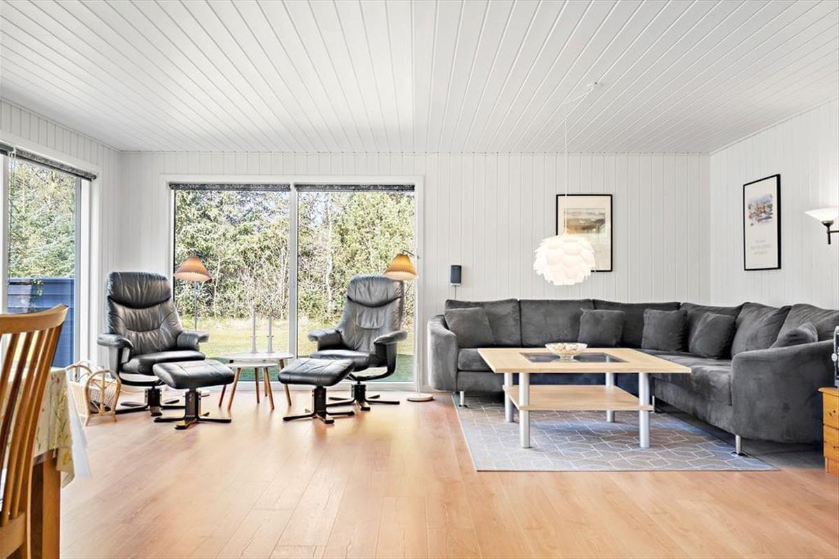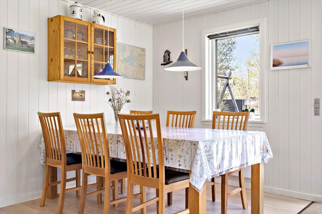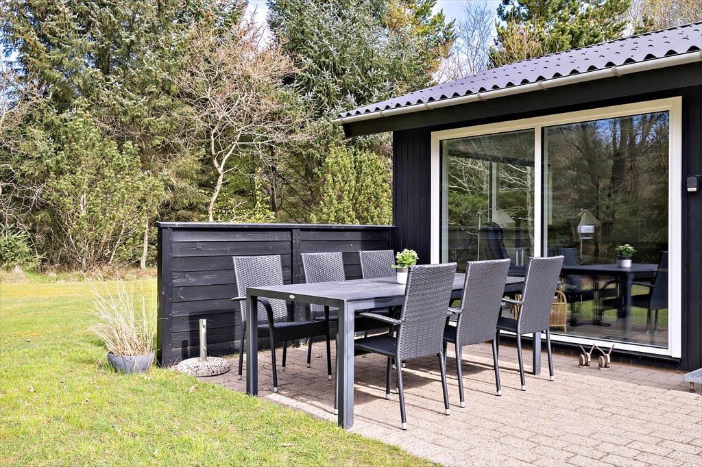Das 1973 erbaute und 2014 renovierte, schwarz gestrichene Ferienhaus ist sehr geräumig. Heute ist das Haus hell und freundlich eingerichtet und besonders im Wohnzimmer sorgen die großen Fenster für viel Licht und eine gute Verbindung zum grünen Garten. Mit Kaminofen, Flachbildfernseher, Esstisch und Sofaecke ist das Wohnzimmer gemütlich ausgestattet, und die offene Küche macht es möglich, noch schnell einen Kaffee zu trinken oder das Abendessen zuzubereiten. Wenn Sie während Ihres Urlaubs Ihre Strandtücher waschen müssen, gibt es im Badezimmer eine Waschmaschine und einen Trockner, und natürlich können Sie sich auch unter der Dusche erfrischen. In den drei Schlafzimmern können Sie sich auf einen guten und erholsamen Schlaf freuen. Der Eigentümer hat gerade neue 3-Schicht-Fenster und LED-Leuchtmittel in allen Lampen eingebaut, sodass das Haus äußerst energiefreundlich ist.