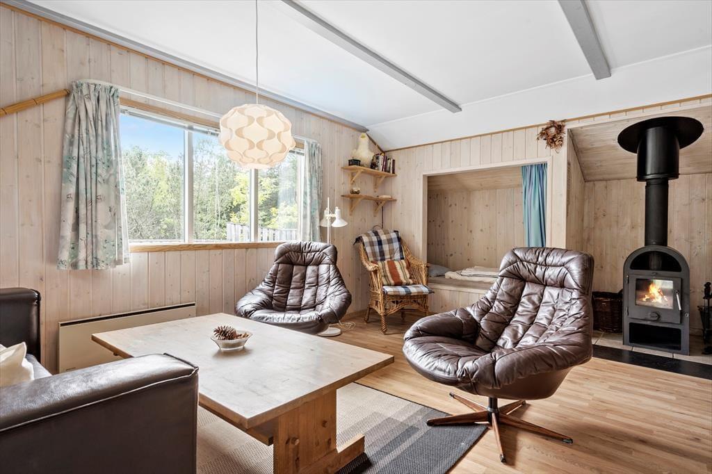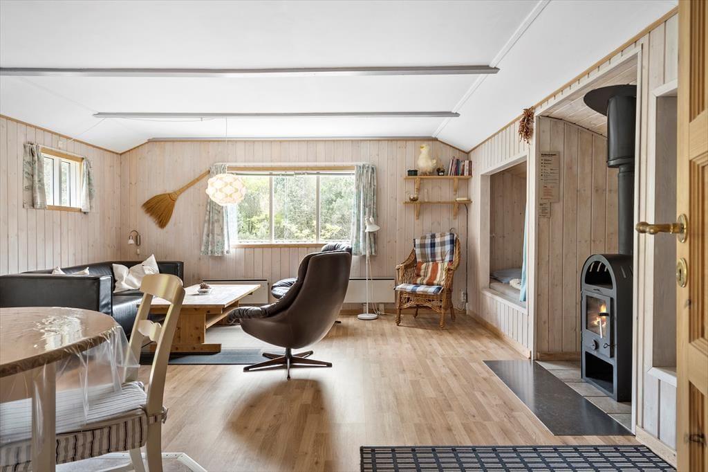 Das im Jahr 1975 erbaute Ferienhaus wurde über die Jahre hinweg gehegt und gepflegt und lädt zu richtig gemütlichen Urlaubstagen ein. Zu den modernen Annehmlichkeiten zählen unter anderem schnelles WiFi und ein im Wohnraum platzierter Flachbild-TV mit Parabolempfang. Für ein gemütliches Ambiente sorgt der Kaminofen, vor dem Sie in aller Ruhe ein Buch lesen oder eine Runde Karten spielen können. Ihre Mahlzeiten bereiten Sie in der offenen Küche zu, vor der der Esstisch platziert ist. Nach einem guten Mittagessen können Sie sich entspannt auf dem Sofa niederlassen oder sich ein Nickerchen in einer der gemütlichen Schlafnischen des Wohnraums gönnen. Vom Schlafraum des Hauses gelangen Sie in ein helles, funktionell eingerichtetes Badezimmer.