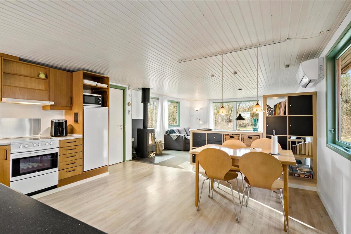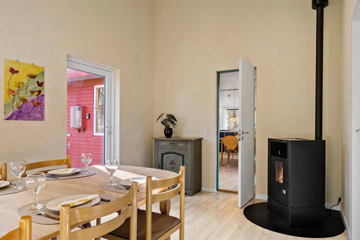Verheug je op een onvergetelijke vakantie in dit gezellige vakantiehuis midden op het Deense platteland tussen Søndervig en Lodbjerg Hede. Hier vind je rust, ontspanning en een schilderachtige omgeving die ideaal is voor een ontspannen vakantie. Het huis heeft een warme en uitnodigende sfeer. De ruime woonkamer biedt een gezellige zithoek en een houtkachel, die voor knusse warmte zorgt op koelere dagen. De keuken en aangrenzende eethoek nodigen uit om samen van maaltijden te genieten. Sluit de dag af met een goed boek of een film en geniet van het comfort van het smaakvol ingerichte huis.