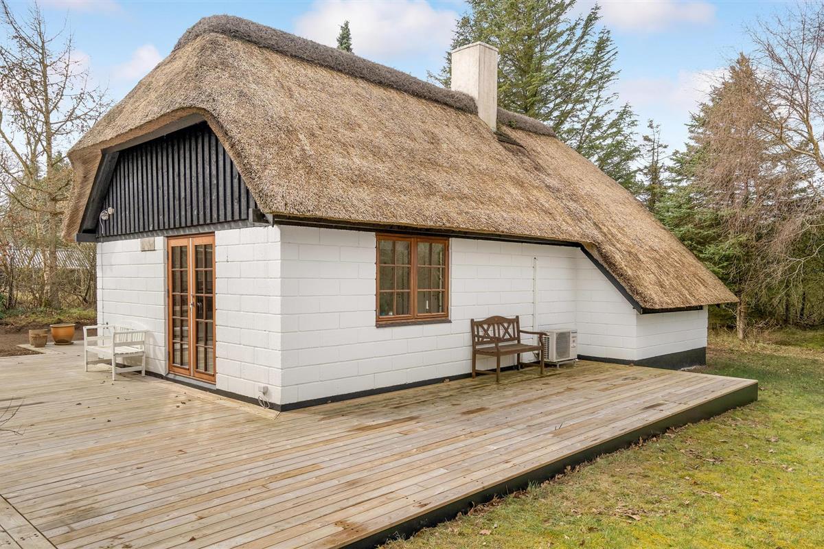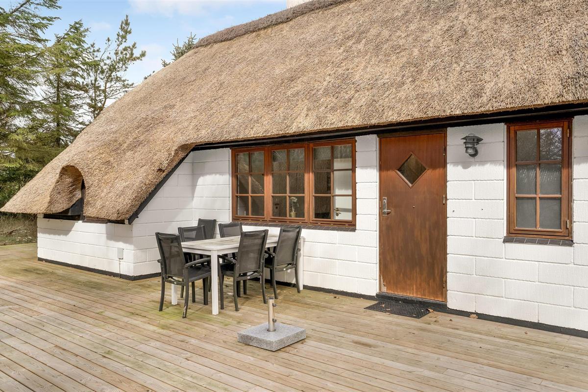 Rustig gelegen vakantiehuis met rieten dak, open haard en tuin nabij het strand in Søndervig, Denemarken.