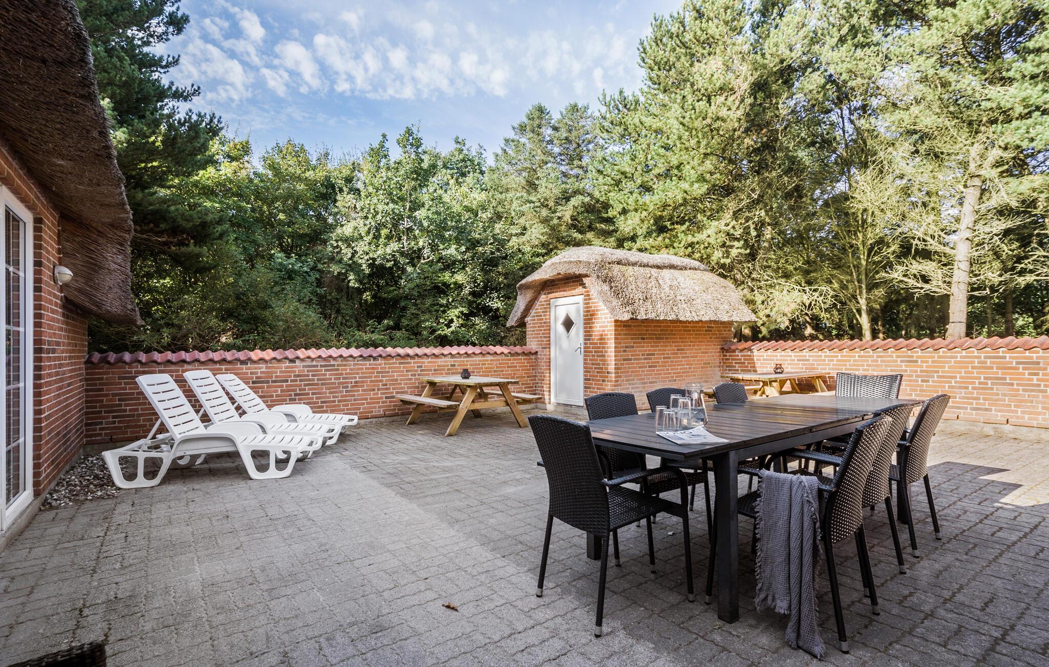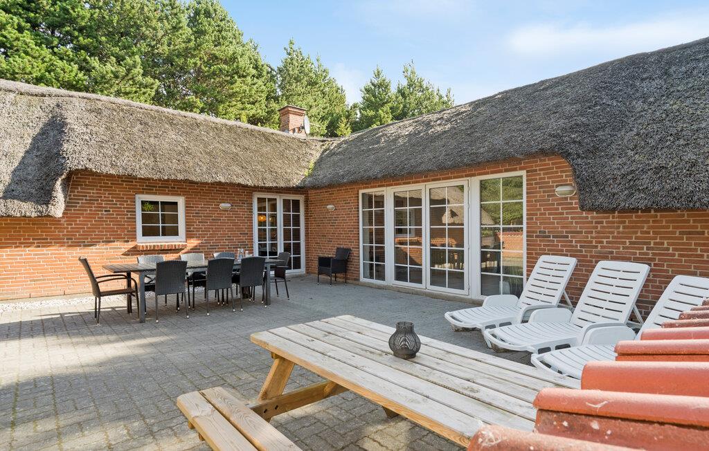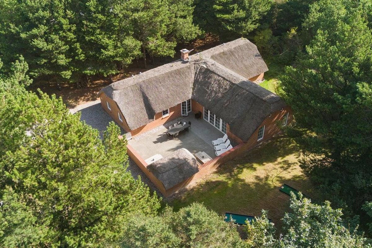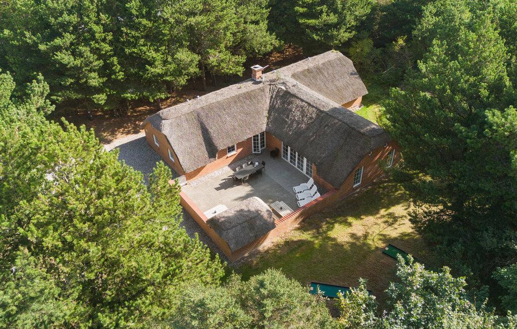 Ruim vakantiehuis met rieten dak in Lodbjerg Hede, dichtbij Søndervig en de Noordzeestranden, met zwembad en sauna.