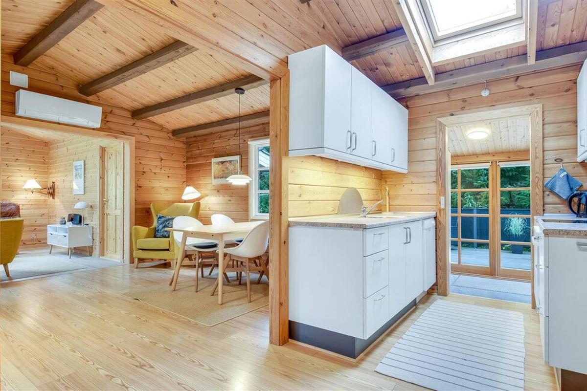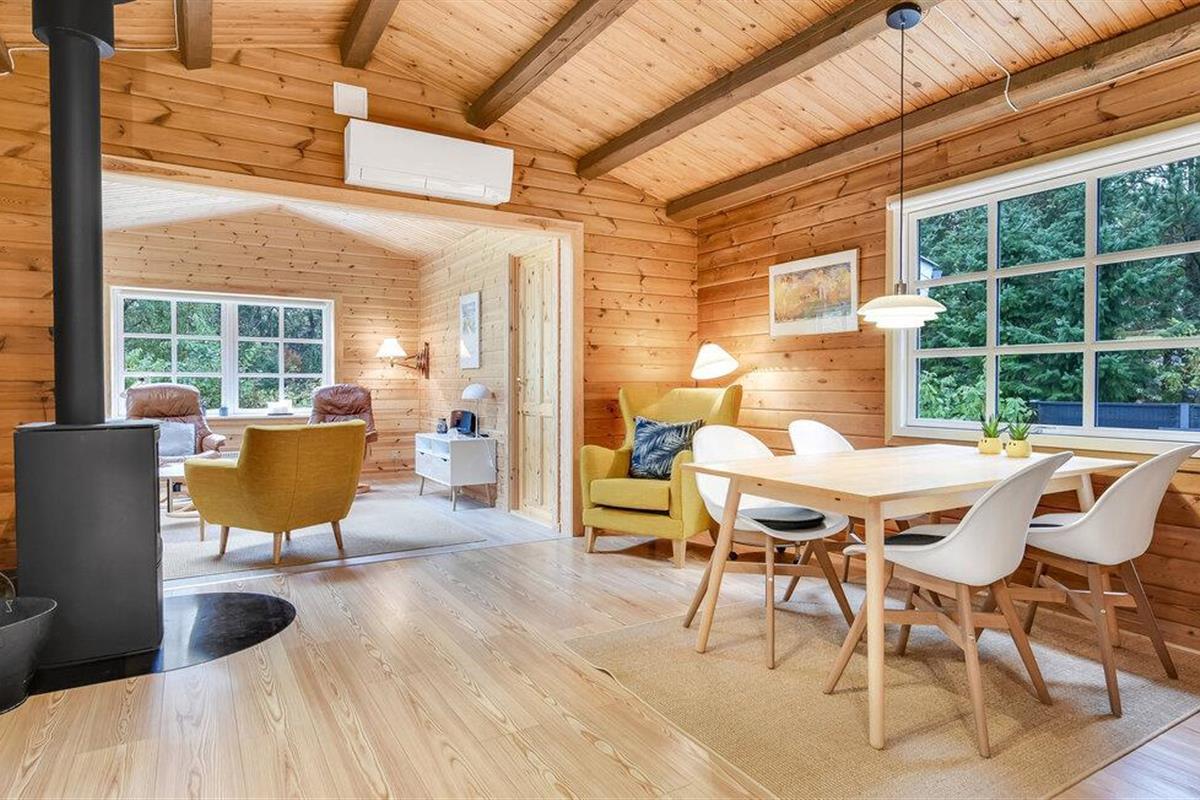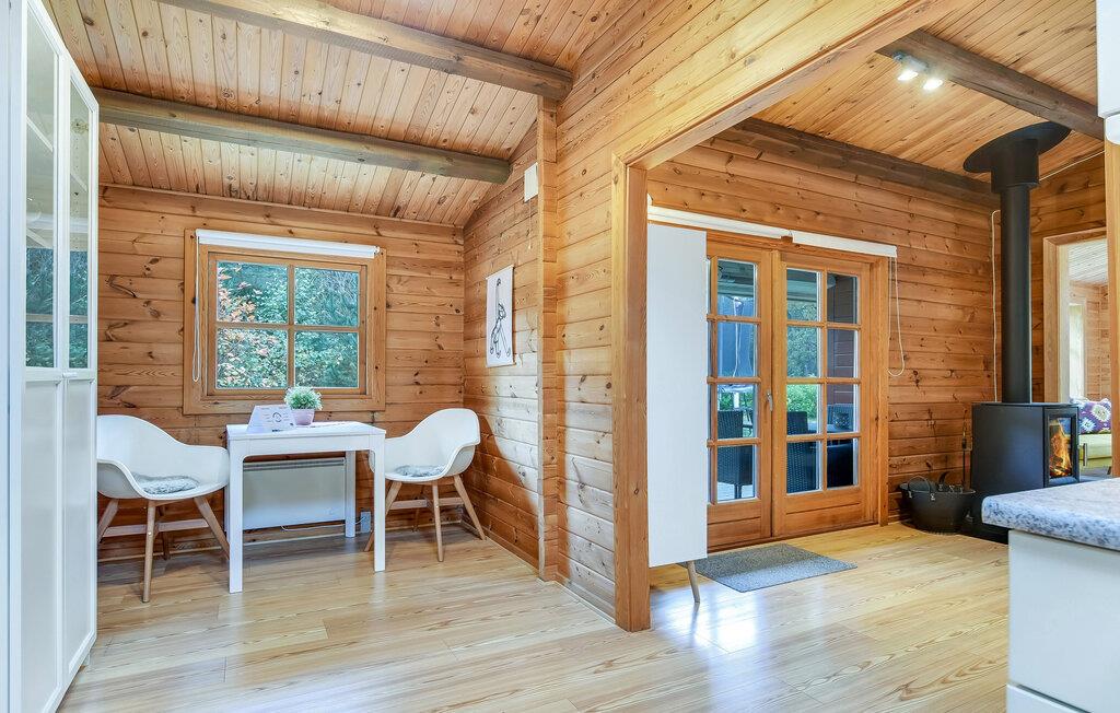 Dompel jezelf onder in de feel-good sfeer van dit comfortabele vakantiehuis en kijk uit naar harmonieuze momenten met je geliefden, ver weg van het alledaagse leven. Ga koken in de moderne keuken en neem plaats aan de gezellig verlichte eettafel. Steek de houtkachel aan en geniet van de gezellige sfeer tijdens een avondje spelletjes spelen of ontspannen lezen op de comfortabele bank.
