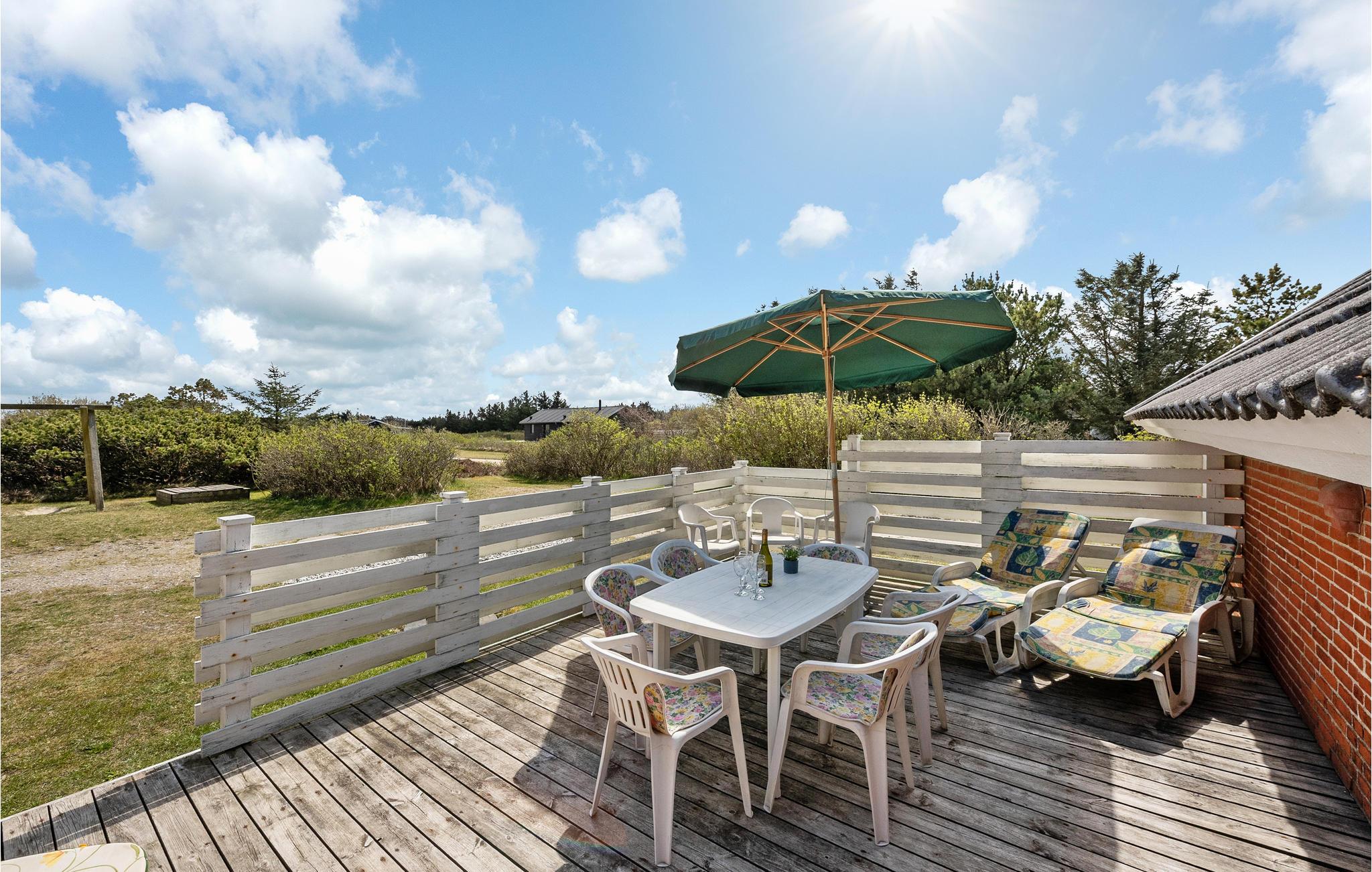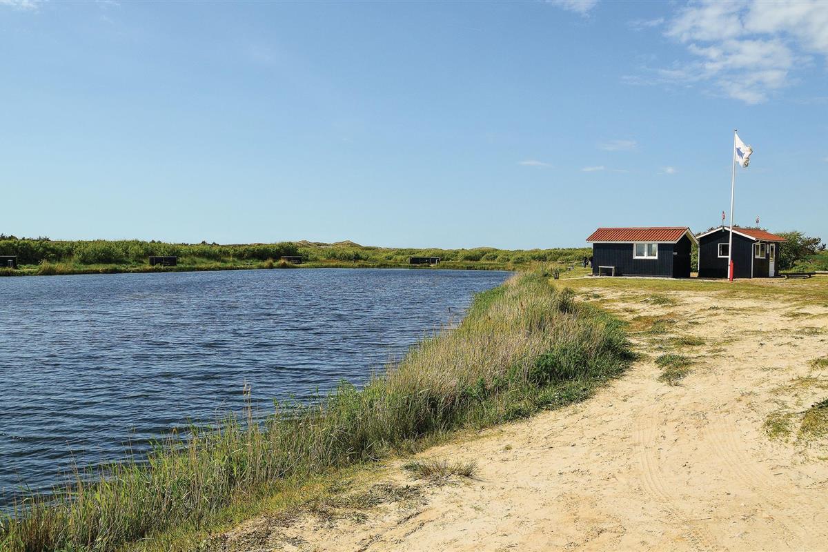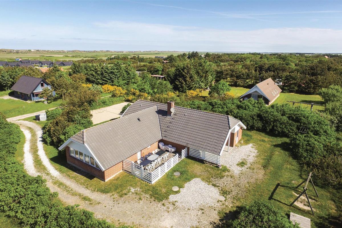 Omgeven door een prachtig duin- en heidelandschap, dicht bij een van de beste zandstranden van Denemarken, ligt dit mooie vakantiehuis op een groot natuurgrondstuk met een prachtig uitzicht op de omgeving. Binnen vindt u comfortabele, tijdloze meubels en goede voorzieningen. Het plafond in de keuken is open tot de nok en er is een extra tv in de woonkamer die kan worden gebruikt voor spelconsoles. Aan de westkant van het huis is het ongestoorde terras, waar u kunt barbecueën en genieten van uw maaltijden in de buitenlucht. Het strand ligt op vijf minuten rijden met de auto. Het huis ligt dicht bij het meer Lodbjerg Hede Ørredsø, een put & take meer van 15.000 m², dat altijd een groot forellenbestand heeft. Voor golfliefhebbers is er een uitdagende 27-holes baan bij Holmsland Klit Golfklub, bij Søndervig. In Hee is het Vis- en Familiepark West met amusement voor het hele gezin. Ook de badplaats Søndervig is een bezoek waard. In Hvide Sande vindt u een sfeervolle haven en kunt u in de buurt rondwandelen. In Kloster kunt u kaarsen maken.