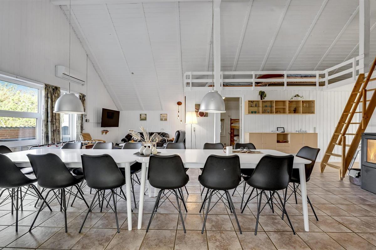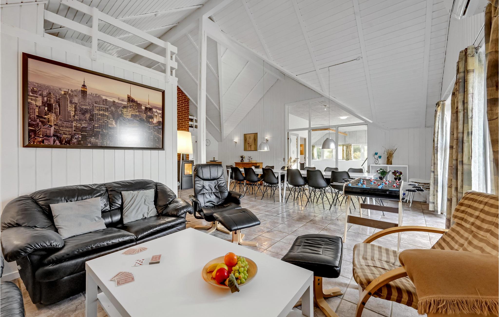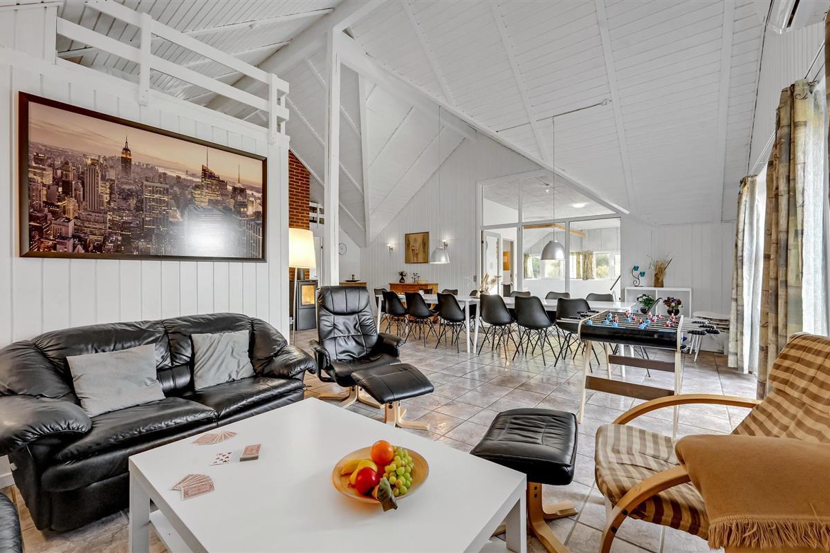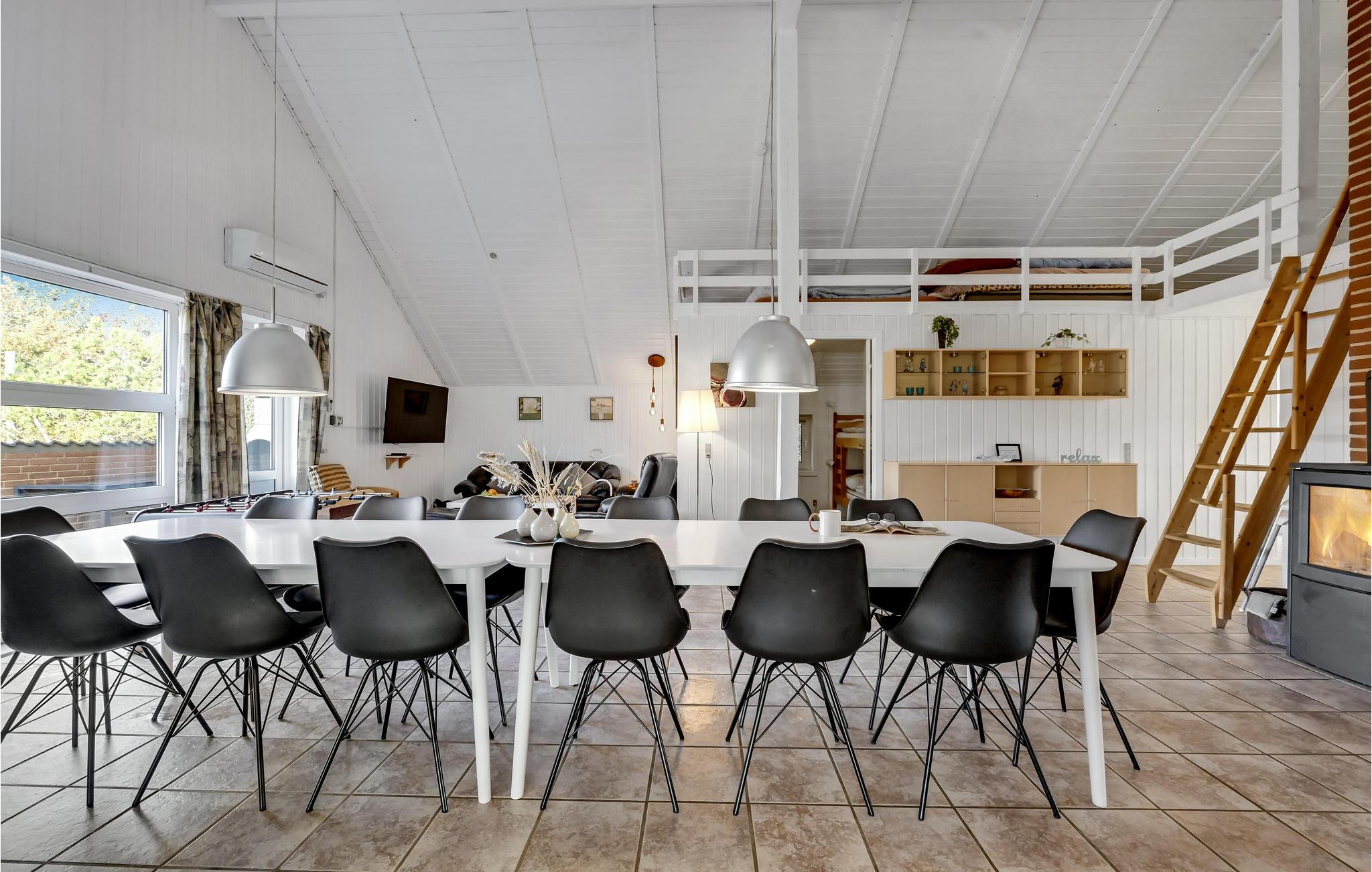 Omgeven door een prachtig duin- en heidelandschap, dicht bij een van de beste zandstranden van Denemarken, ligt dit mooie vakantiehuis op een groot natuurgrondstuk met een prachtig uitzicht op de omgeving. Binnen vindt u comfortabele, tijdloze meubels en goede voorzieningen. Het plafond in de keuken is open tot de nok en er is een extra tv in de woonkamer die kan worden gebruikt voor spelconsoles. Aan de westkant van het huis is het ongestoorde terras, waar u kunt barbecueën en genieten van uw maaltijden in de buitenlucht. Het strand ligt op vijf minuten rijden met de auto. Het huis ligt dicht bij het meer Lodbjerg Hede Ørredsø, een put & take meer van 15.000 m², dat altijd een groot forellenbestand heeft. Voor golfliefhebbers is er een uitdagende 27-holes baan bij Holmsland Klit Golfklub, bij Søndervig. In Hee is het Vis- en Familiepark West met amusement voor het hele gezin. Ook de badplaats Søndervig is een bezoek waard. In Hvide Sande vindt u een sfeervolle haven en kunt u in de buurt rondwandelen. In Kloster kunt u kaarsen maken.