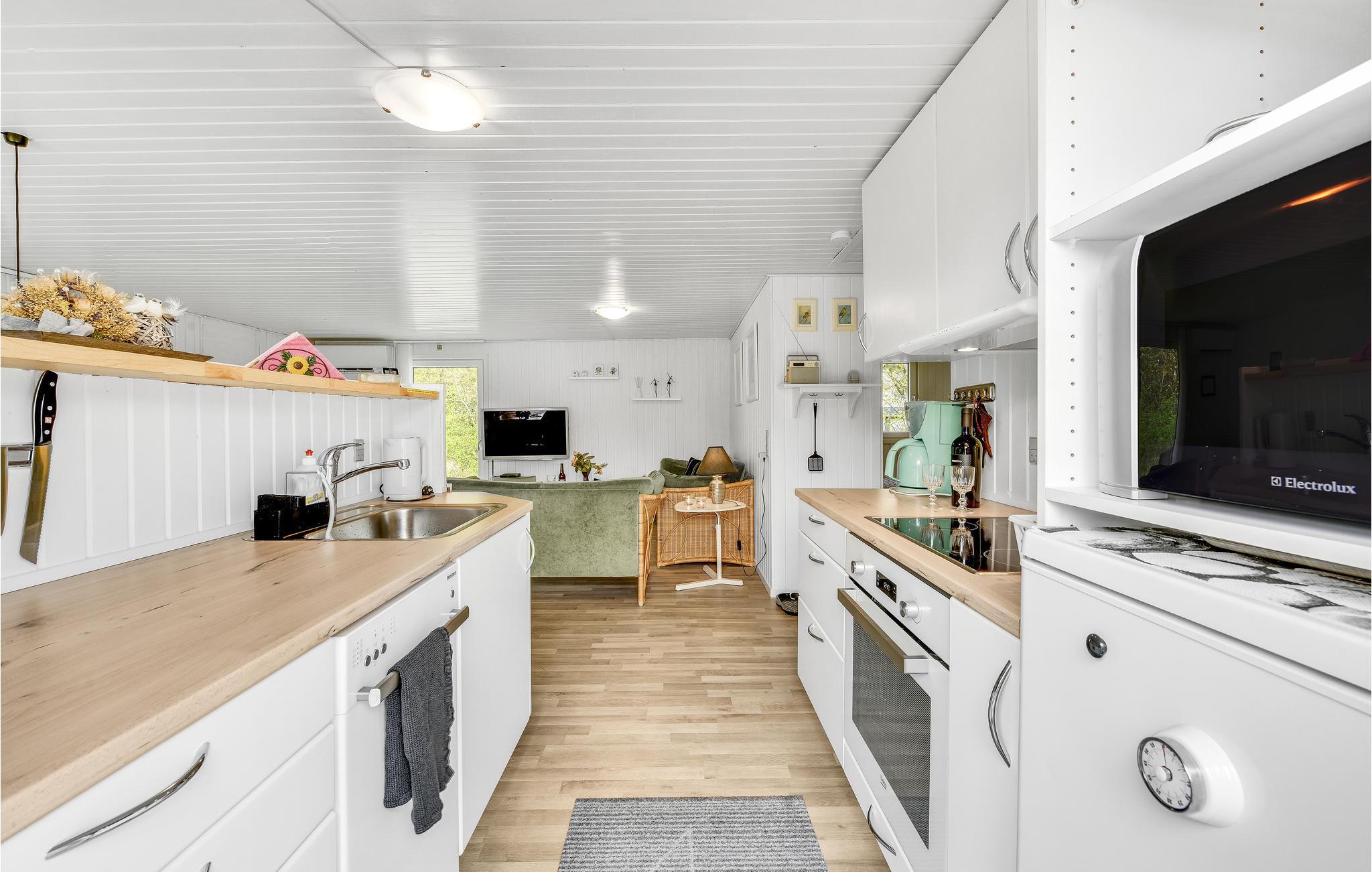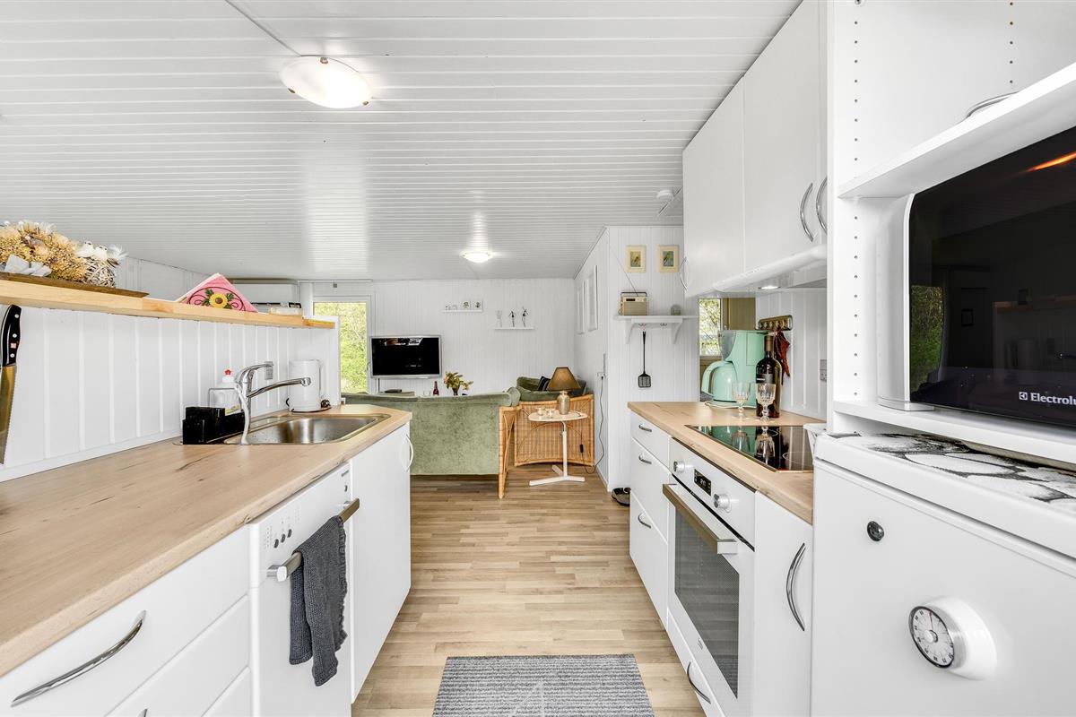 En in het midden van dit alles ligt dit gezellig ingerichte vakantiehuis. Er zijn drie slaapkamers: een met een tweepersoonsbed en TV, een andere met een stapelbed dat ook geschikt is voor volwassenen, en een met een bed dat kan worden uitgetrokken tot een tweepersoonsbed. De keuken staat in open verbinding met de woonkamer met gezellige open haard. Een warmtepomp verwarmt bovendien de kamers. De badkamer is klein en functioneel ingericht: Er is een douche en een wasmachine. Buiten is er een open en een overdekt terras.
