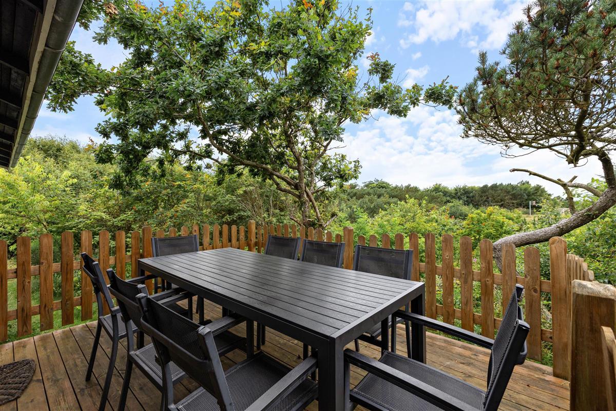 Der einladende Außenbereich bietet euch zahlreiche Möglichkeiten, die frische Luft und die Natur zu genießen. Ob auf der offenen, abgeschirmten, geschlossenen oder überdachten Terrasse – Gartenmöbel, ein Grill sowie Schaukel und Sandkasten für die kleinen Gäste stehen euch zur Verfügung. Auf dem großzügigen Naturgrundstück findet ihr auch ein Trampolin, das für Spaß bei Groß und Klein sorgt. Für die Erwachsenen steht eine Petanquebahn inklusive Kugeln zur Verfügung. Für noch mehr Spaß an der frischen Luft, sorgt das Spiel Kubb oder das unterhaltsame Spiel Leitergolf.